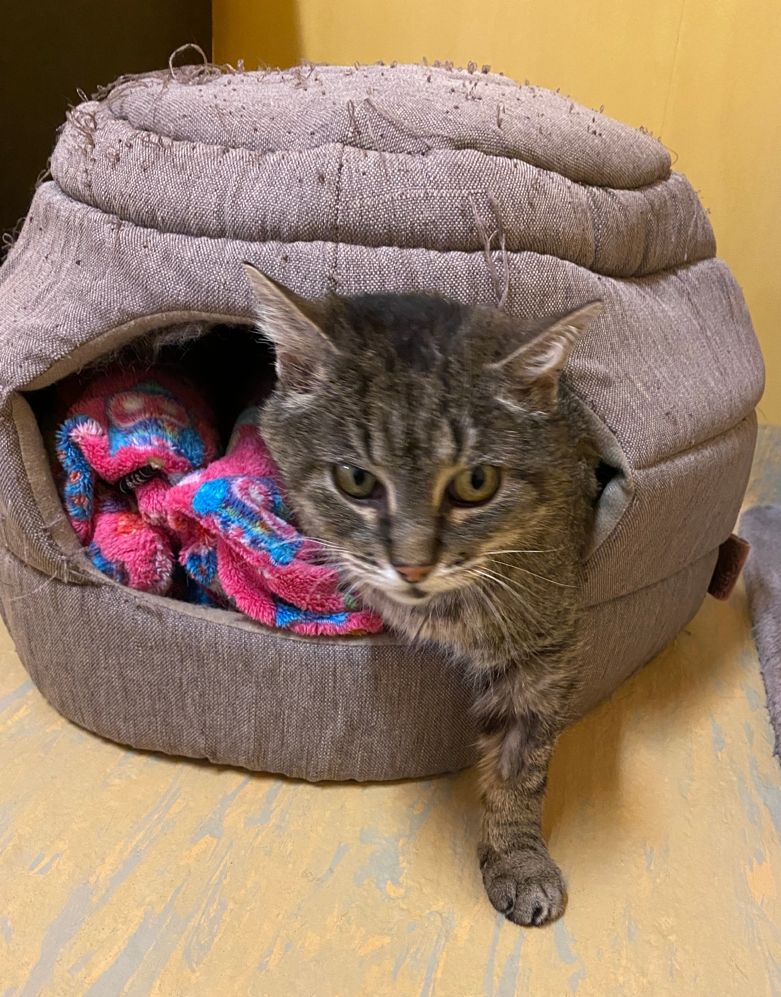"Man hat mich gefunden – ganz allein draußen. Jetzt bin ich in Sicherheit und suche mein Für-immer-Zuhause. Am Anfang bin ich ein bisschen schüchtern, aber wenn ich merke, dass man es gut mit mir meint, taue ich langsam auf. Dann genieße ich ruhige Gesellschaft und sanfte Streicheleinheiten. In letzter Zeit musste ich schon einiges hinter mich bringen: Meine Zähne wurden behandelt und eine Zyste unter meinem Kinn wurde entfernt. Das habe ich tapfer gemeistert. Aktuell habe ich noch ein kleines gesundheitliches Thema: ein Horner-Symptom (mein drittes Augenlid ist sichtbar). Die Tierärzte sind dran, und es werden noch ein paar weitere Untersuchungen gemacht. Im besten Fall verschwindet das Ganze in den nächsten Wochen oder Monaten von selbst. Ein ruhiges Zuhause wäre für mich wahrscheinlich genau das Richtige."