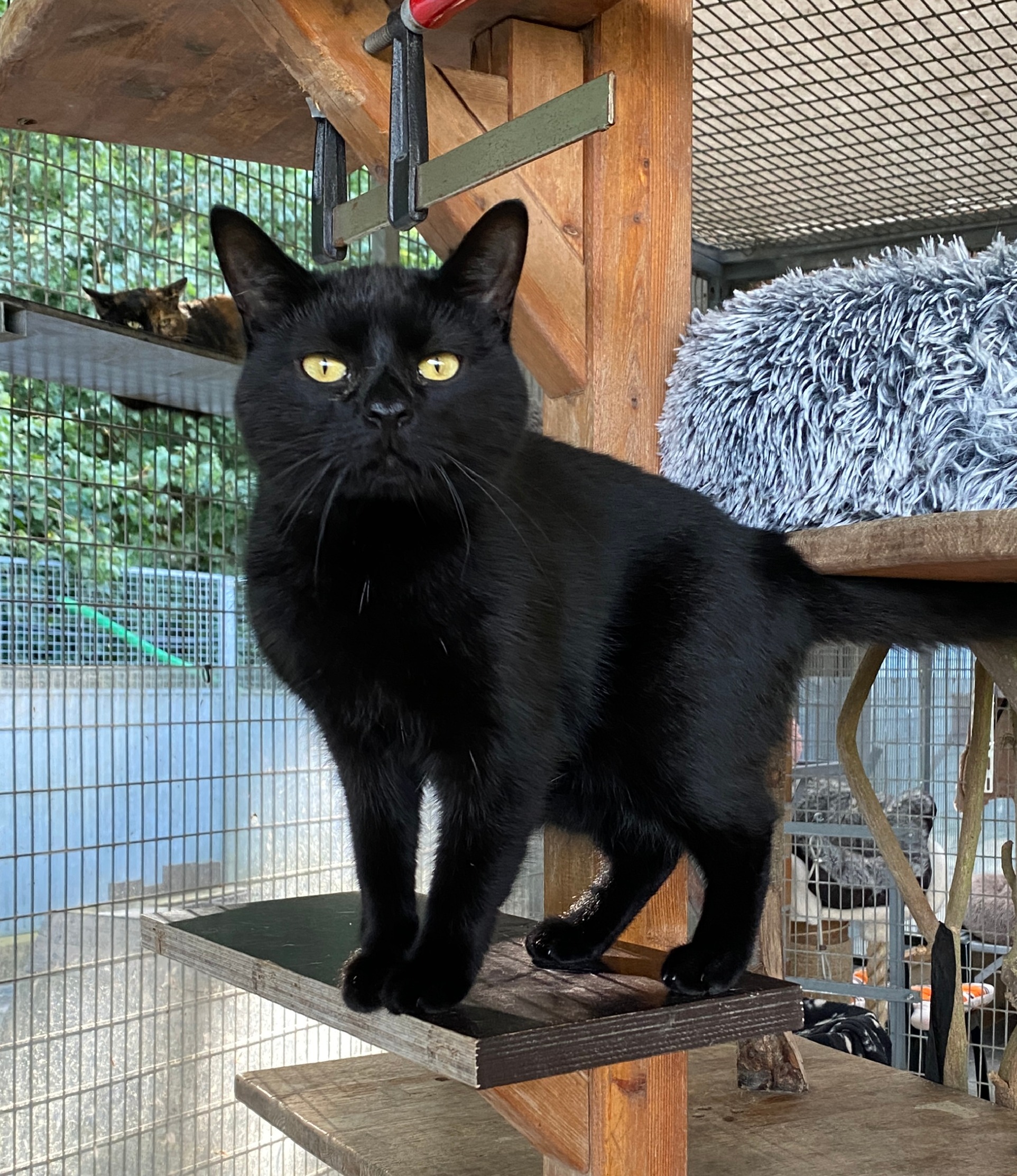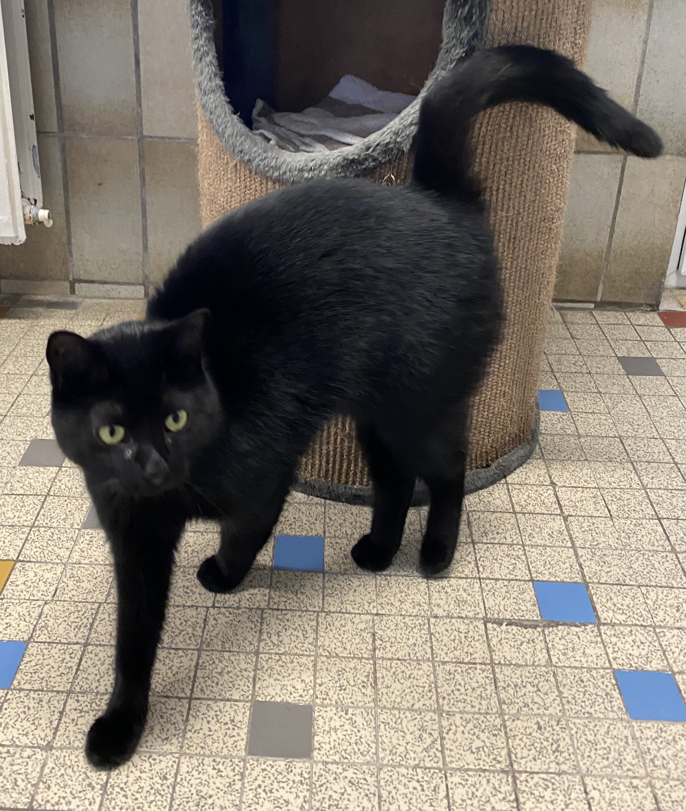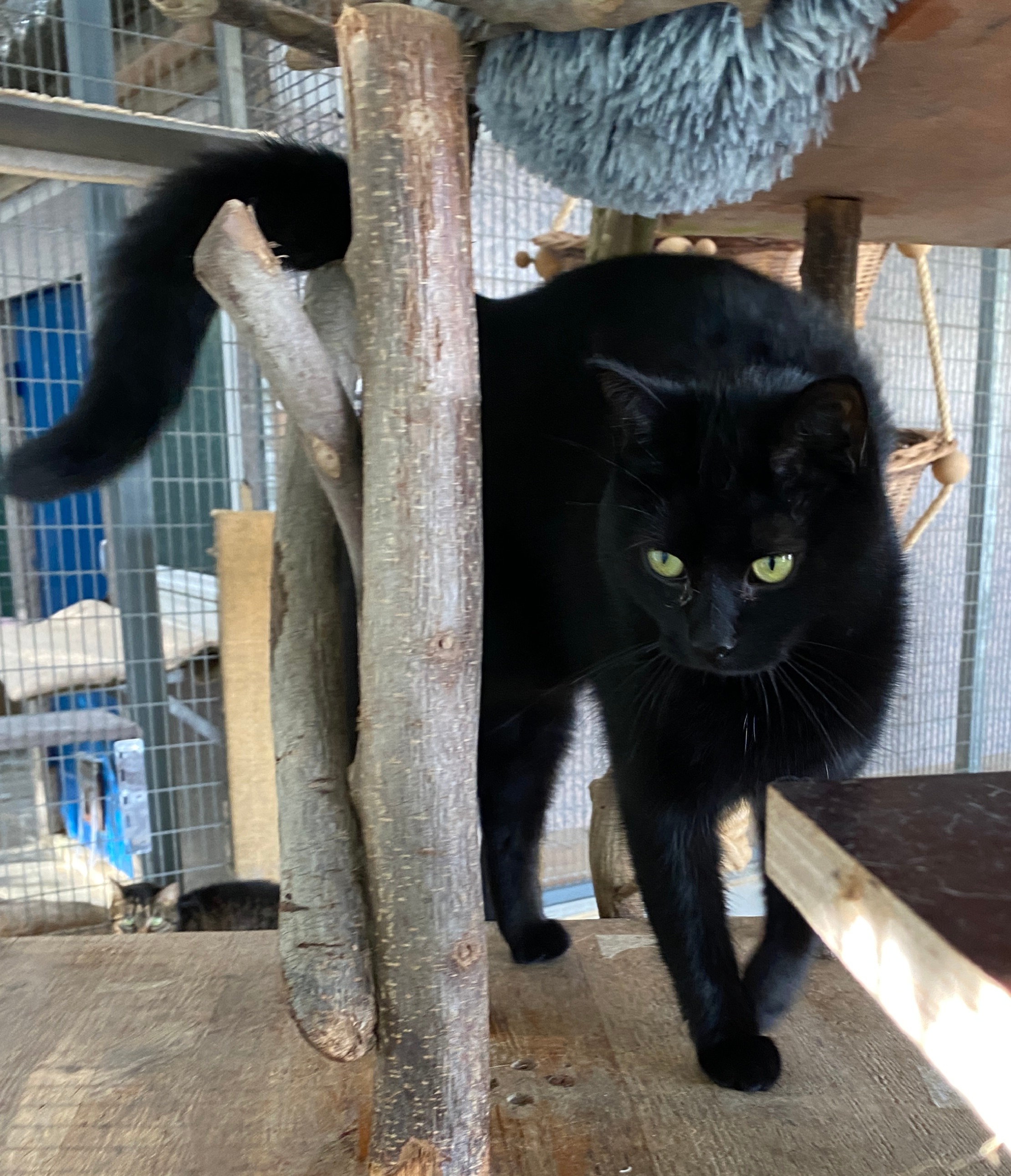 "Wer hat Angst vorm schwarzen Kater ? Vor mir braucht niemand Angst zu haben, ich bin nämlich ein ganz Netter. Mehrere Urlaube habe ich im Asile verbracht, jetzt werde ich wohl etwas länger hierbleiben müssen - Allergie in der Familie sei Dank. So gut ich auch hier umsorgt werde, wünsche ich mir doch zeitnah ein neues eigenes Zuhause."