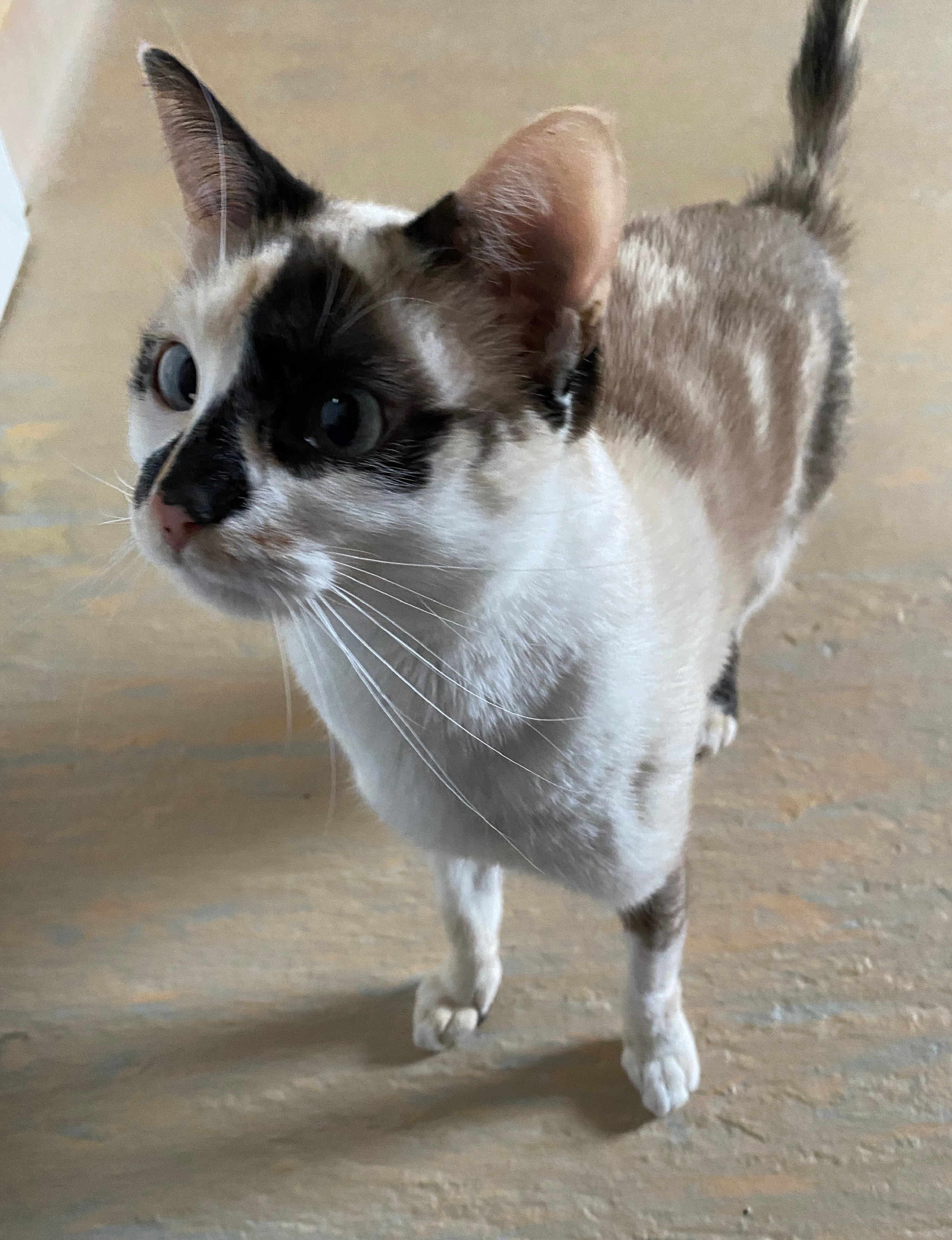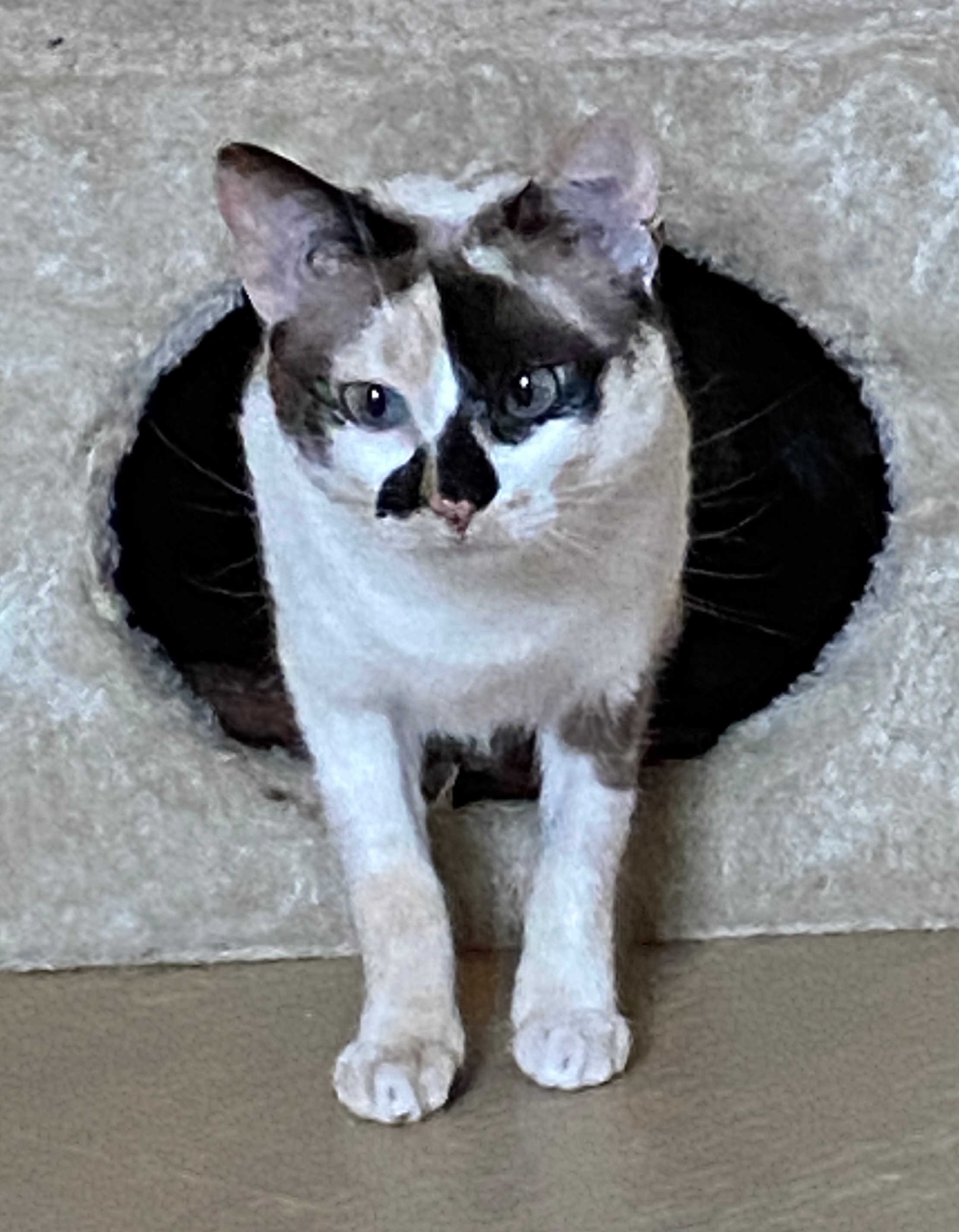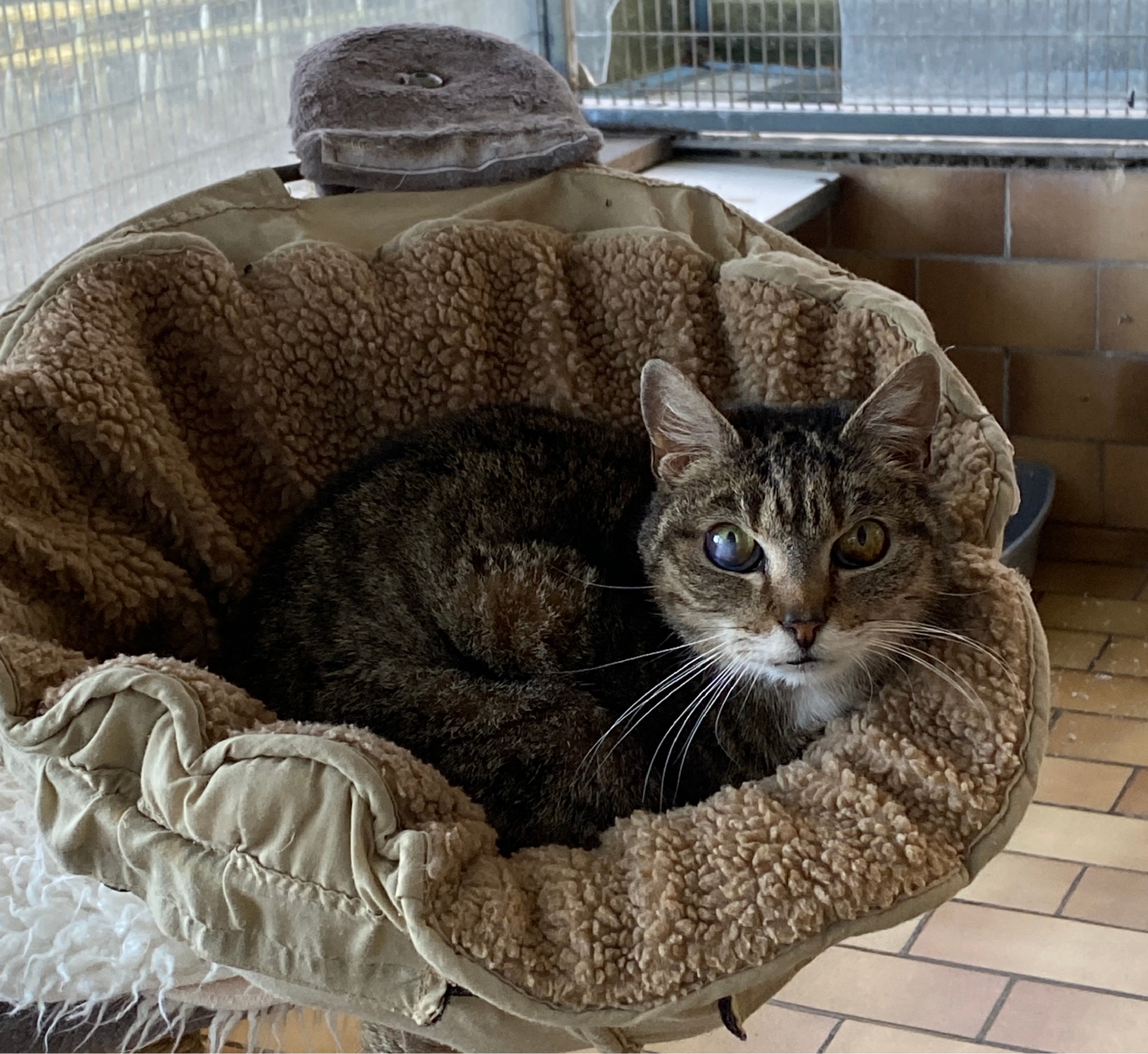"Ich bin eine 10-jährige Katzendame, die sich ein gemütliches, liebevolles Zuhause wünscht. Lange Zeit habe ich auf der Straße gelebt. Eine nette Frau hat mich dort immer gefüttert – bis sie ins Altersheim ziehen musste. So kam ich ins Tierheim. Anfangs war alles für mich sehr ungewohnt, und ich brachte ein paar Baustellen mit : meine Zähne mussten gemacht werden (alles erledigt !), ich hatte Schnupfen und war so gestresst, dass ich fast nichts essen mochte, es gab Herzgeräusche, die sich zum Glück als unbedenklich herausgestellt haben, und ich habe eine alte Hornhautnarbe am Auge – die ist kosmetisch, bereitet mir aber keinerlei Probleme. Heute geht es mir wieder richtig gut. Ich fresse ordentlich, schnurre gern und genieße gemütliche Plätze. Jetzt bin ich bereit für mein eigenes Für-immer-Zuhause."