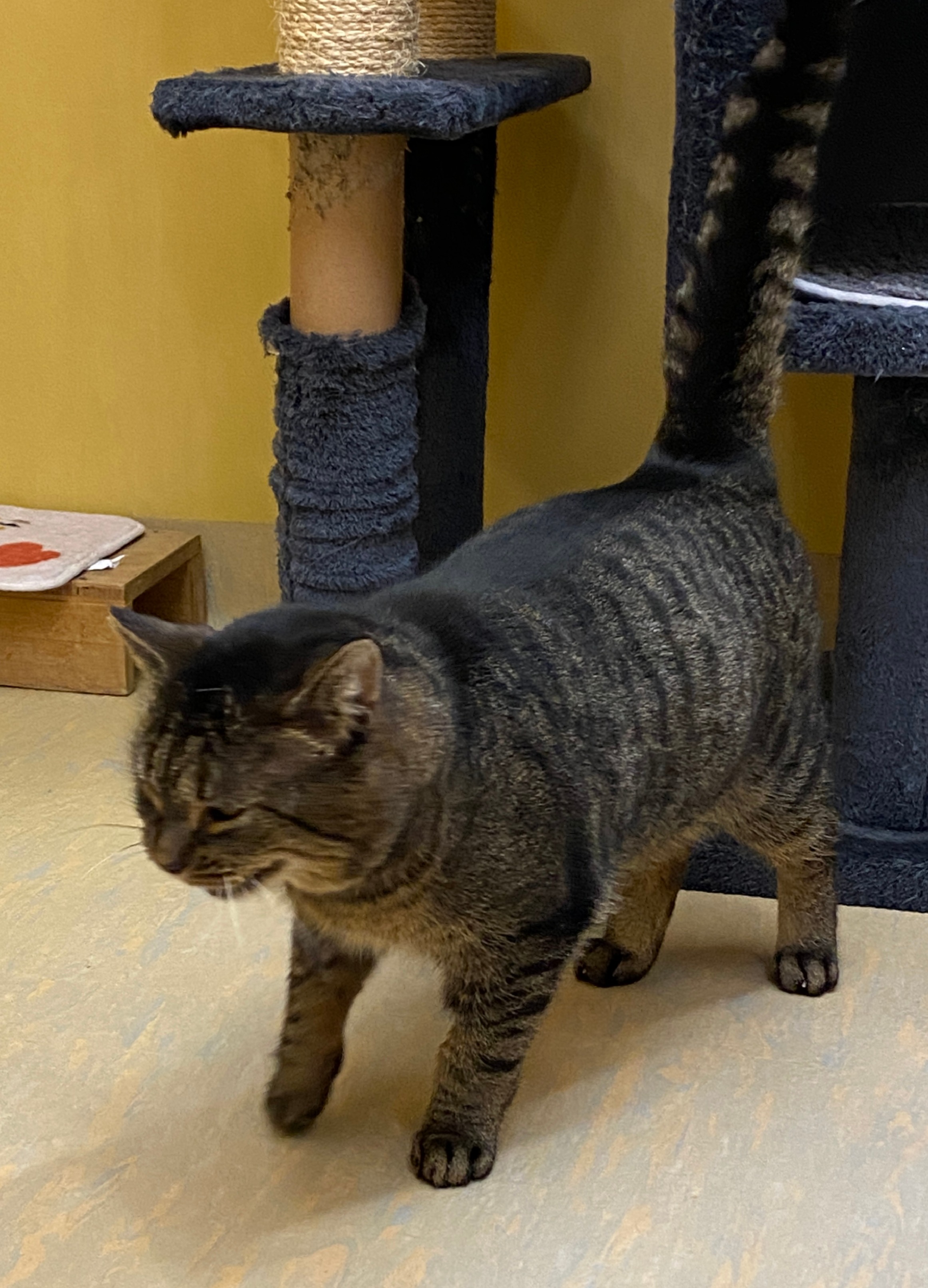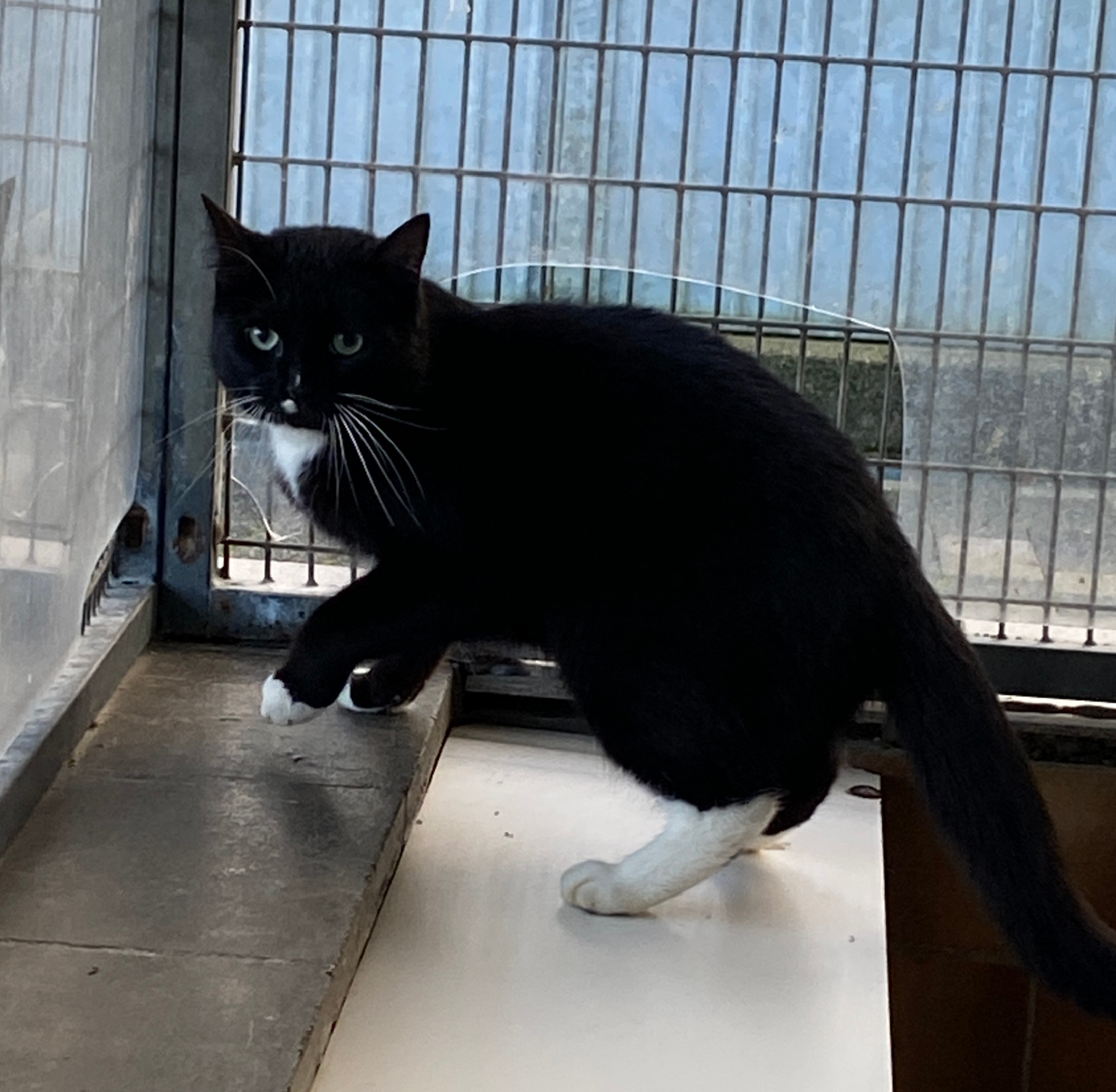 "Wir waren mehrere, die sich zum täglichen Mittagessen - ohne Verpflichtungen - bei einer älteren Dame einfanden. Allerlei Leckeres wurde dort aufgetischt, daher standen wir immer pünktlich auf der Matte. Zu unserem grössten Bedauern zog die nette Lady ins Altersheim, sodass unsere Futterquelle von jetzt auf gleich versiegt war. Deswegen war es nicht schwer, uns alle einzusammeln und ins Asile zu bringen. Mittlerweile lebe ich schon einige Monate hier im Tierheim. Noch immer bin ich sehr, sehr, sehr vorsichtig und habe bisher leider nicht gelernt, Menschen ganz zu vertrauen. Anfassen lasse ich mich daher noch nicht – dafür brauche ich einfach mehr Zeit. Es gibt aber auch gute Nachrichten : Für leckere Snacks bin ich immer zu haben, und dabei traue ich mich sogar schon ein kleines Stück näher heran. Jetzt, wo es draußen kälter wird, suche ich außerdem häufiger den warmen Innenbereich des Tierheims auf – ein kleines Zeichen dafür, dass ich mich langsam etwas wohler fühle."