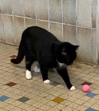 "Ich bin ein echter Wildling und habe mein bisheriges Leben ohne engen Kontakt zu Menschen verbracht. Seit einigen Monaten lebe ich nun im Tierheim. Am Anfang war mir alles unheimlich – da blieb mir nichts anderes übrig, als zu fauchen und zu spucken, um Abstand zu gewinnen. Inzwischen habe ich mich recht gut eingelebt. Leckerlis finde ich richtig spannend, sobald sie verteilt werden, bin ich sofort zur Stelle. Aber bitte erwartet nicht, mich anfassen zu dürfen – davor habe ich noch große Angst, und wenn jemand es versucht, flüchte ich sofort. Ich spiele gerne mit einer Schnur oder einem Ball. Für mich ist das ein Zeichen von Vertrauen und Neugier. Noch bin ich sehr vorsichtig, und ob oder wann ich mich streicheln lasse, wird die Zeit zeigen."