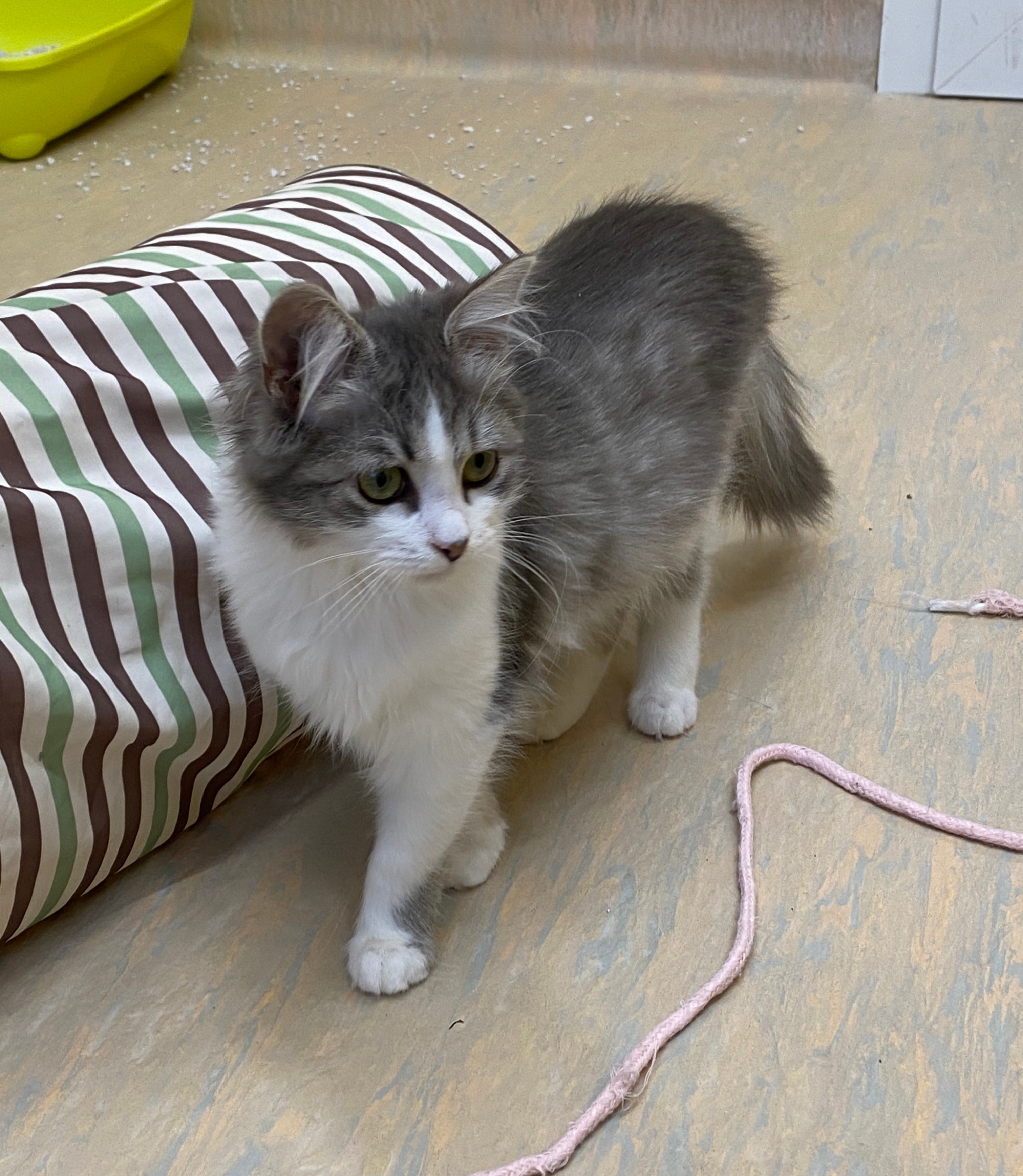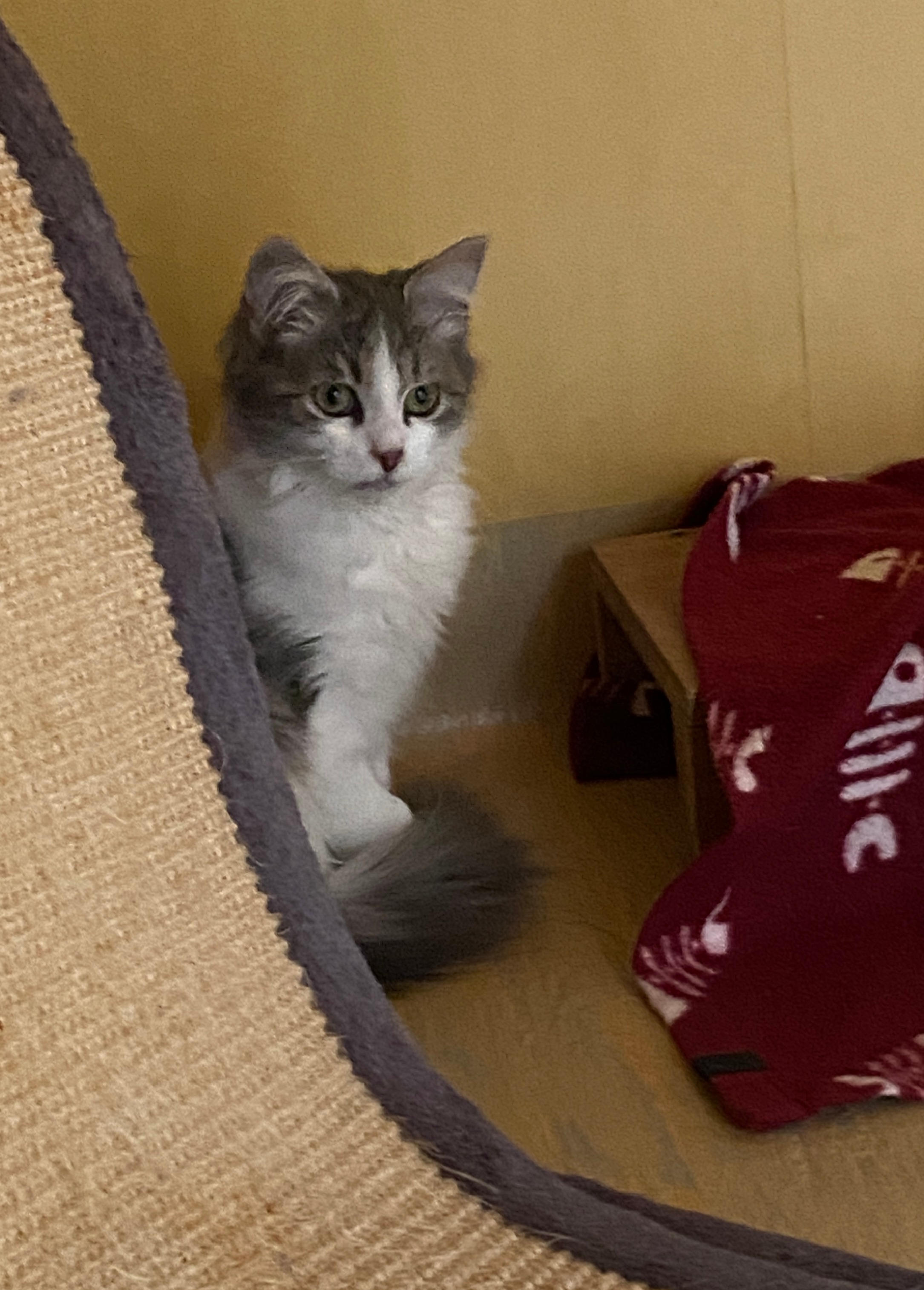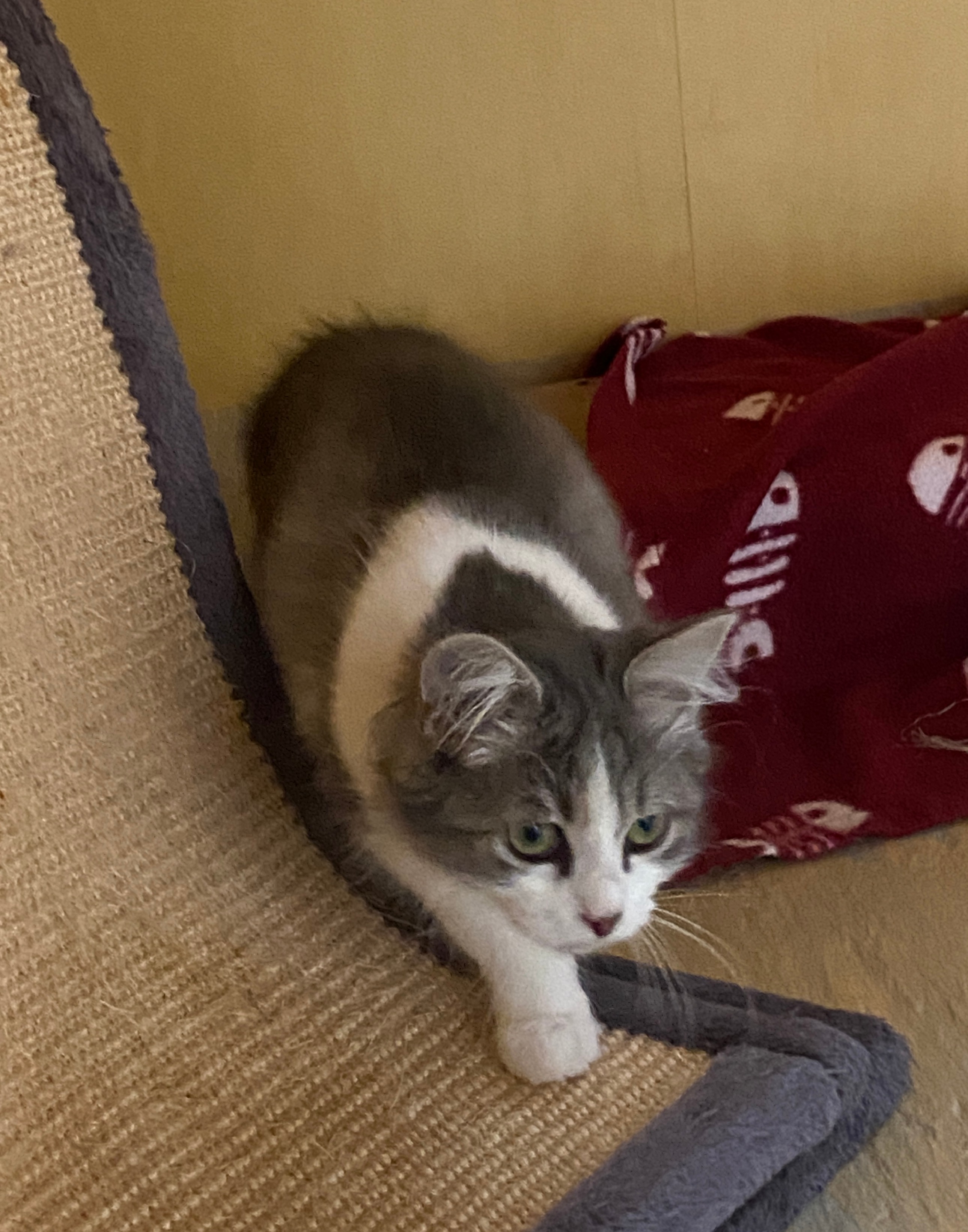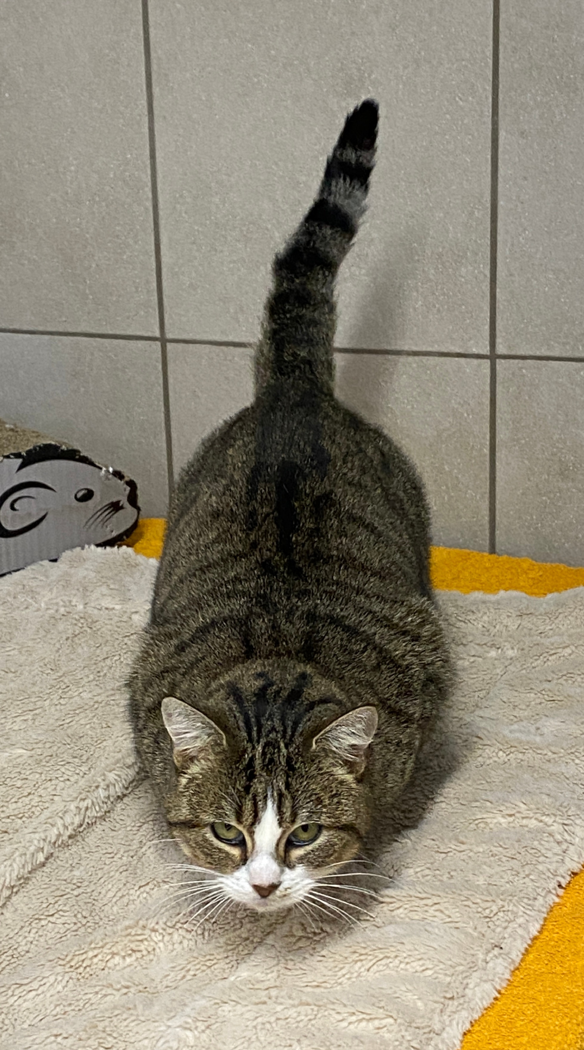 "Drei Babys habe ich großgezogen, die inzwischen alle erfolgreich vermittelt wurden. Mit Menschen habe ich in meinem bisherigen Leben leider kaum gute Erfahrungen gemacht, daher bin ich noch sehr vorsichtig, sobald sich jemand nähert. Anfangs habe ich mich nur in der Höhle meines Kratzbaums versteckt, doch inzwischen traue ich mich schon gelegentlich heraus – ein kleiner, aber wichtiger Fortschritt ! Ich bin zwar noch immer recht ängstlich, aber Leckerlis nehme ich inzwischen gerne an. Mit Geduld, Ruhe und Liebe werde ich sicher weiter Vertrauen fassen. Ich wünsche mir ein Zuhause bei katzenerfahrenen Menschen in einer möglichst ruhigen Umgebung. Ein sicherer Rückzugsort ist dabei Voraussetzung – und später sollte unbedingt Freigang möglich sein."