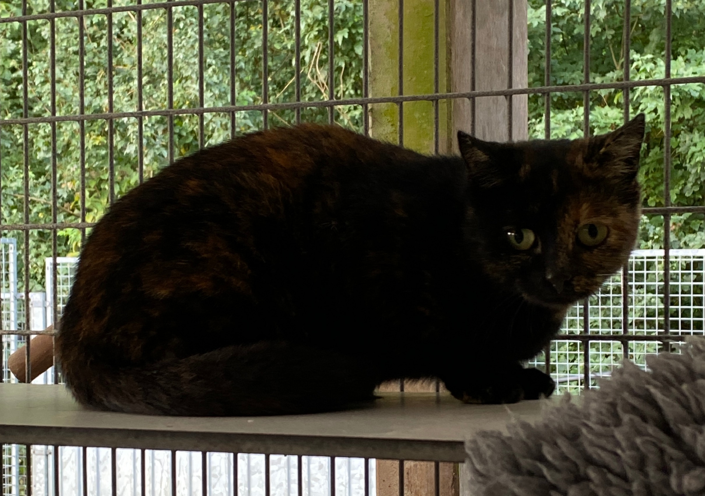 "Ich wurde zusammen mit meinem Partner Heng und unserem gemeinsamen Nachwuchs, Baby Henriette bei einer Lagerhalle aufgelesen. Wir sind klassische Wildlinge : nicht sozialisiert, wir fauchen und spucken, sobald sich uns jemand nähert. Unsere Vorfahren gehörten wohl zu einer frei lebenden Katzenpopulation. Ob wir jemals Vertrauen fassen, wird sich zeigen."