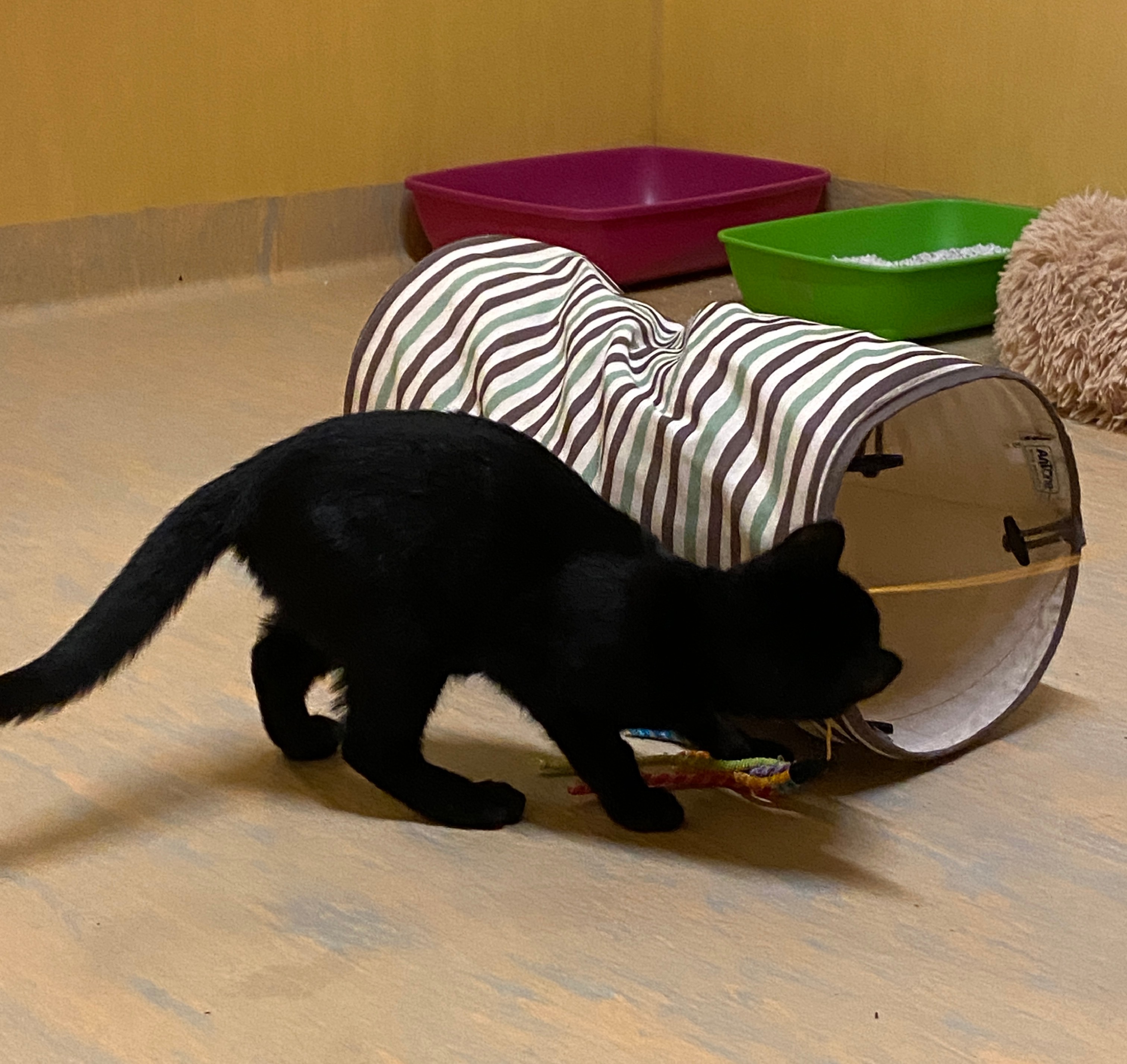 "Spielen ist mein Beruf, Quatsch machen meine Leidenschaft. Ich bin schnell, neugierig, mutig - ja sogar übermütig. Am liebsten hätte ich einen Katzenkumpel in meinem neuen Zuhause. Allein wird mir schnell langweilig, wenn niemand Zeit für mich hat, also brauche ich Menschen, die wirklich Lust haben, sich intensiv mit mir zu beschäftigen, mit mir zu spielen, mich geistig auszulasten und mir die Welt zu erklären. Weil ich noch jung bin, muss ich auch lernen, was okay ist und was nicht. Ich bin clever, aber ich teste Grenzen gern aus. Deshalb brauche ich eine Familie, die liebevoll, geduldig, aber auch konsequent ist und mir nicht alles durchgehen lässt – auch wenn ich dabei sehr unschuldig gucke. Wenn du einen aktiven, verschmusten, verspielten kleinen Panther suchst und bereit bist, Zeit, Aufmerksamkeit und ein bisschen Humor zu investieren, dann könnten wir gut zusammenpassen."