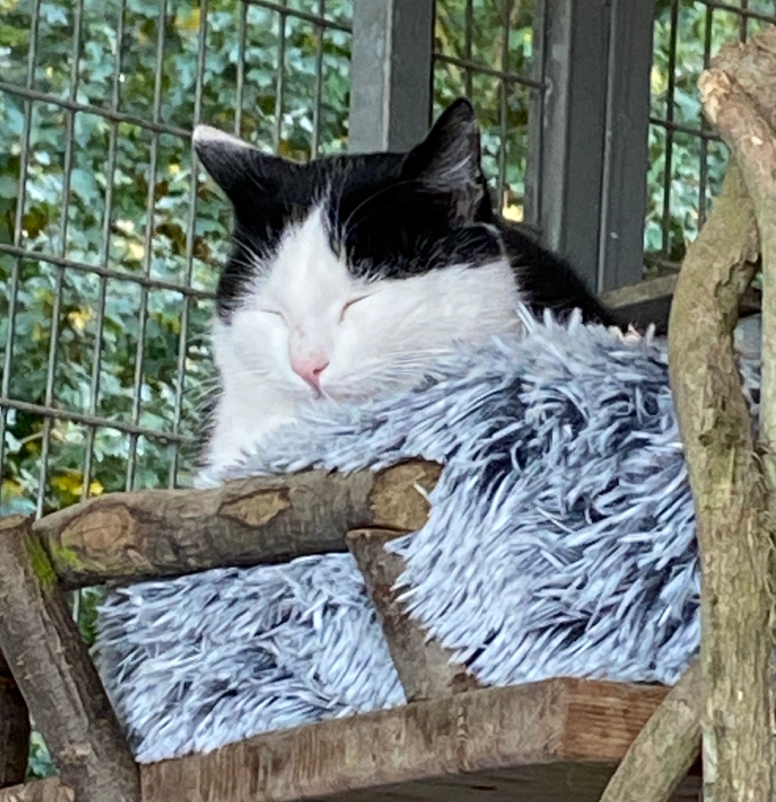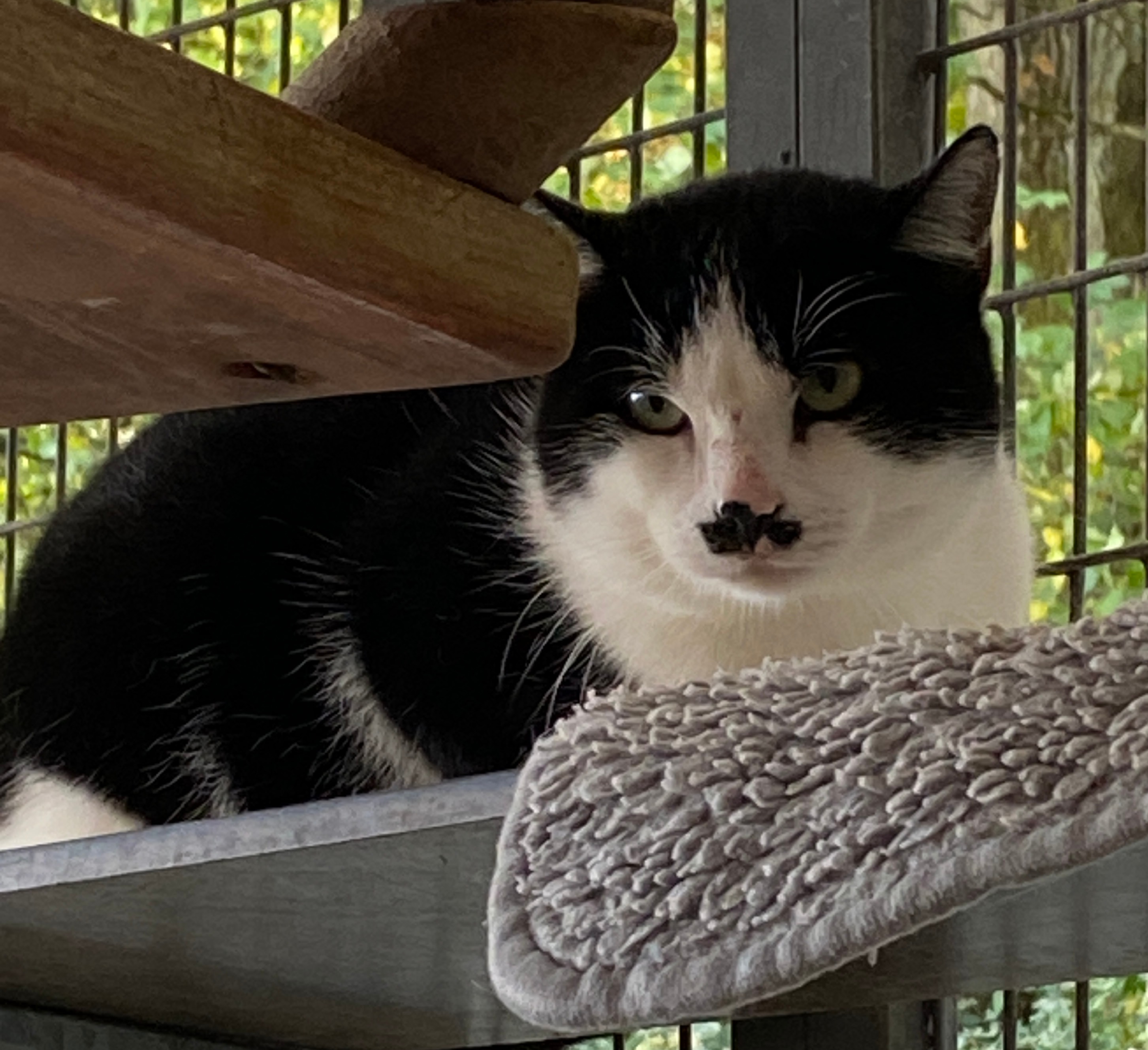 "Ich wurde zusammen mit meiner Partnerin Henriette und unserem gemeinsamen Nachwuchs, Baby Henriette bei einer Lagerhalle aufgelesen. Wir sind klassische Wildlinge : nicht sozialisiert, wir fauchen und spucken, sobald sich uns jemand nähert. Unsere Vorfahren gehörten wohl zu einer frei lebenden Katzenpopulation. Ob wir jemals Vertrauen fassen, wird sich zeigen."