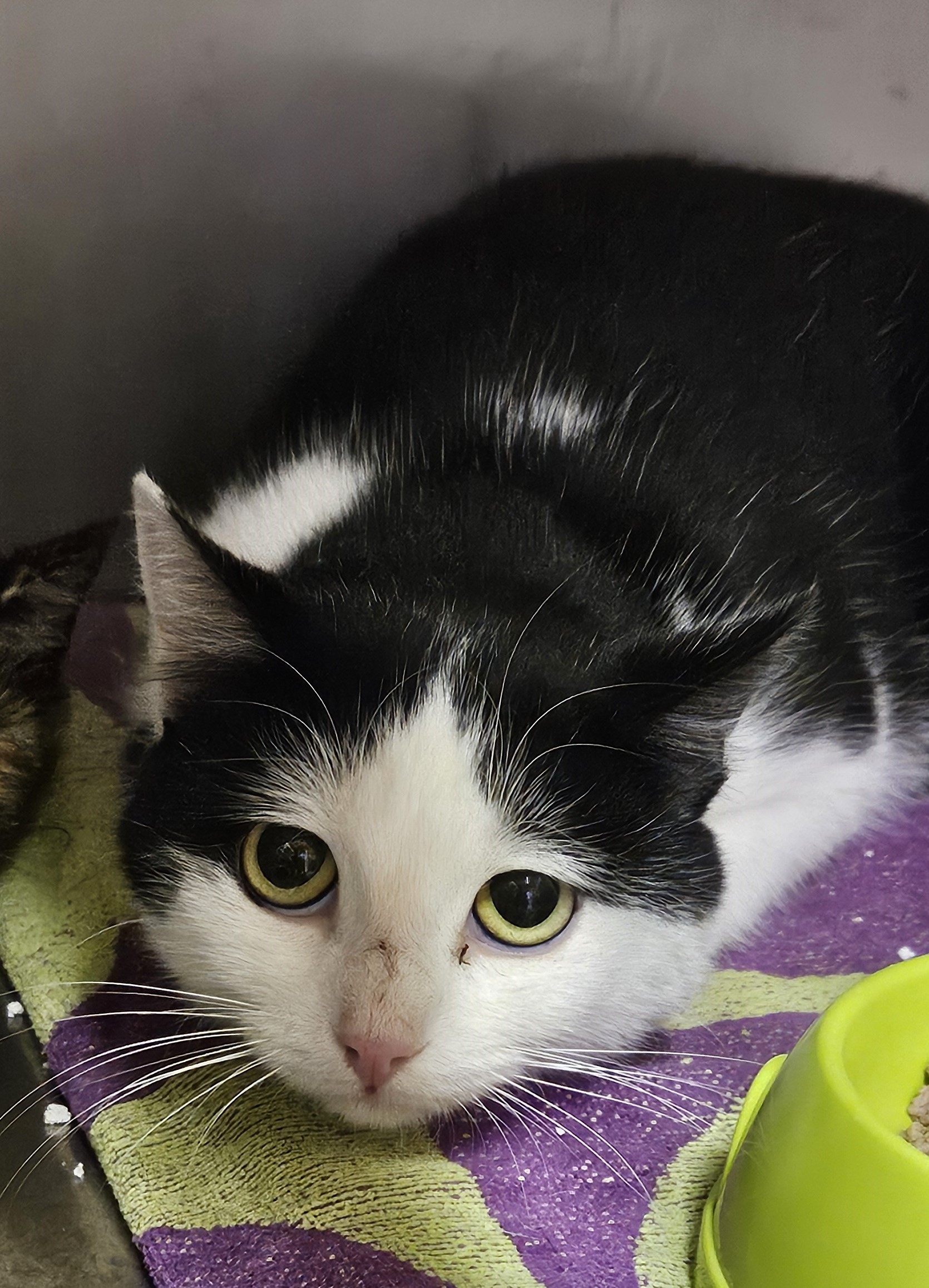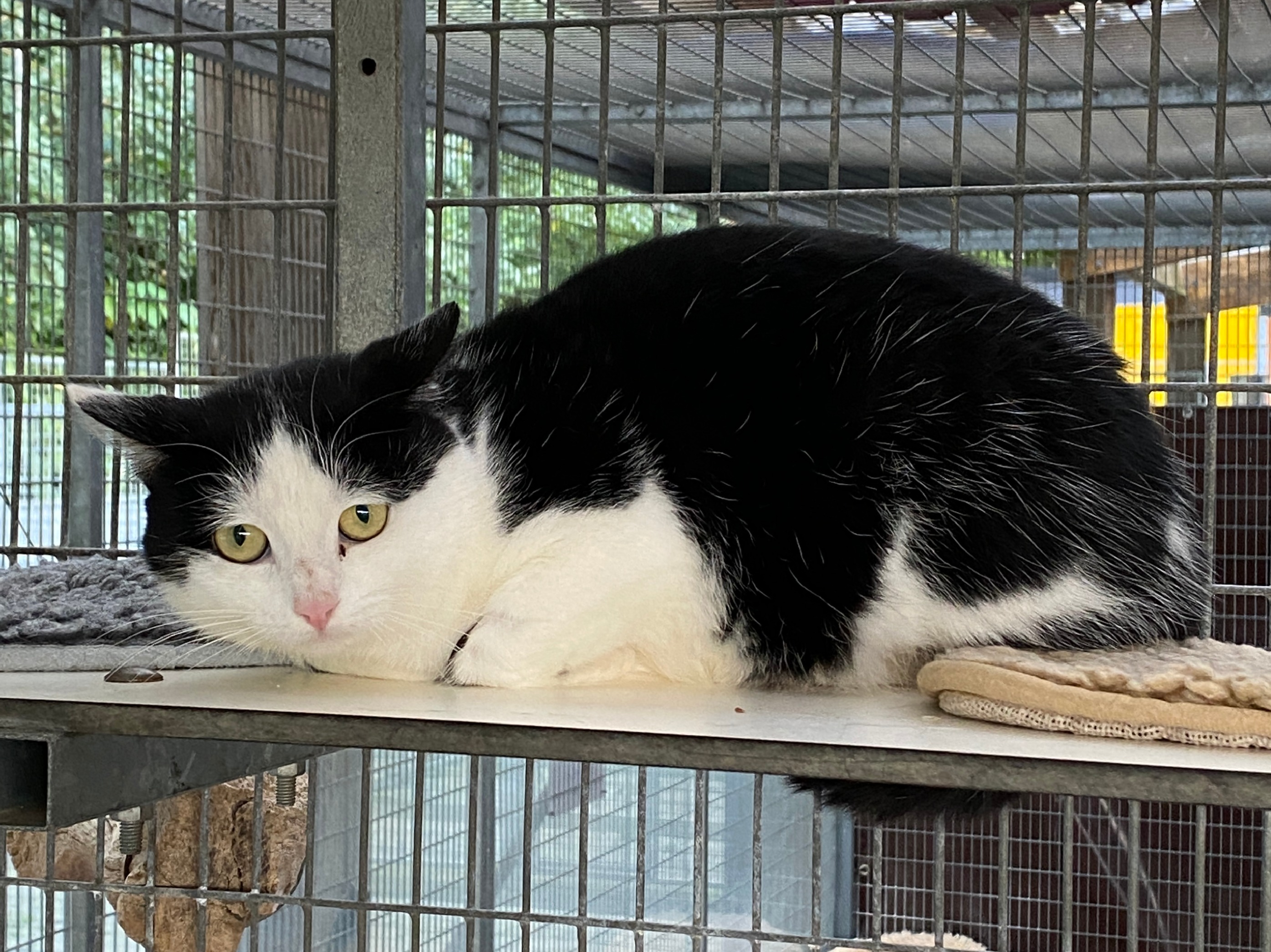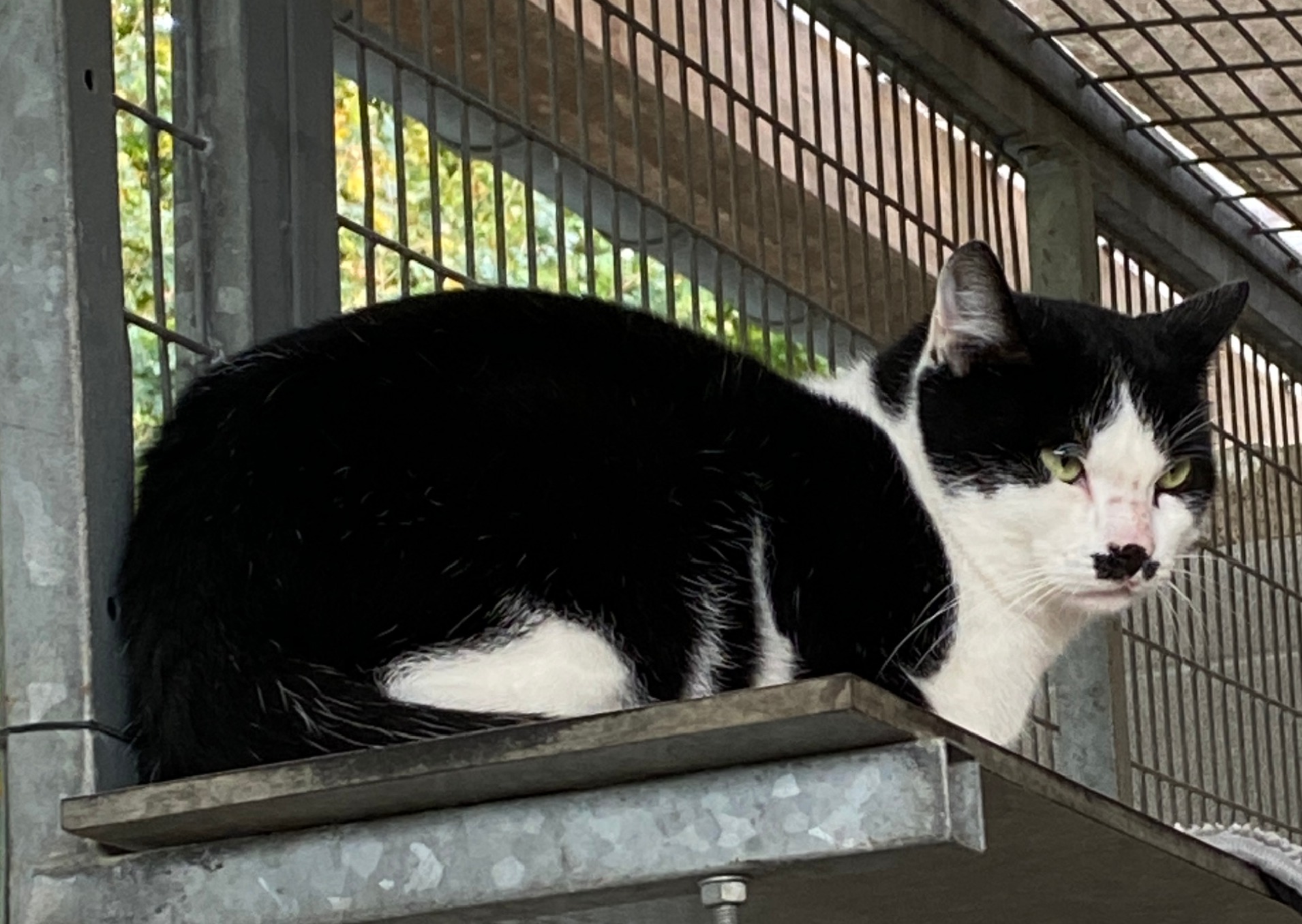 "Ich wurde in Gasperich gefunden. Mit Menschen habe ich bis jetzt keine guten Erfahrungen gemacht. Deshalb gehe ich lieber auf Nummer sicher : Sobald sich jemand nähert, fauche und spucke ich. So erreiche ich, was ich will - alle halten Abstand. Ob ich damit auf Dauer durchkomme ?"