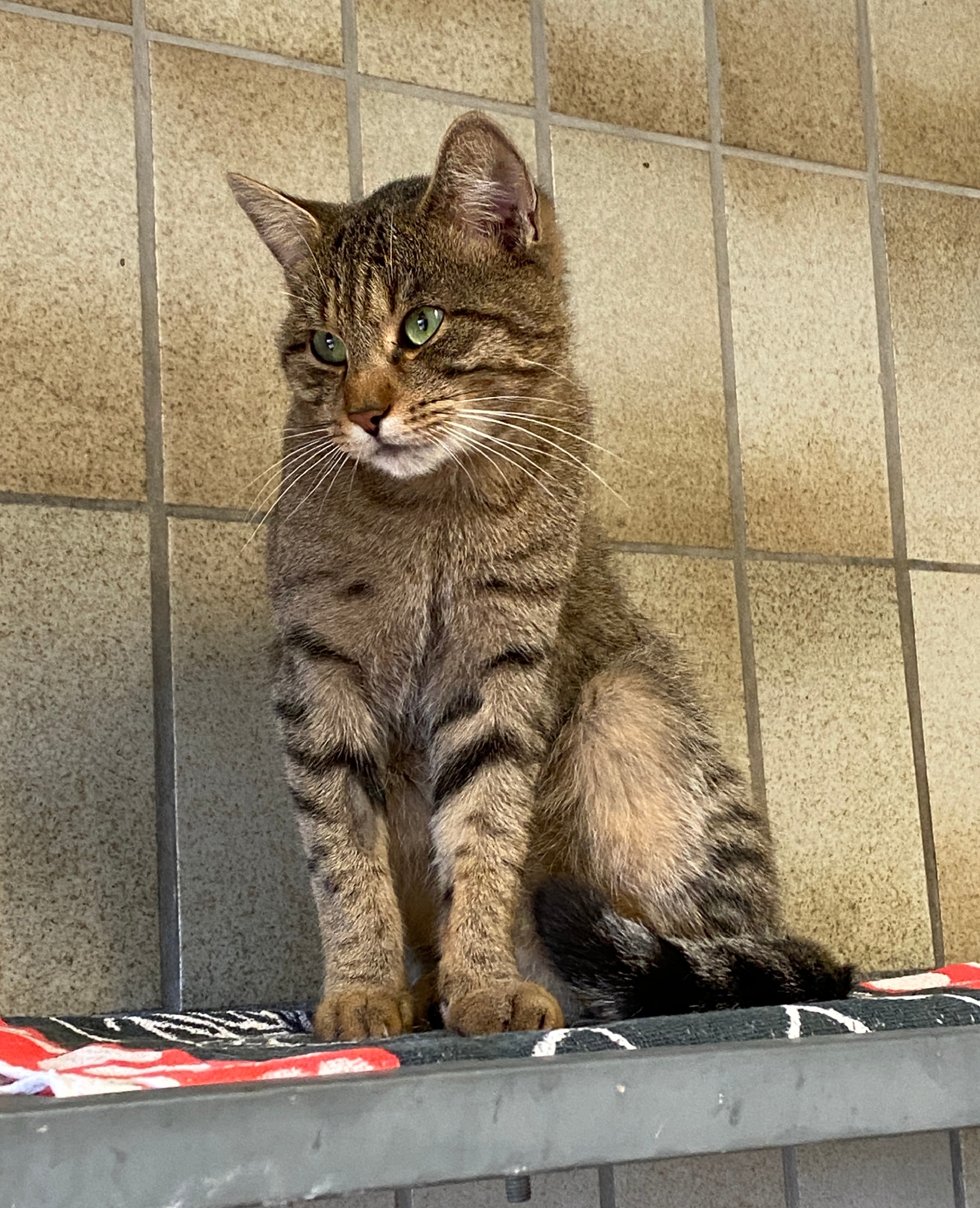 "Ich war eigentlich nur zugelaufen – und dann geblieben. Weil ich willkommen war. Doch leider musste ich mein Revier jetzt schweren Herzens verlassen : Mein Mensch ist gesundheitlich nicht mehr in der Lage, sich um mich zu kümmern. Also suche ich jetzt ein neues Königreich – eins, das einem stolzen Mini-Tiger wie mir gerecht wird. Optisch Raubkatze, innerlich Schmusetier. Ich liebe es, durch mein Revier zu streifen, die Welt aus sicherer Entfernung vom Fenster aus zu beobachten und mich stilvoll in der Sonne zu räkeln. Ein Zuhause mit Herz, Freigang und Aussicht – das müsste doch zu finden sein, oder ?"