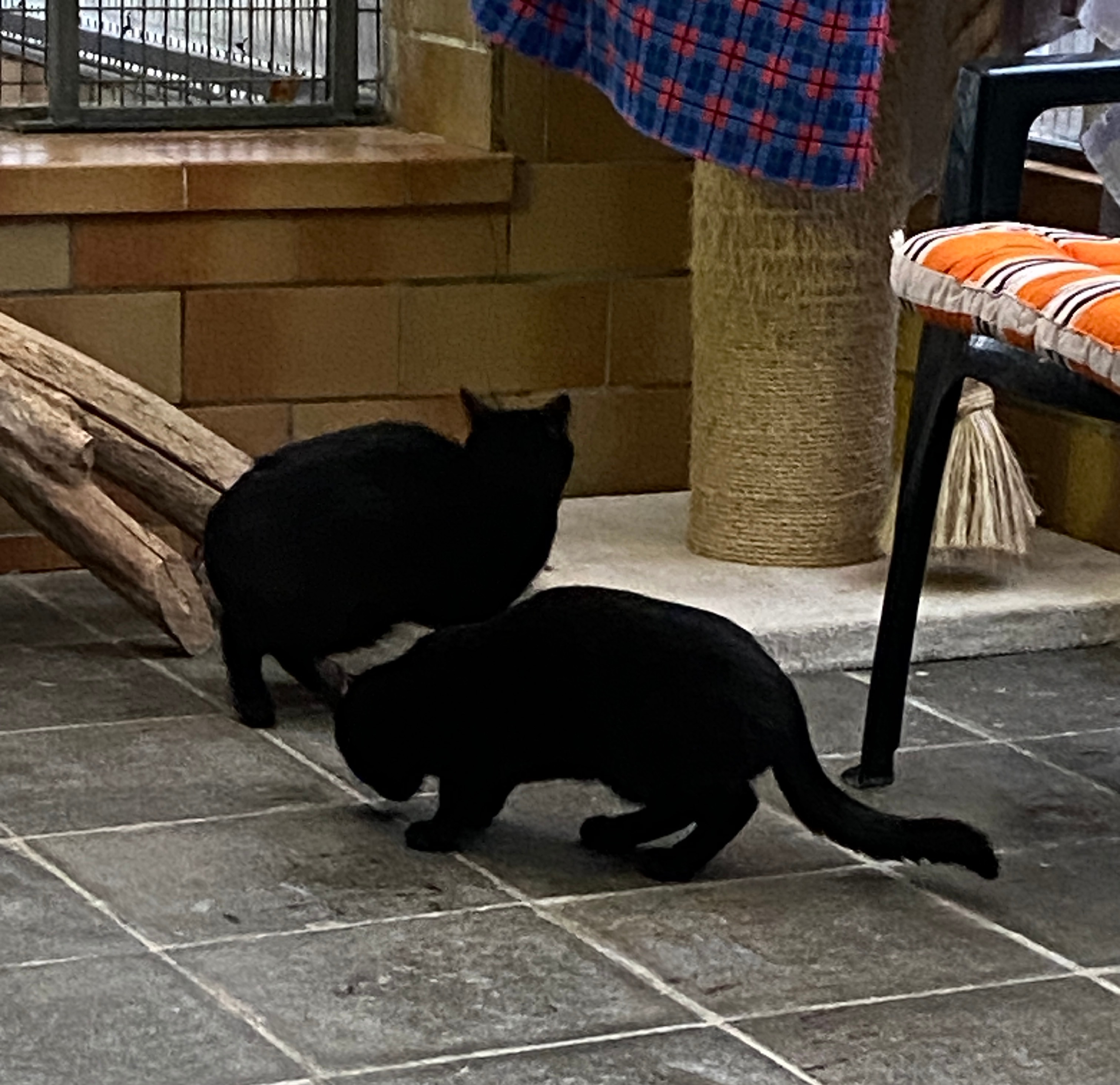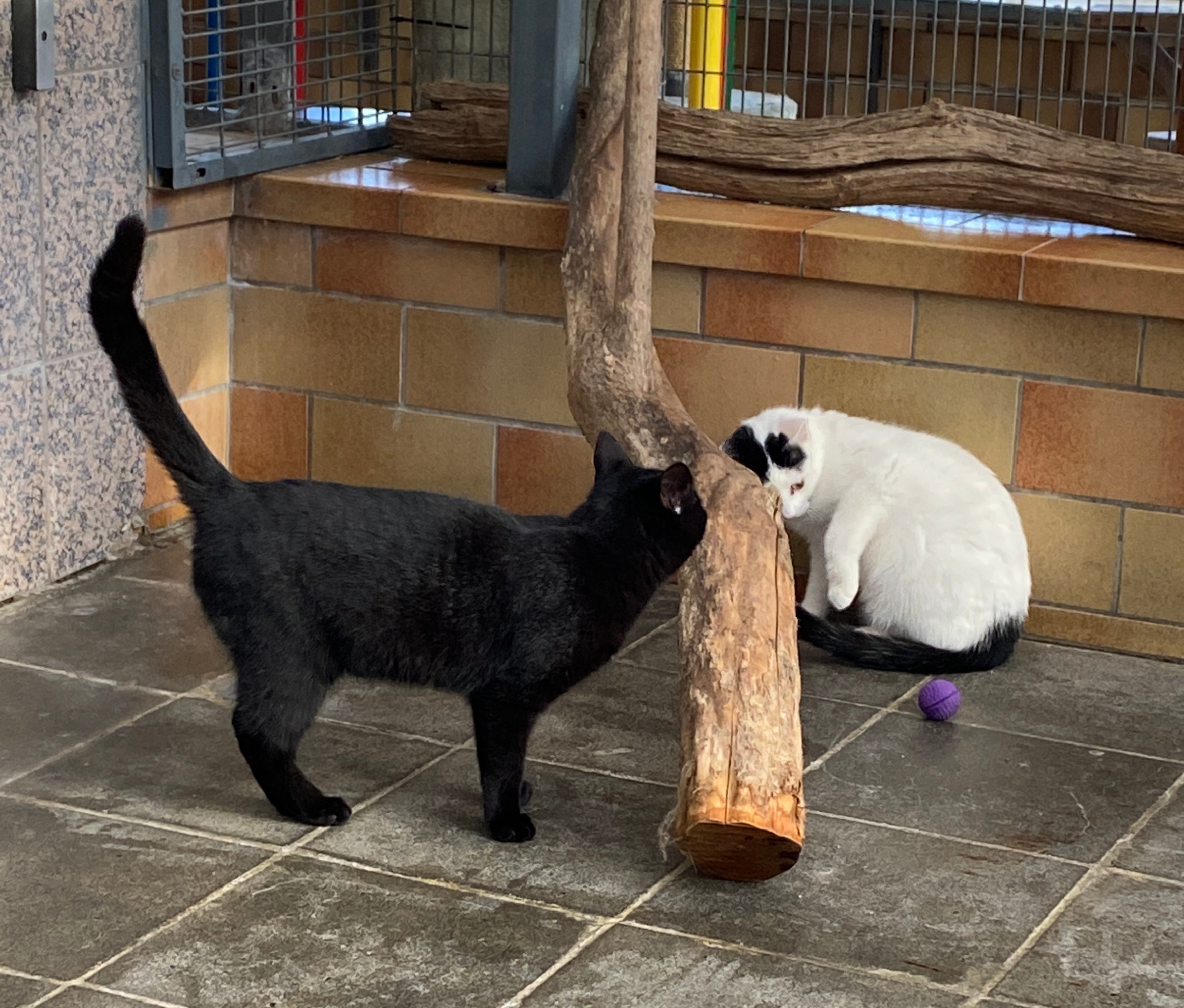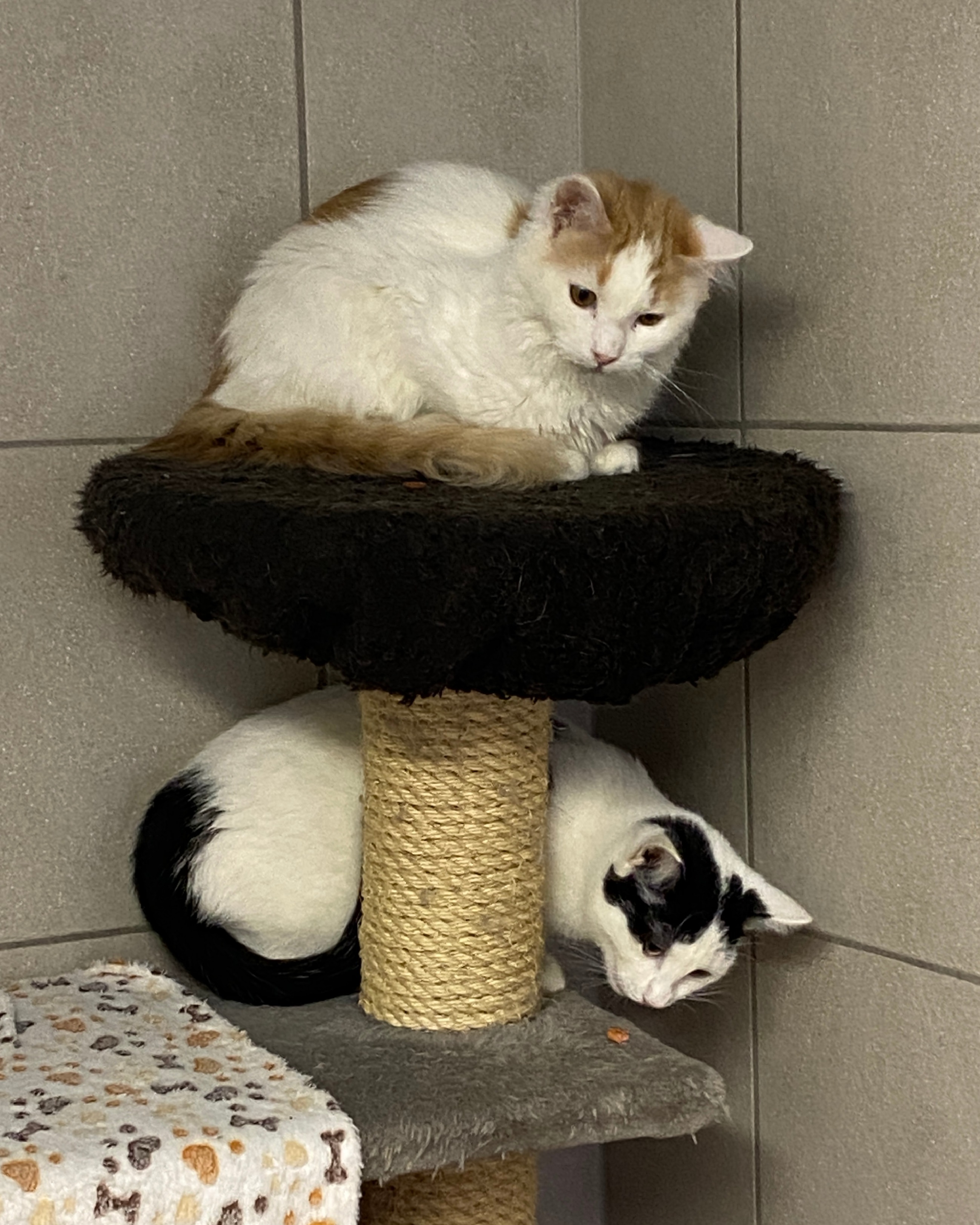 "Als Kitten hatten wir einen schwierigen Start ins Leben. Neue Umgebung, ungewohnte Geräusche und andere Katzen haben uns anfangs sehr verunsichert – wir haben uns versteckt und gefaucht. Inzwischen sind wir zu kräftigen Teenagern herangewachsen. Noch sind wir eher vorsichtig als mutig, aber neugierig genug, um Schritt für Schritt die Welt zu entdecken. Menschen finden wir interessant, auch wenn wir ihnen erst langsam näherkommen. Nun wünschen wir uns eigene Zuhause. Obwohl wir altersbedingt auch einzeln ausziehen könnten, hat sich gezeigt, dass es für uns deutlich einfacher ist, zu zweit vermittelt zu werden – ob mit einem Geschwisterchen oder einem passenden Katzenfreund. Ein vertrauter Artgenosse gibt uns Sicherheit und erleichtert die Eingewöhnung erheblich. Wir suchen geduldige Menschen mit Herz für sensible Katzen – und idealerweise Platz für zwei."