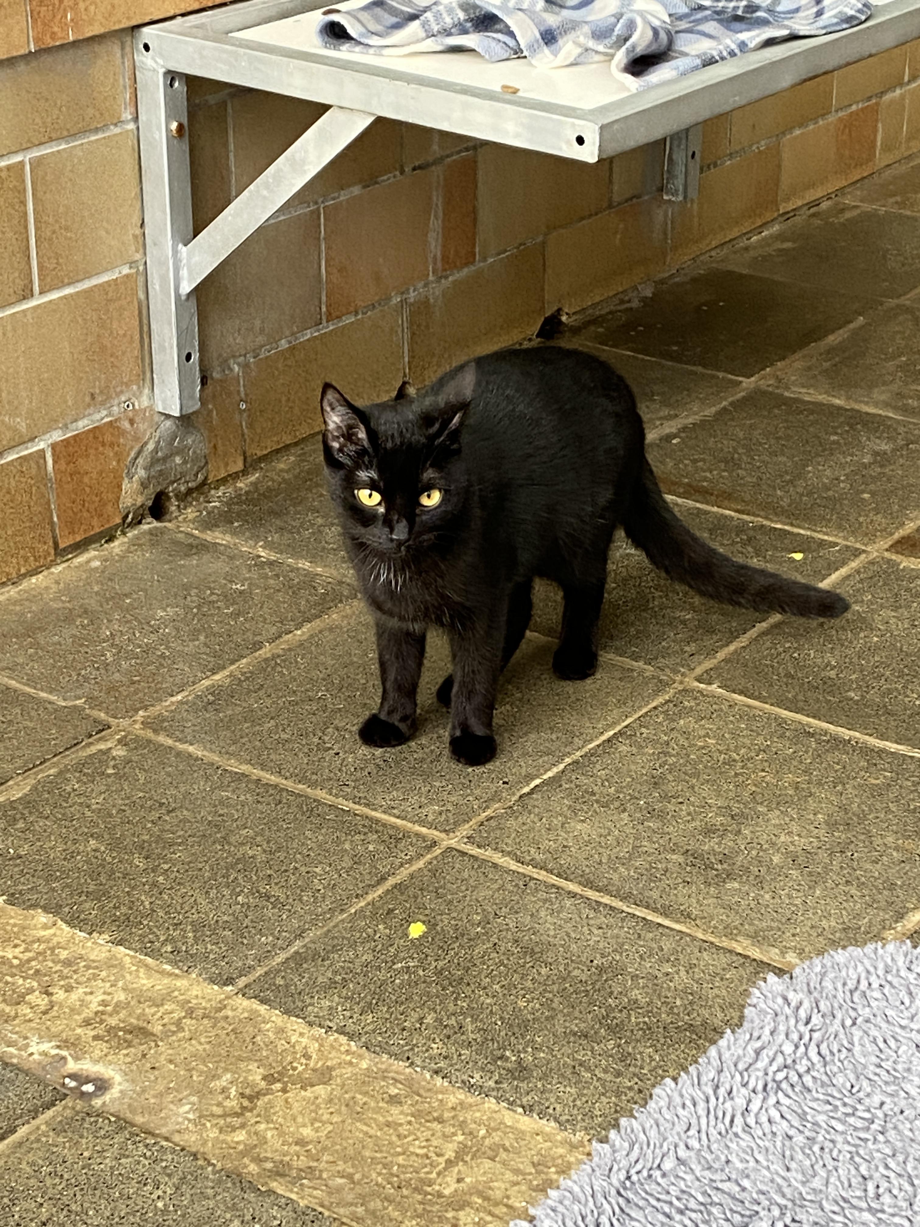 "Wir waren mehrere, die sich zum täglichen Mittagessen - ohne Verpflichtungen - bei einer älteren Dame einfanden. Allerlei Leckeres wurde dort aufgetischt, daher standen wir immer pünktlich auf der Matte. Zu unserem grössten Bedauern zog die nette Lady ins Altersheim, sodass unsere Futterquelle von jetzt auf gleich versiegt war. Deswegen war es nicht schwer, uns alle einzusammeln und ins Asile zu bringen. Mittlerweile lebe ich schon einige Monate hier im Tierheim. Noch immer bin ich sehr vorsichtig und habe bisher leider nicht gelernt, Menschen ganz zu vertrauen. Anfassen lasse ich mich daher noch nicht – dafür brauche ich einfach mehr Zeit. Es gibt aber auch gute Nachrichten : Für leckere Snacks bin ich immer zu haben, und dabei traue ich mich sogar schon ein kleines Stück näher heran. Manchmal spiele ich sogar vorsichtig mit einer Schnur – ein kleiner Moment, in dem meine Neugier gewinnt. Jetzt, wo es draußen kälter wird, suche ich außerdem häufiger den warmen Innenbereich des Tierheims auf – ein kleines Zeichen dafür, dass ich mich langsam etwas wohler fühle."