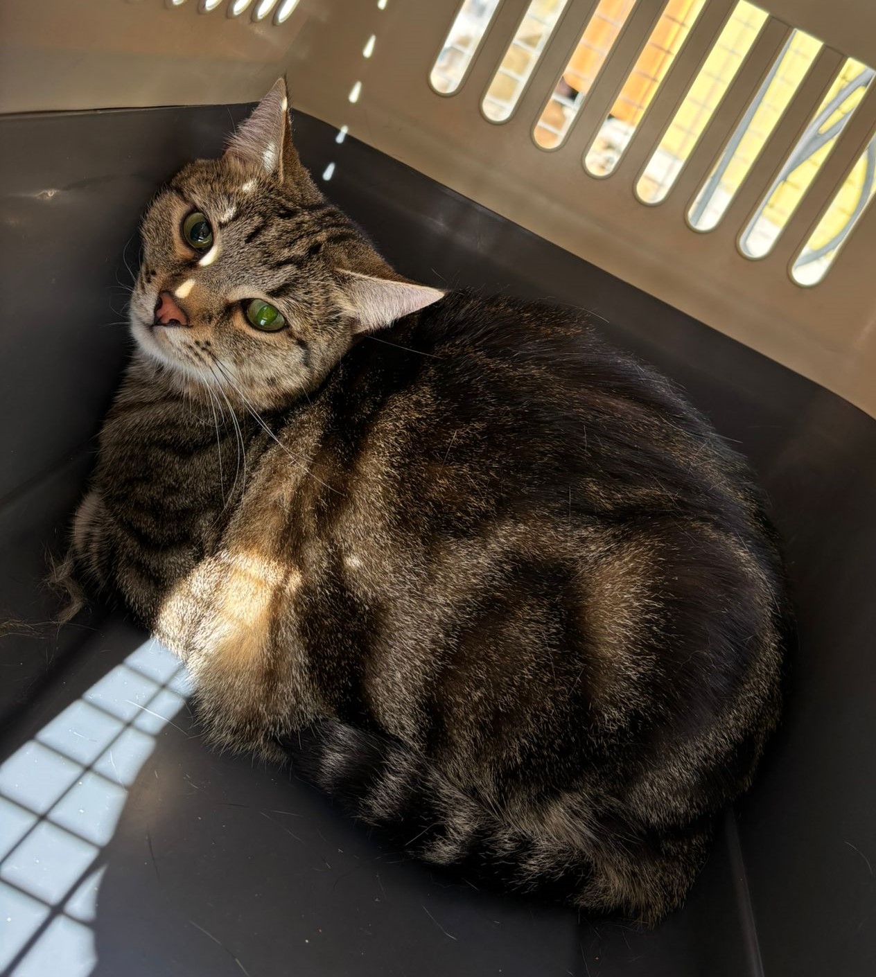 "Vier Katzen in einer Wohnung - das kann gutgehen, muss aber nicht. Als sich unsere Menschen dann auch noch trennten, war unser Miteinander nicht mehr zu organisieren. Die neue Umgebung im Asile ängstigt mich noch etwas, deshalb suche ich die Nähe der Alteingesessenen. Außerdem entdecke ich langsam, dass es draußen ganz schön spannend ist. In Zukunft ist "nur-drinnen-bleiben" also keine Option mehr."