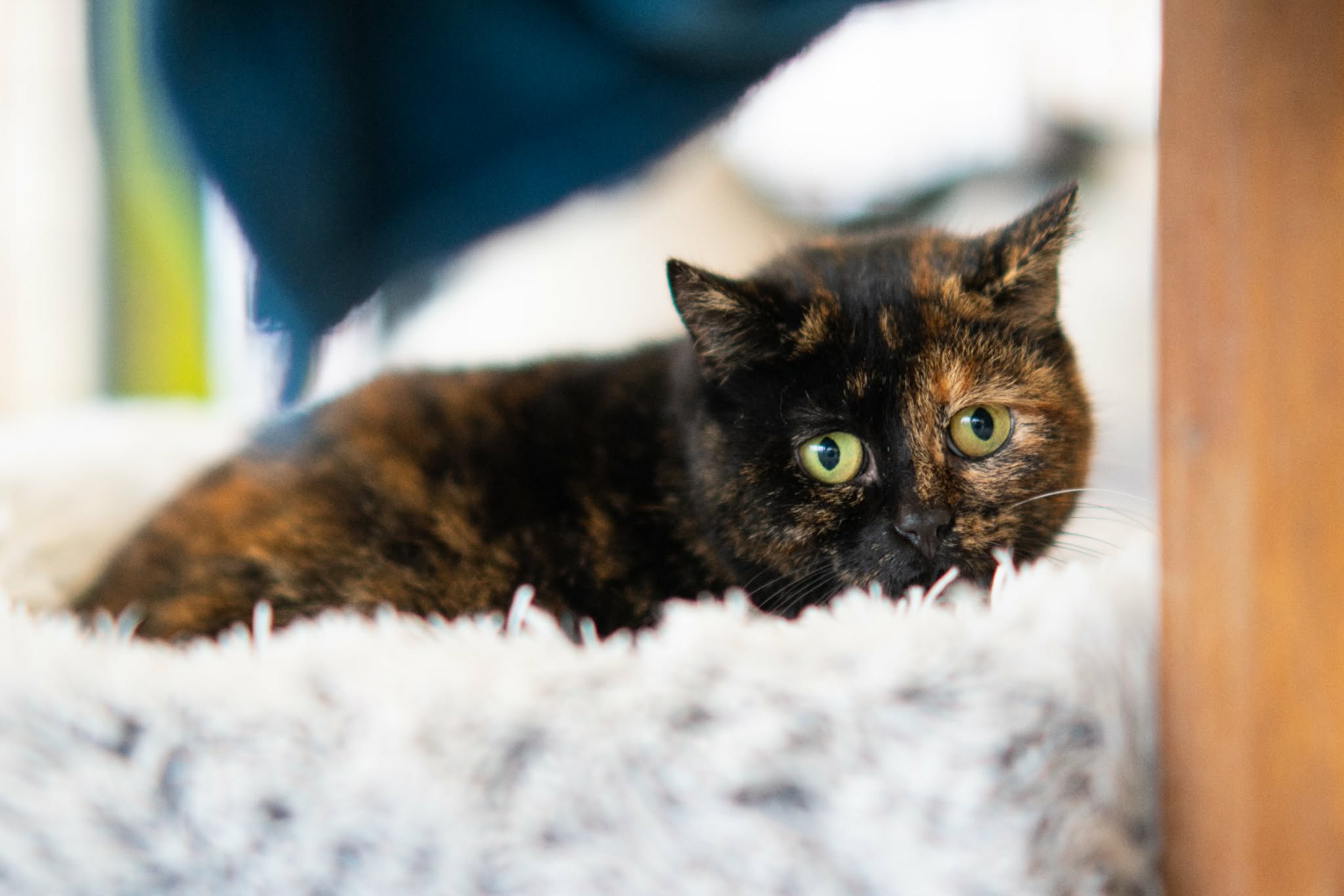 "Leider musste ich mein Zuhause verlassen. Es heißt, ich sei nie richtig stubenrein gewesen und hätte mich mit kleinen Kindern und anderen Katzen schwergetan. Dass ich nicht stubenrein bin, stimmt so nicht, ich benutze das Katzenklo zuverlässig. Was mir im Moment aber noch sehr schwerfällt, ist Vertrauen. Das Tierheim ist für mich sehr beängstigend : fremde Geräusche, fremde Gerüche und kaum Ruhe. Wenn mir jemand zu nahe kommt, fauche oder grummle ich noch. Das ist mein Weg zu zeigen, dass ich Abstand brauche und mich unsicher fühle. Anfassen mag ich derzeit nicht, und mit anderen Katzen komme ich im Moment nicht zurecht. Am liebsten würde ich in einem ruhigen Zuhause als reine Wohnungskatze leben, wo ich mich sicher fühlen kann."