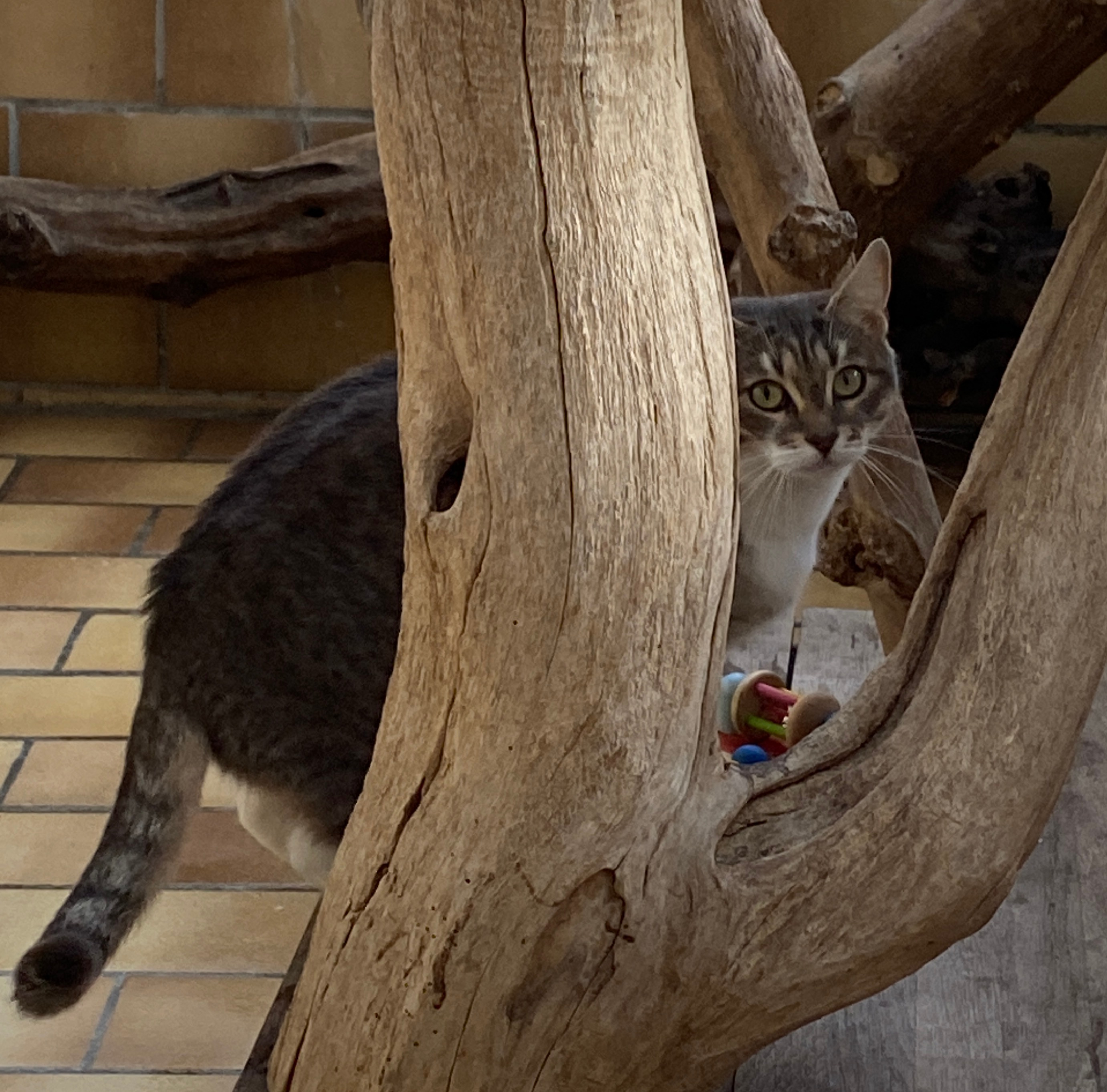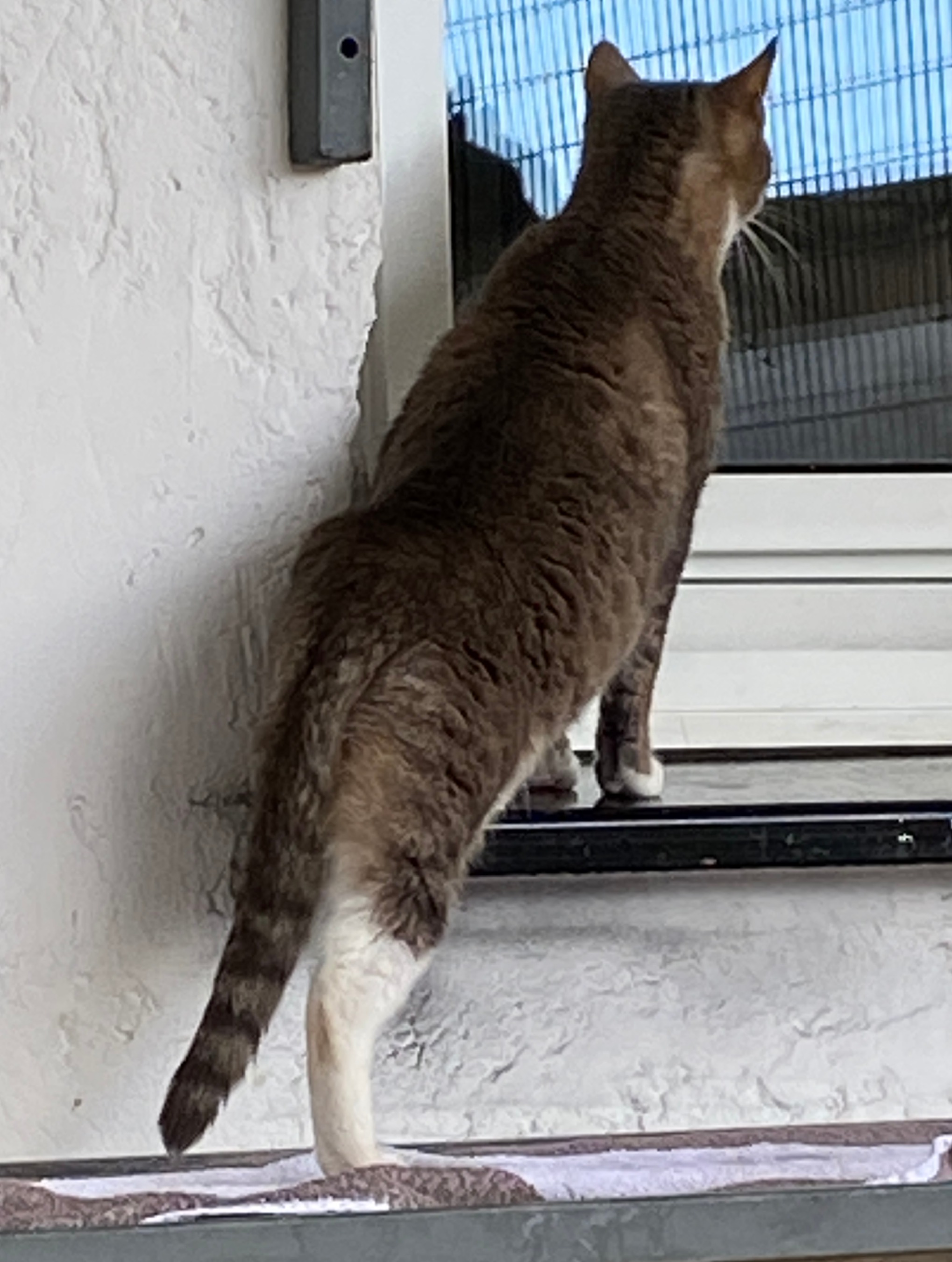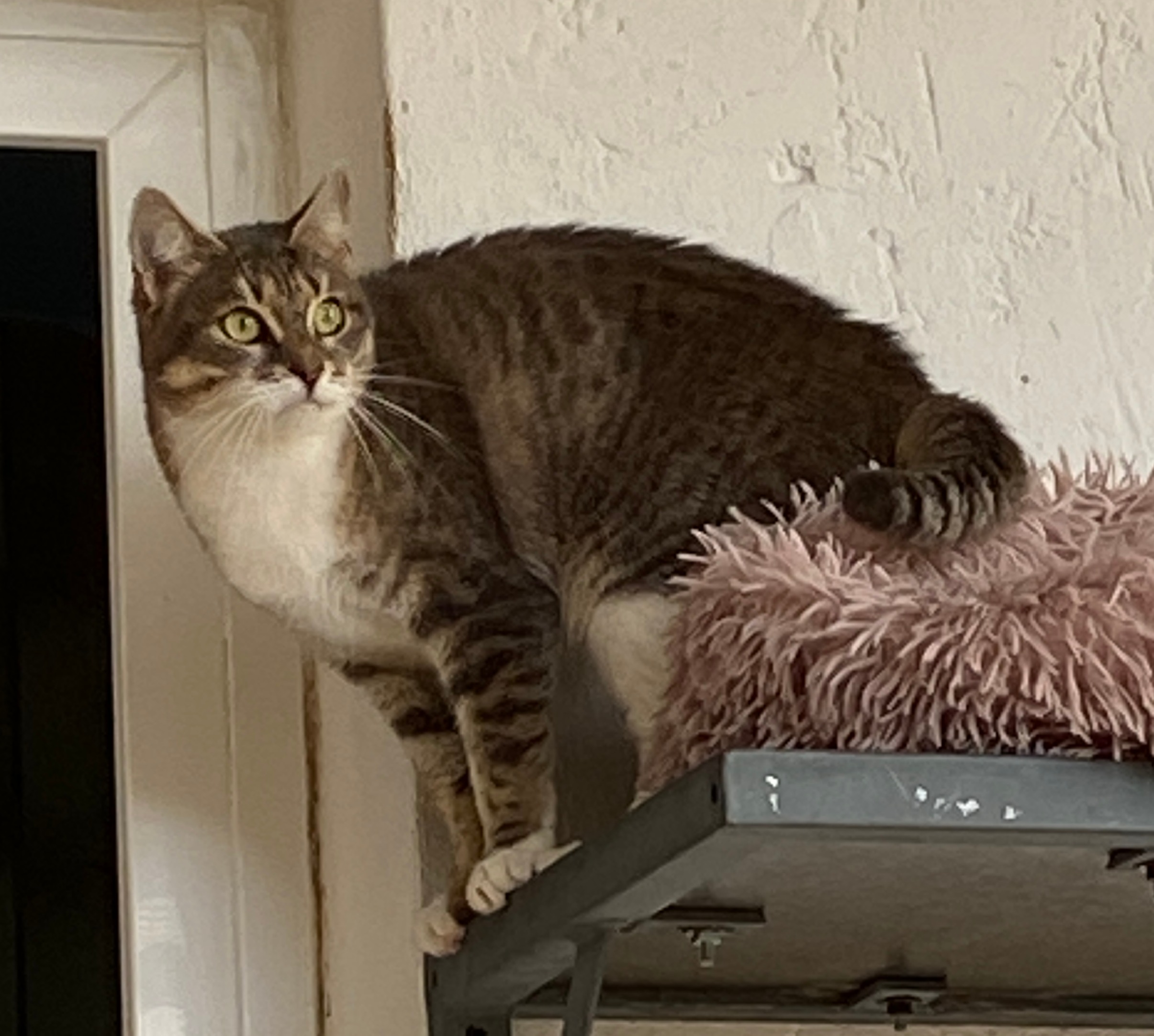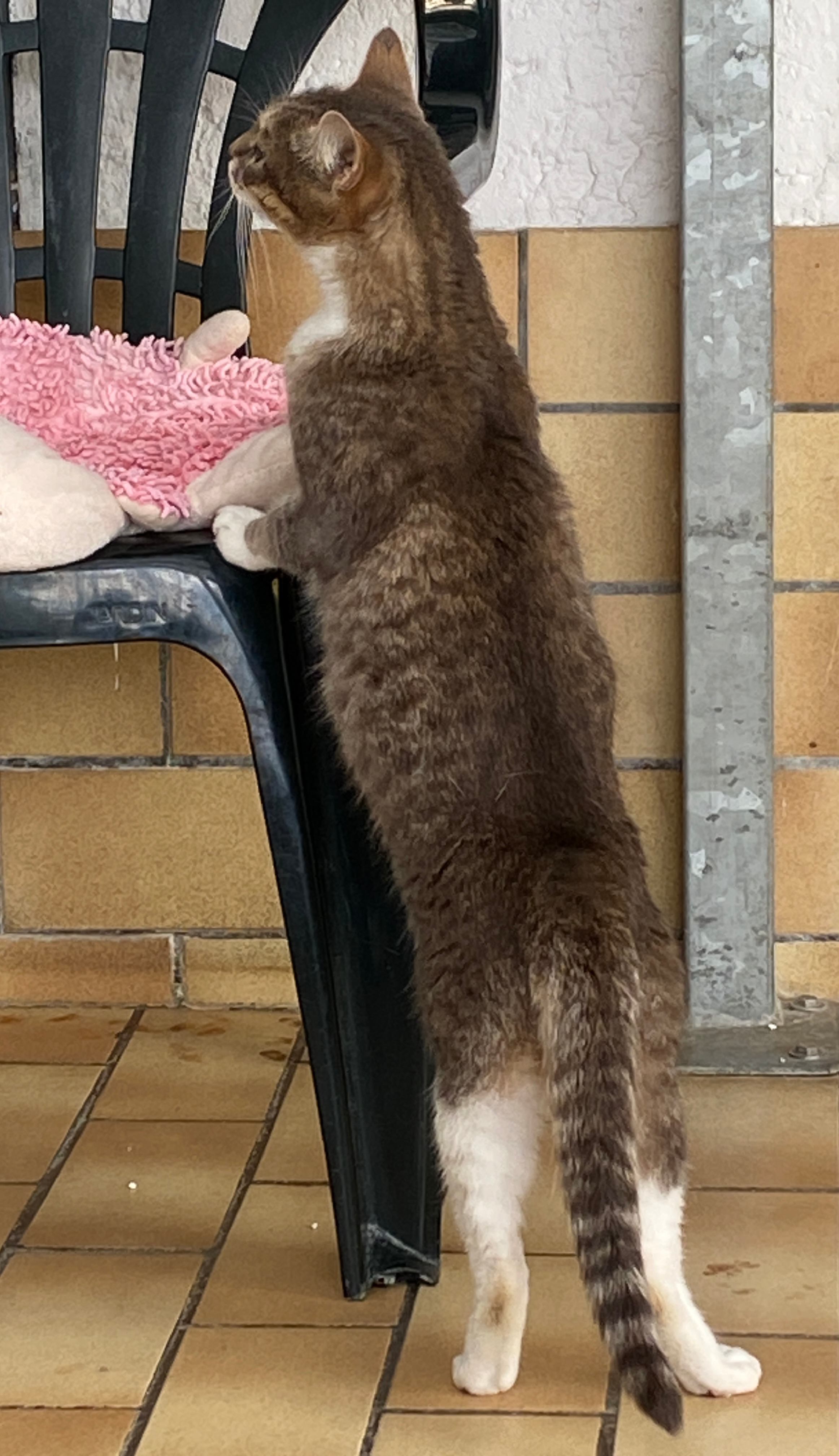 "Nachwuchs im Haus, da mussten Lilo und ich Platz machen. Unverschämtheit ! Naja, da ich ein Schmusetiger bin, habe ich in Rekordzeit ein neues Zuhause gefunden."