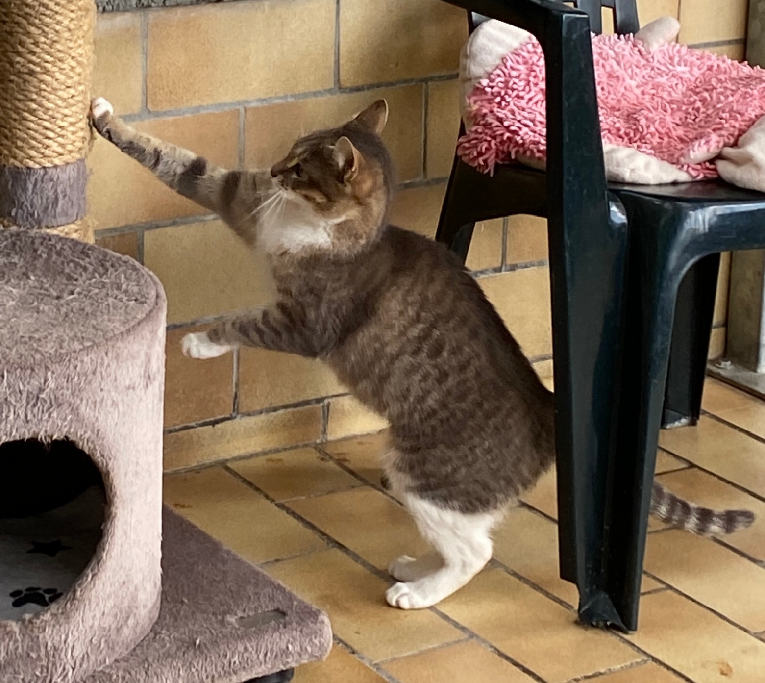 Mit viel Hingabe hat Mina ihre vier Babys großgezogen – alle sind mittlerweile in liebevolle Hände vermittelt worden. Nun ist sie an der Reihe, ein warmes und geborgenes Zuhause zu finden. Sie ist neugierig, verspielt und voller Energie. Man merkt ihr an, dass sie selbst noch ein „großes Katzenkind“ ist: Beim Spielen kann sie manchmal etwas unbeholfen sein und kratzt oder beißt leicht. Das ist aber nie böse gemeint – sie muss einfach noch ein bisschen lernen, ihre Kräfte besser einzuschätzen. Wir wünschen uns für sie ein liebevolles Zuhause mit Menschen, die ihr mit Geduld, Verständnis und Zuneigung begegnen. Idealerweise haben Sie schon etwas Erfahrung mit Katzen und sind bereit, ihr die Zeit zu geben, die sie braucht, um sich ganz einzuleben.