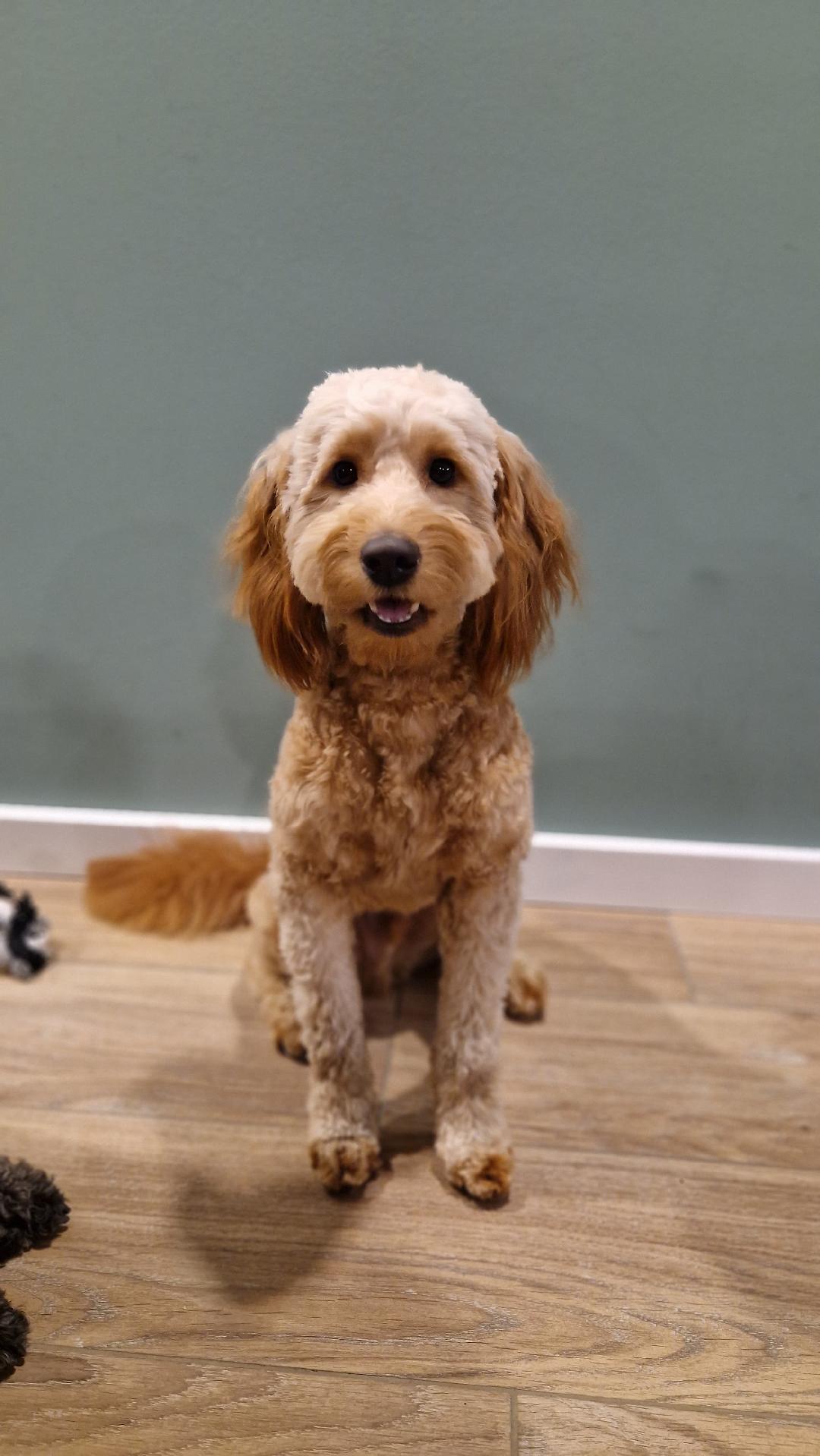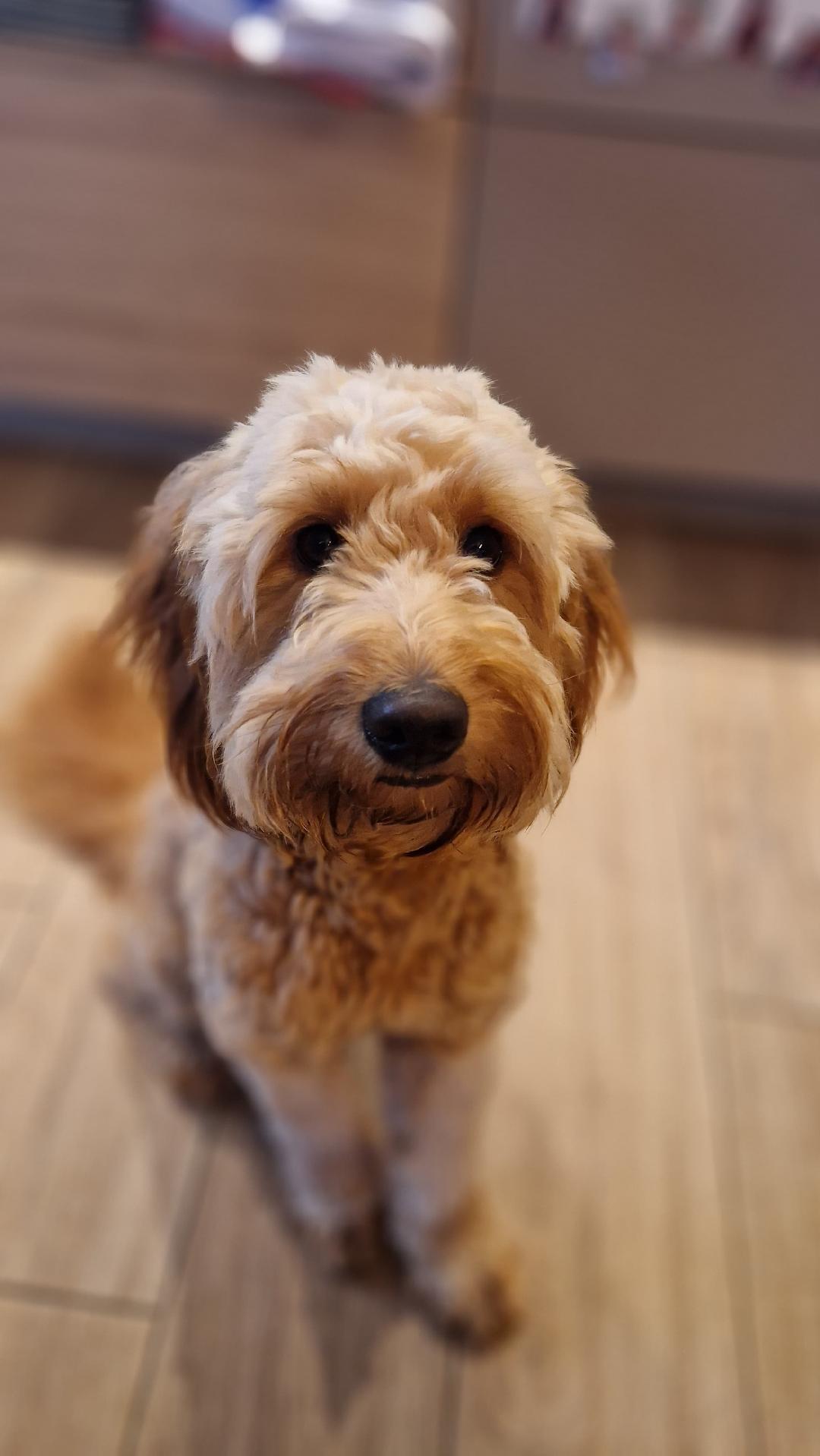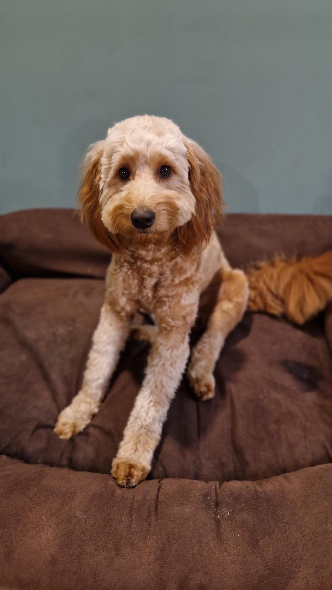 Mir mussen leiden eng nei Famill sichen fir eisen Hond, den Hazel, Goldendoodle, 1 Joer jonk.