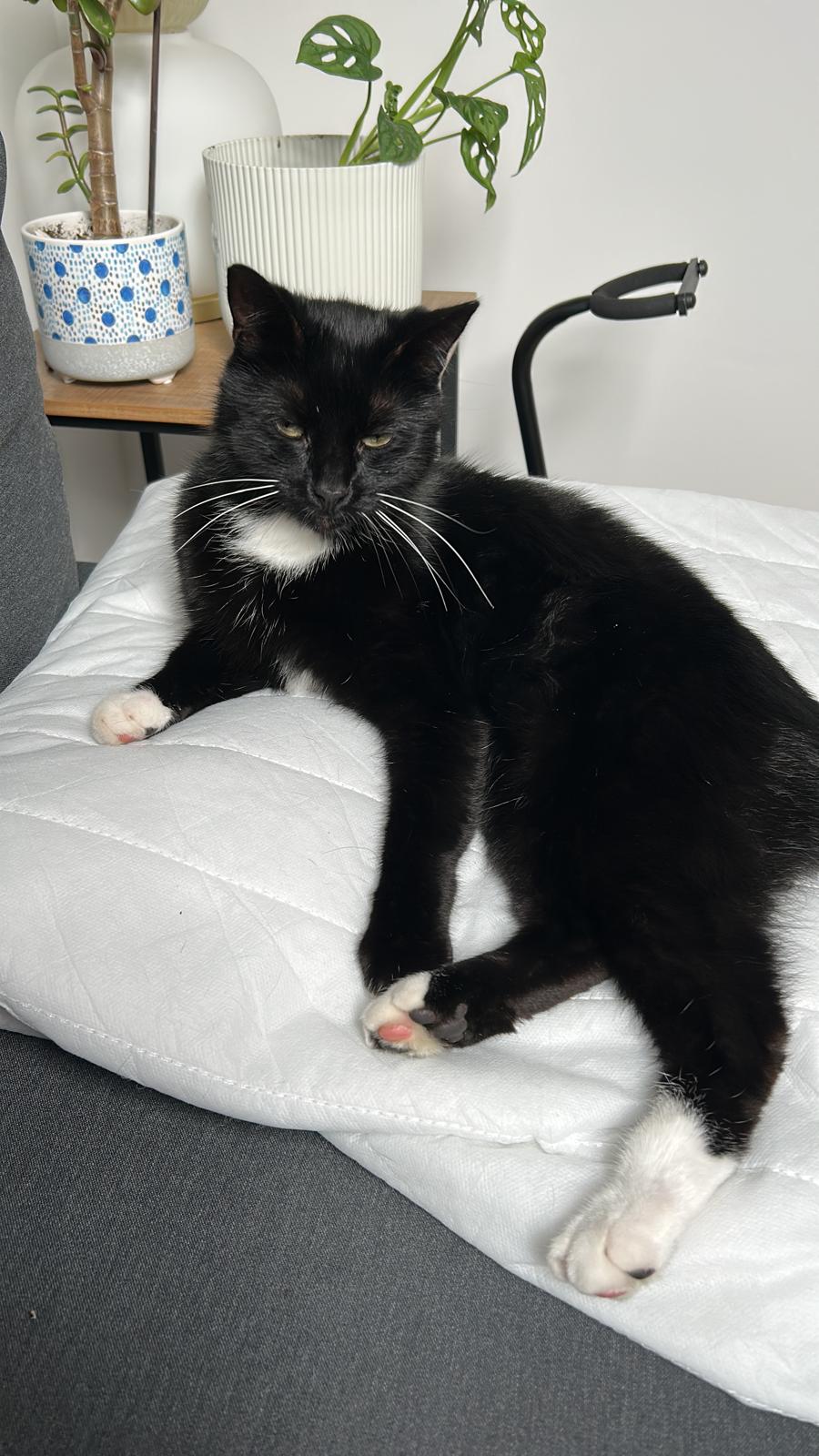 Mâle, castré, 2 ans, Puce: sous le nom Staar, chat d'intérieur, très peu doux mais peut être apeuré