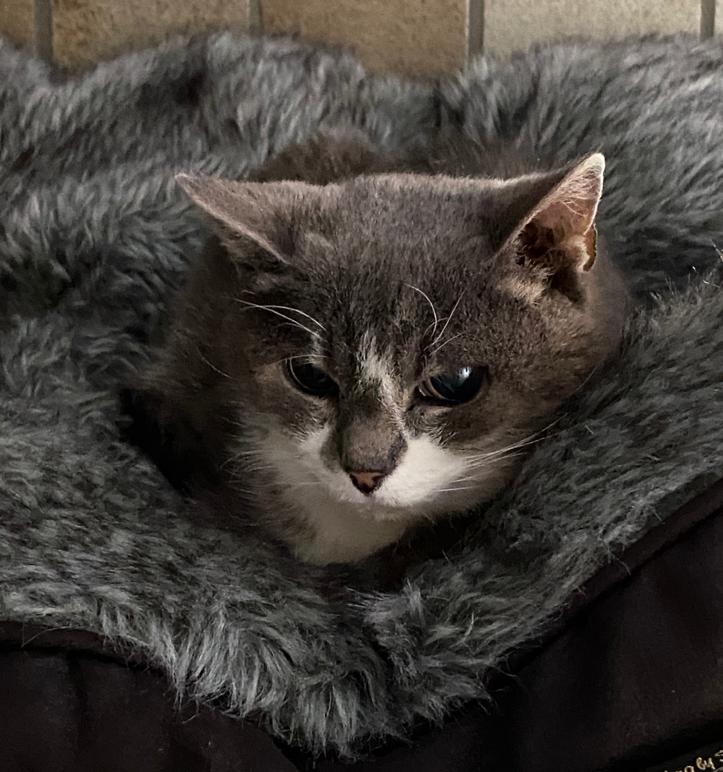 "Ich bin eine Katze mit russisch-blauem Einschlag, mit weichem grauem Fell und neugierigen grünen Augen. Drinnen fühle ich mich am wohlsten, aber sobald eine Tür offen steht, nutze ich die Gelegenheit und schaue gern kurz nach draußen. Dort halte ich mich jedoch nie lange auf – ein paar Schritte, ein wenig frische Luft, dann möchte ich wieder zurück in die Sicherheit des Hauses."