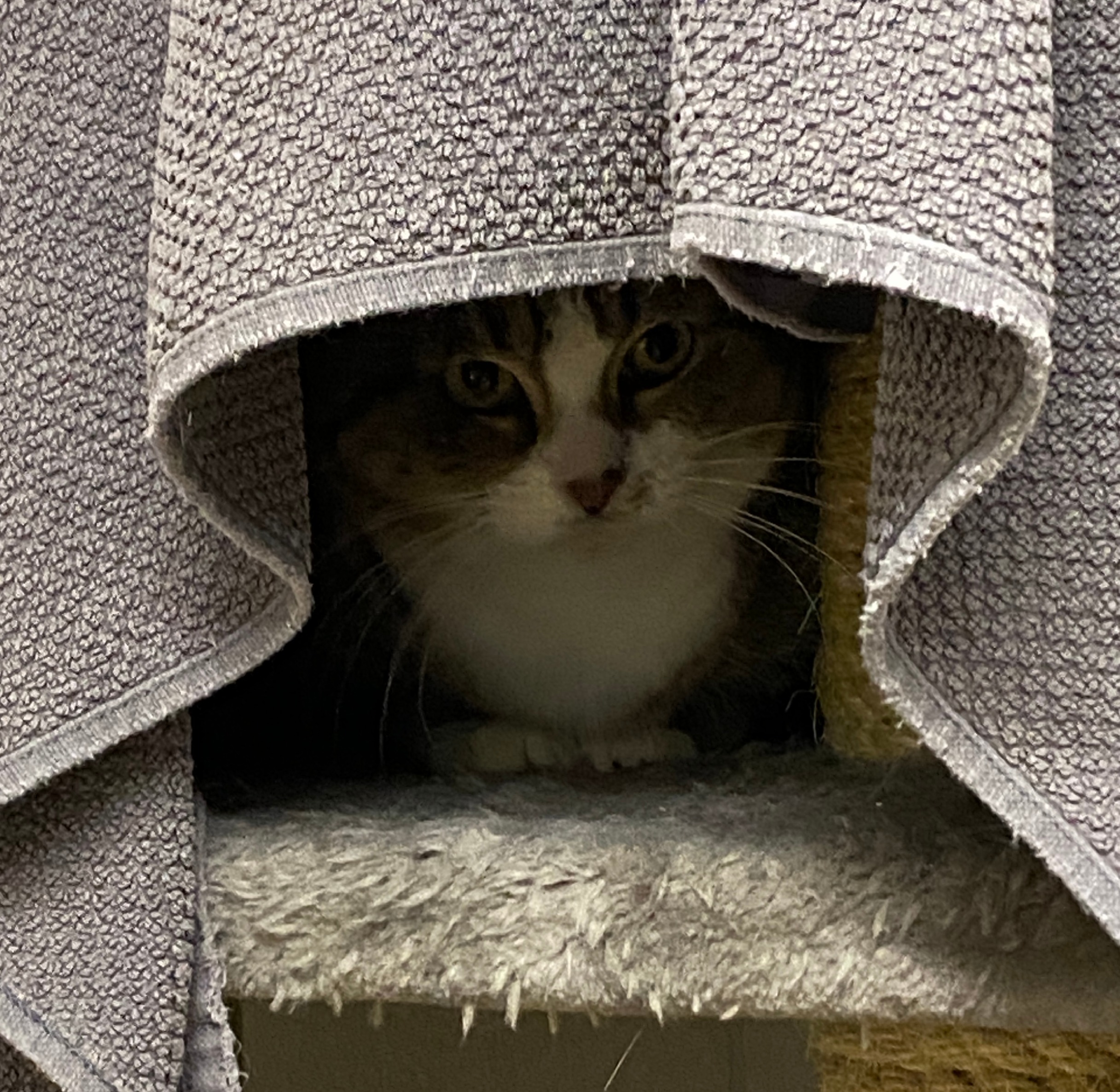 "Drei Babys habe ich großgezogen, die inzwischen alle erfolgreich vermittelt wurden. Mit Menschen habe ich in meinem bisherigen Leben leider kaum gute Erfahrungen gemacht, daher bin ich noch sehr vorsichtig, sobald sich jemand nähert. Anfangs habe ich mich nur in der Höhle meines Kratzbaums versteckt, doch inzwischen traue ich mich schon gelegentlich heraus – ein kleiner, aber wichtiger Fortschritt ! Ich bin zwar noch immer recht ängstlich, aber Leckerlis nehme ich inzwischen gerne an. Mit Geduld, Ruhe und Liebe werde ich sicher weiter Vertrauen fassen. Ich wünsche mir ein Zuhause bei katzenerfahrenen Menschen in einer möglichst ruhigen Umgebung. Ein sicherer Rückzugsort ist dabei Voraussetzung – und später sollte unbedingt Freigang möglich sein."