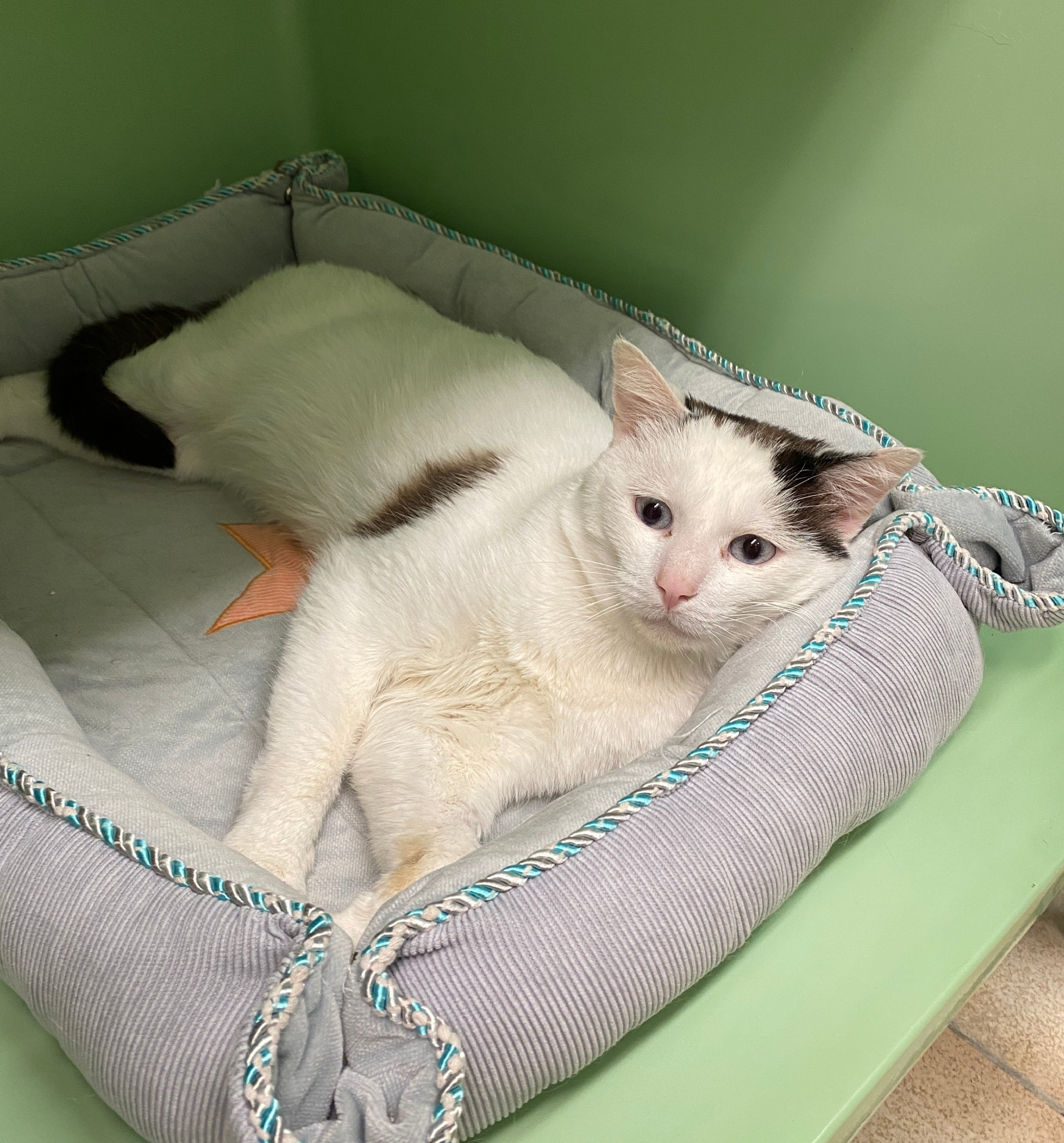 "Wir waren mehrere, die sich zum täglichen Mittagessen - ohne Verpflichtungen - bei einer älteren Dame einfanden. Allerlei Leckeres wurde dort aufgetischt, daher standen wir immer pünktlich auf der Matte. Zu unserem grössten Bedauern zog die nette Lady ins Altersheim, sodass unsere Futterquelle von jetzt auf gleich versiegt war. Deswegen war es nicht schwer, uns alle einzusammeln und ins Asile zu bringen. Mittlerweile lebe ich schon einige Monate hier im Tierheim. Noch immer bin ich sehr vorsichtig und habe bisher leider nicht gelernt, Menschen ganz zu vertrauen. Anfassen lasse ich mich daher noch nicht – dafür brauche ich einfach mehr Zeit. Es gibt aber auch gute Nachrichten : Für leckere Snacks bin ich immer zu haben, und dabei traue ich mich sogar schon ein kleines Stück näher heran. Jetzt, wo es draußen kälter wird, suche ich außerdem häufiger den warmen Innenbereich des Tierheims auf – ein kleines Zeichen dafür, dass ich mich langsam etwas wohler fühle."