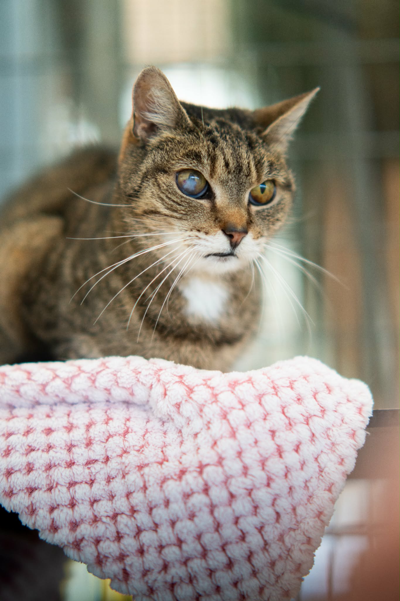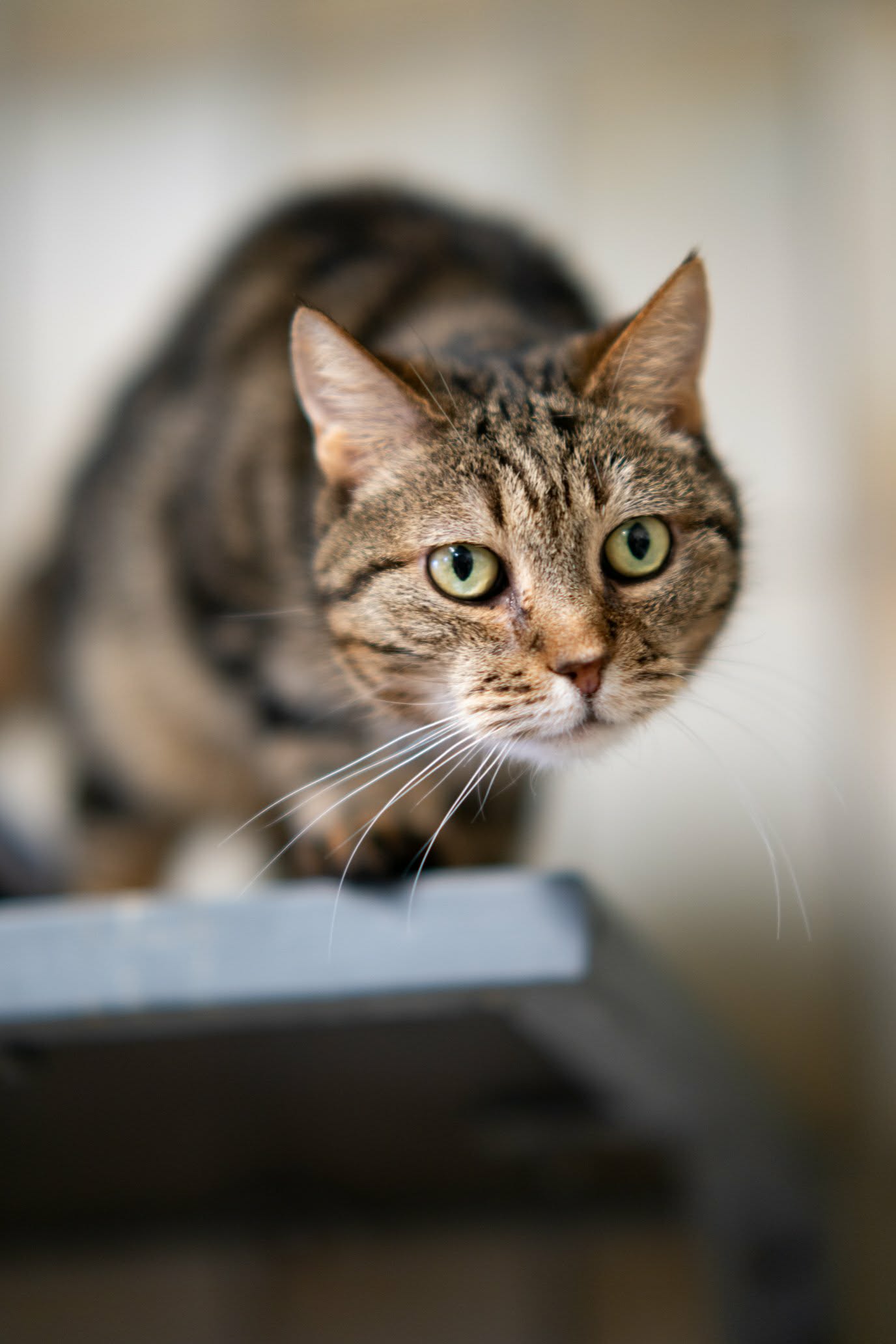"Leider musste ich mein Zuhause verlassen. Es heißt, ich sei nie richtig stubenrein gewesen und hätte mich mit kleinen Kindern und anderen Katzen schwergetan. Dass ich nicht stubenrein bin, stimmt so nicht, ich benutze das Katzenklo zuverlässig. Was mir im Moment aber noch sehr schwerfällt, ist Vertrauen. Das Tierheim ist für mich sehr beängstigend : fremde Geräusche, fremde Gerüche und kaum Ruhe. Wenn mir jemand zu nahe kommt, fauche oder grummle ich noch. Das ist mein Weg zu zeigen, dass ich Abstand brauche und mich unsicher fühle. Anfassen mag ich derzeit nicht, und mit anderen Katzen komme ich im Moment nicht zurecht. Am liebsten würde ich in einem ruhigen Zuhause als reine Wohnungskatze leben, wo ich mich sicher fühlen kann."