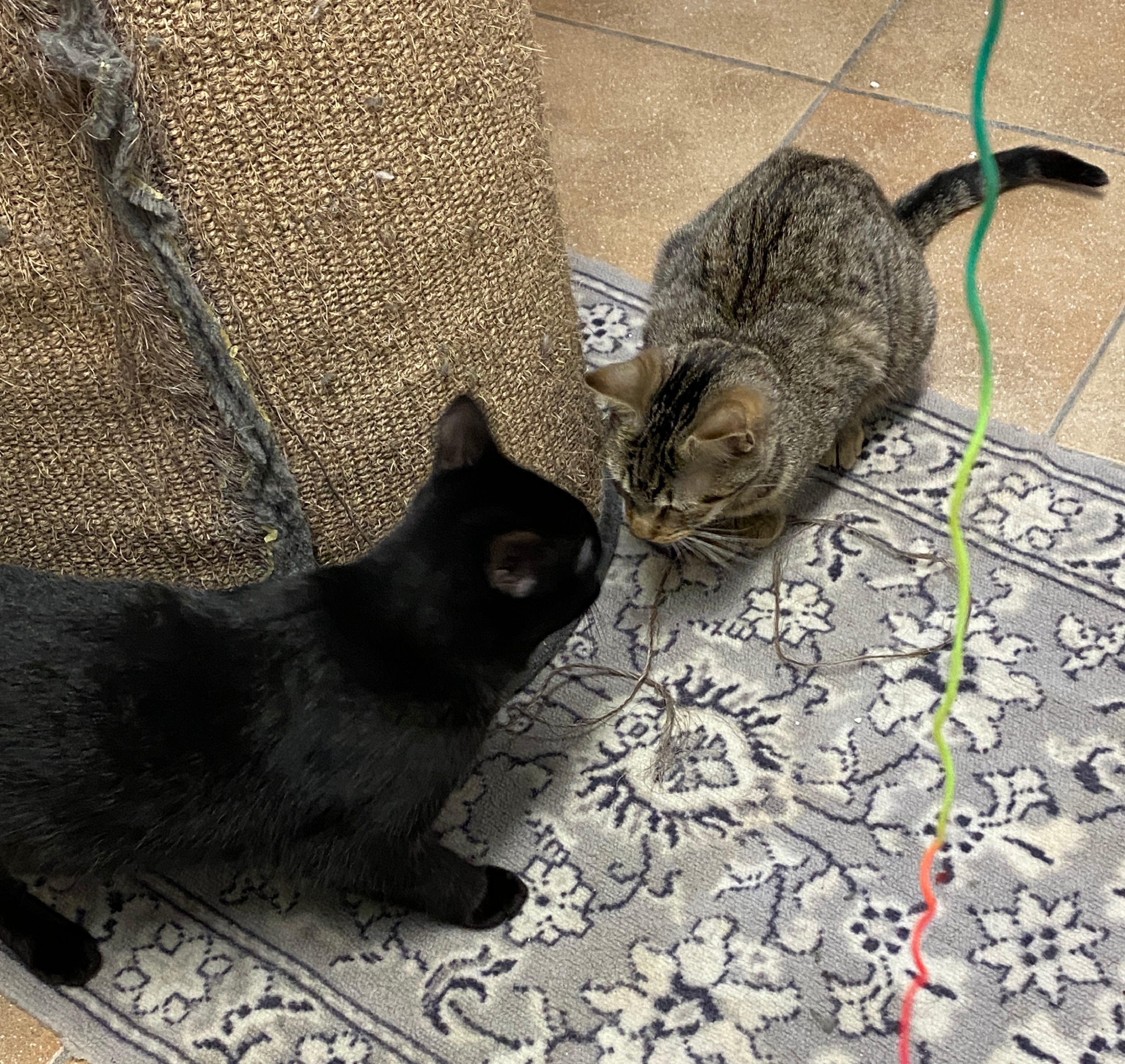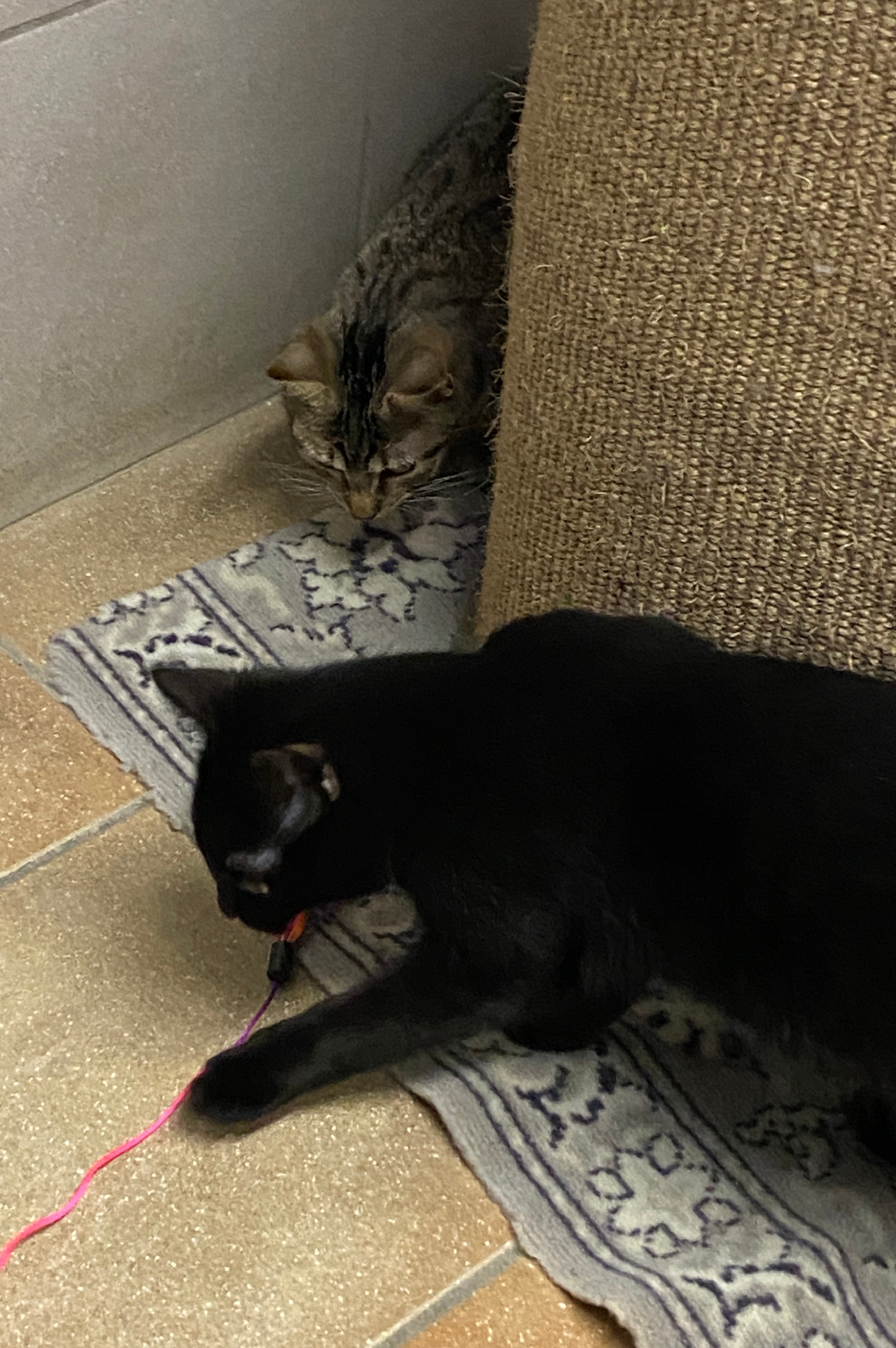 "Als Kitten hatten wir einen schwierigen Start ins Leben. Neue Umgebung, ungewohnte Geräusche und andere Katzen haben uns anfangs sehr verunsichert – wir haben uns versteckt und gefaucht. Inzwischen sind wir zu kräftigen Teenagern herangewachsen. Noch sind wir eher vorsichtig als mutig, aber neugierig genug, um Schritt für Schritt die Welt zu entdecken. Menschen finden wir interessant, auch wenn wir ihnen erst langsam näherkommen. Nun wünschen wir uns eigene Zuhause. Obwohl wir altersbedingt auch einzeln ausziehen könnten, hat sich gezeigt, dass es für uns deutlich einfacher ist, zu zweit vermittelt zu werden – ob mit einem Geschwisterchen oder einem passenden Katzenfreund. Ein vertrauter Artgenosse gibt uns Sicherheit und erleichtert die Eingewöhnung erheblich. Wir suchen geduldige Menschen mit Herz für sensible Katzen – und idealerweise Platz für zwei."