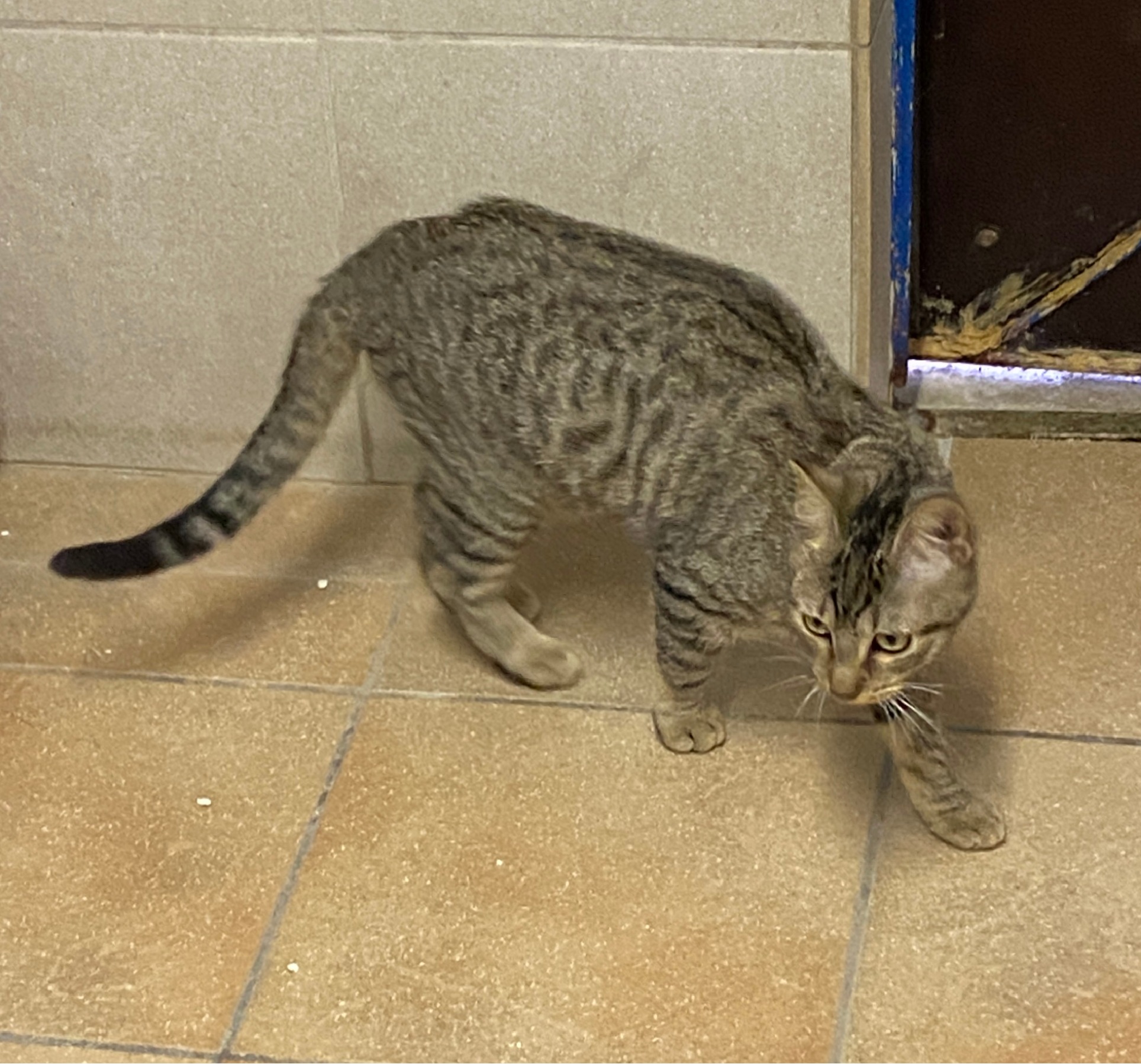 "Ich bin ein echter Wildling und habe mein bisheriges Leben ohne engen Kontakt zu Menschen verbracht. Seit einigen Monaten lebe ich nun im Tierheim. Am Anfang war mir alles unheimlich – da blieb mir nichts anderes übrig, als zu fauchen und zu spucken, um Abstand zu gewinnen. Inzwischen habe ich mich recht gut eingelebt. Leckerlis finde ich richtig spannend, sobald sie verteilt werden, bin ich sofort zur Stelle. Aber bitte erwartet nicht, mich anfassen zu dürfen – davor habe ich noch große Angst, und wenn jemand es versucht, flüchte ich sofort. Ich spiele gerne mit einer Schnur oder einem Ball. Für mich ist das ein Zeichen von Vertrauen und Neugier. Noch bin ich sehr vorsichtig, und ob oder wann ich mich streicheln lasse, wird die Zeit zeigen."