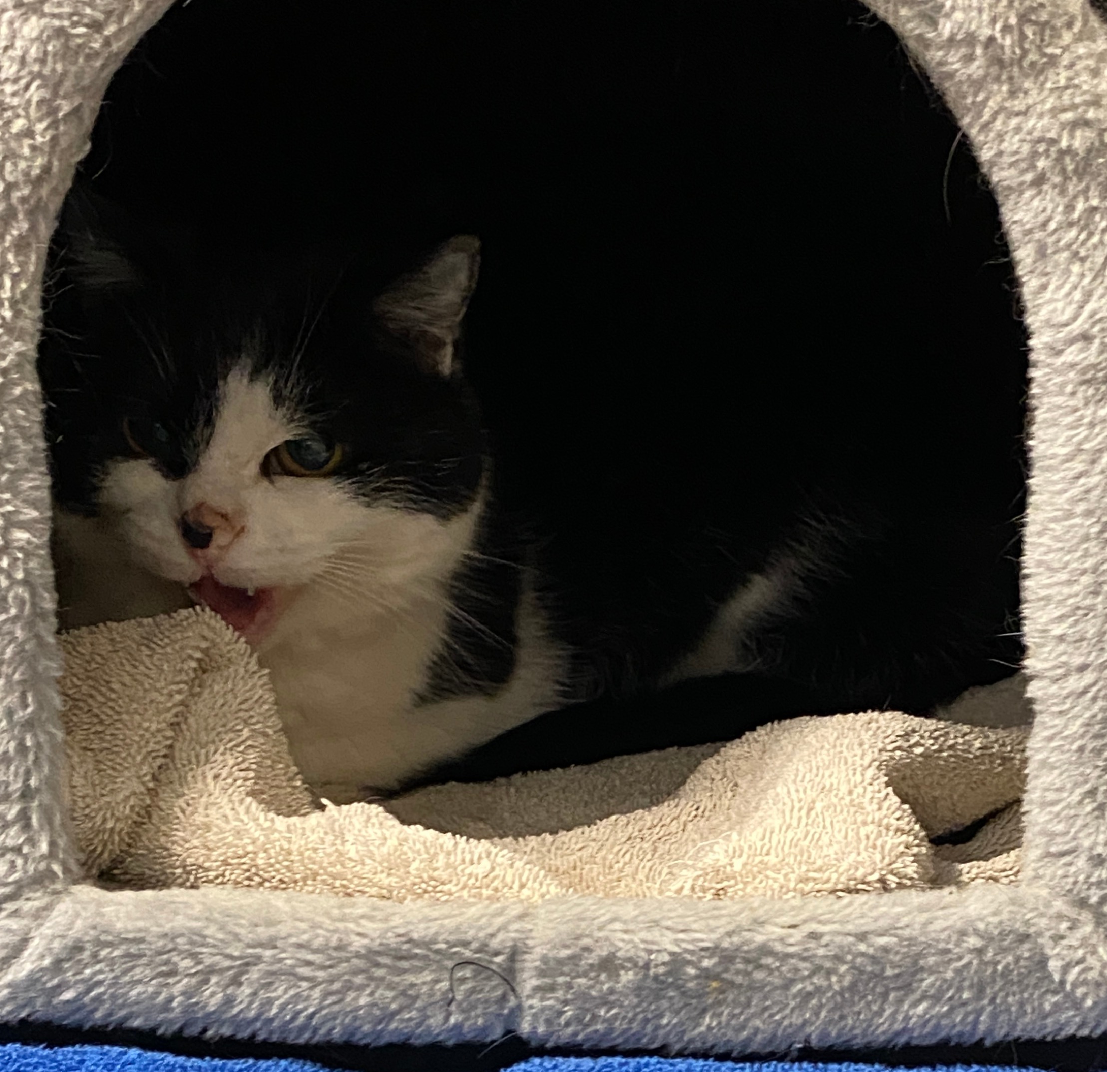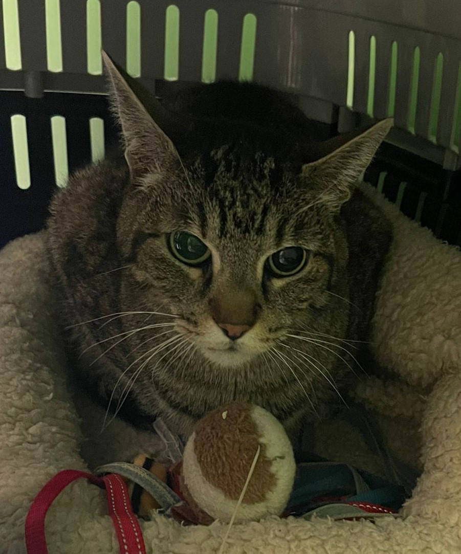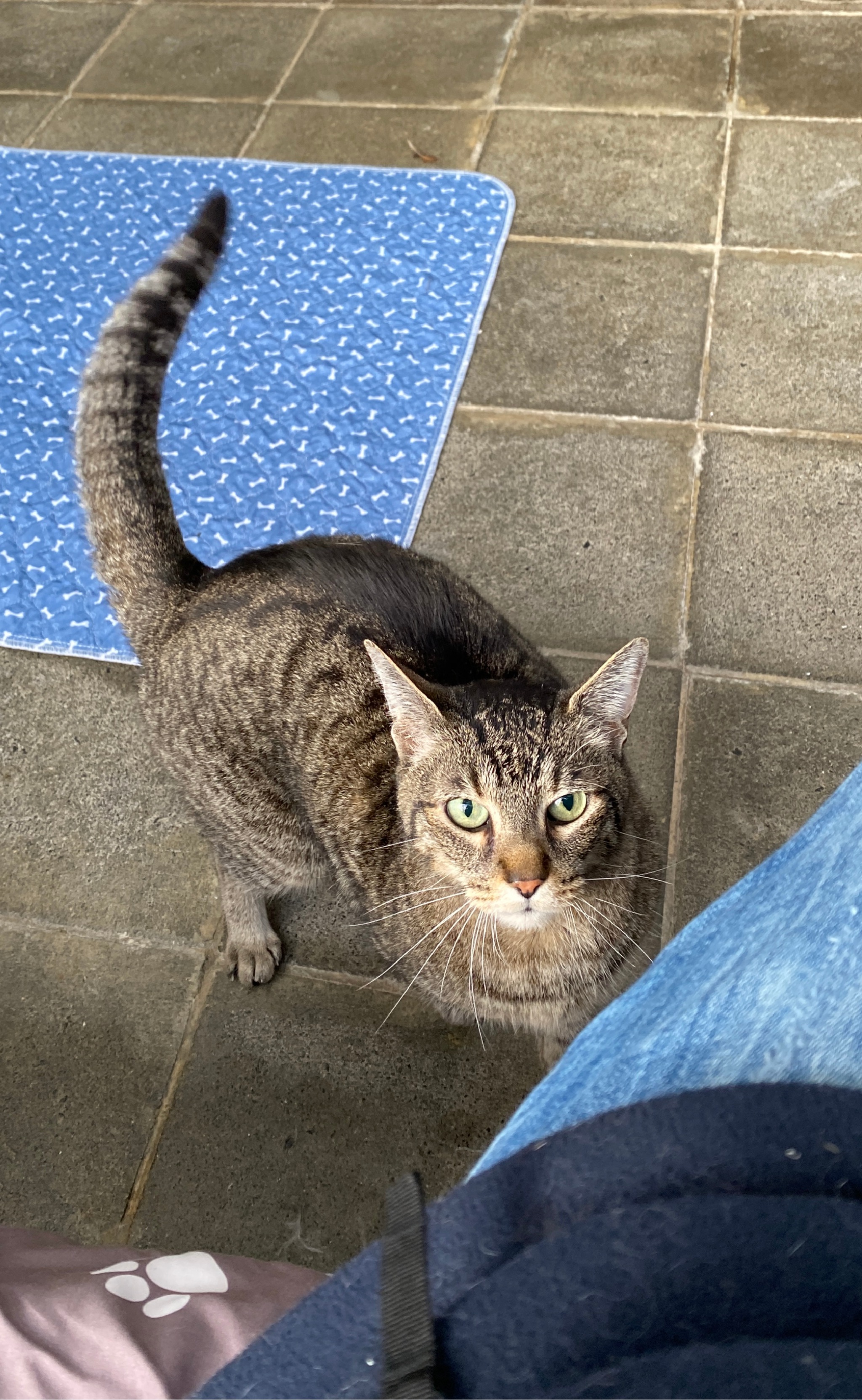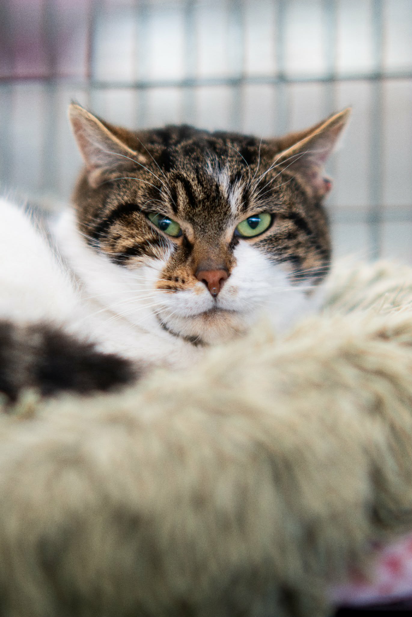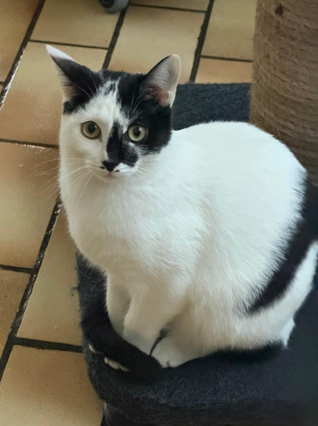 "Ich bin eine 10-jährige Katzendame, die sich ein gemütliches, liebevolles Zuhause wünscht. Lange Zeit habe ich auf der Straße gelebt. Eine nette Frau hat mich dort immer gefüttert – bis sie ins Altersheim ziehen musste. So kam ich ins Tierheim. Anfangs war alles für mich sehr ungewohnt, und ich brachte ein paar Baustellen mit : meine Zähne mussten gemacht werden (alles erledigt !), ich hatte Schnupfen und war so gestresst, dass ich fast nichts essen mochte, es gab Herzgeräusche, die sich zum Glück als unbedenklich herausgestellt haben, und ich habe eine alte Hornhautnarbe am Auge – die ist kosmetisch, bereitet mir aber keinerlei Probleme. Heute geht es mir wieder richtig gut. Ich fresse ordentlich, schnurre gern und genieße gemütliche Plätze. Jetzt bin ich bereit für mein eigenes Für-immer-Zuhause."