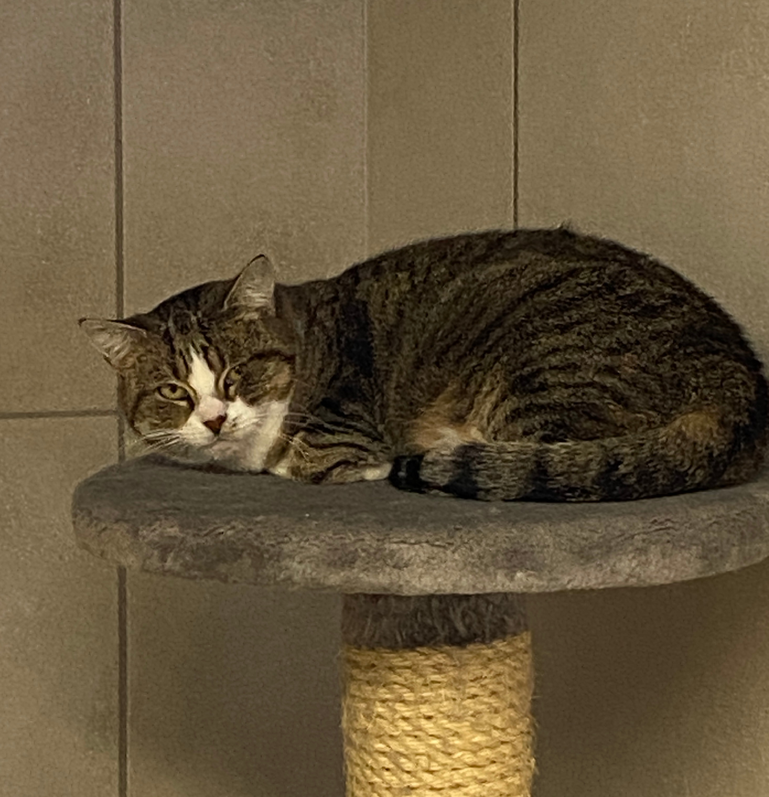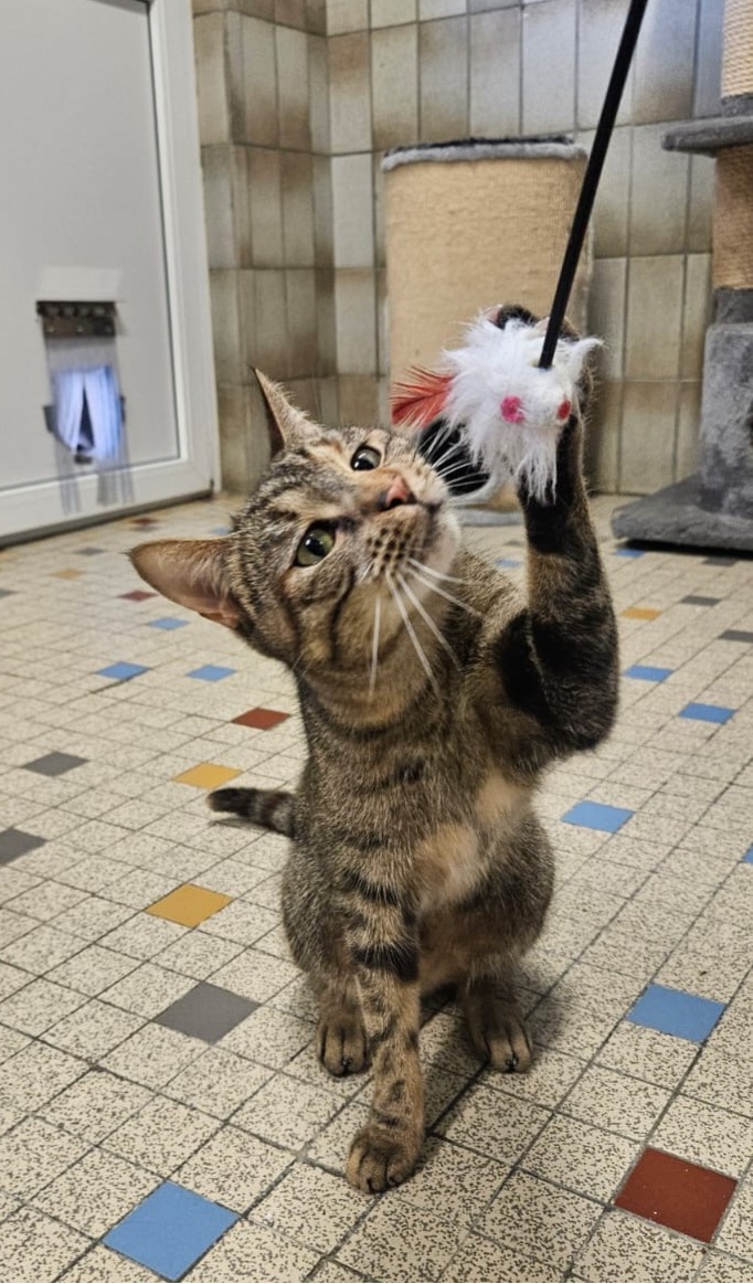 "Drei Babys habe ich großgezogen, die inzwischen alle erfolgreich vermittelt wurden. Mit Menschen habe ich in meinem bisherigen Leben leider kaum gute Erfahrungen gemacht, daher bin ich noch sehr vorsichtig, sobald sich jemand nähert. Anfangs habe ich mich nur in der Höhle meines Kratzbaums versteckt, doch inzwischen traue ich mich schon gelegentlich heraus – ein kleiner, aber wichtiger Fortschritt ! Ich bin zwar noch immer recht ängstlich, aber Leckerlis nehme ich inzwischen gerne an. Mit Geduld, Ruhe und Liebe werde ich sicher weiter Vertrauen fassen. Ich wünsche mir ein Zuhause bei katzenerfahrenen Menschen in einer möglichst ruhigen Umgebung. Ein sicherer Rückzugsort ist dabei Voraussetzung – und später sollte unbedingt Freigang möglich sein."