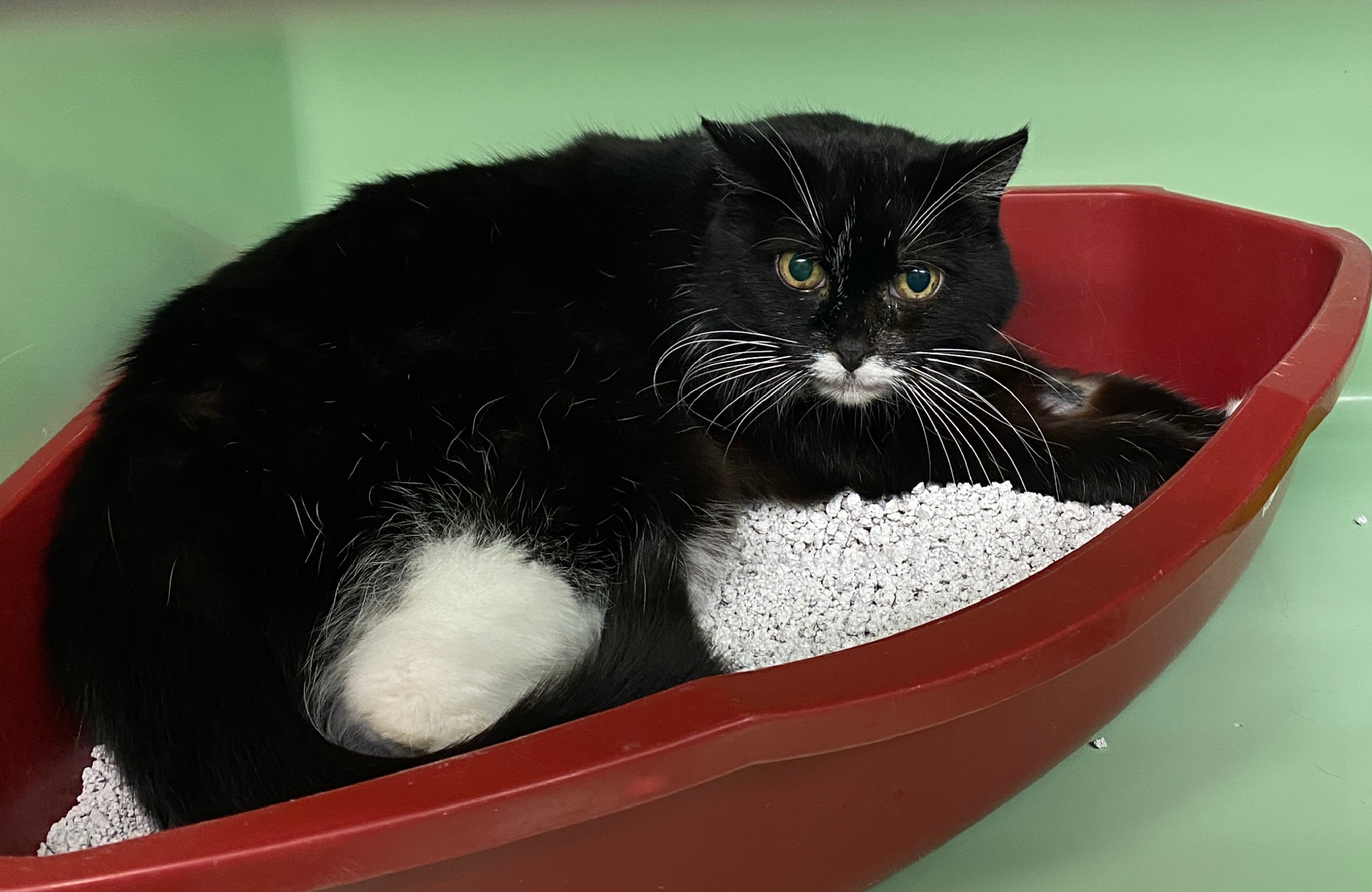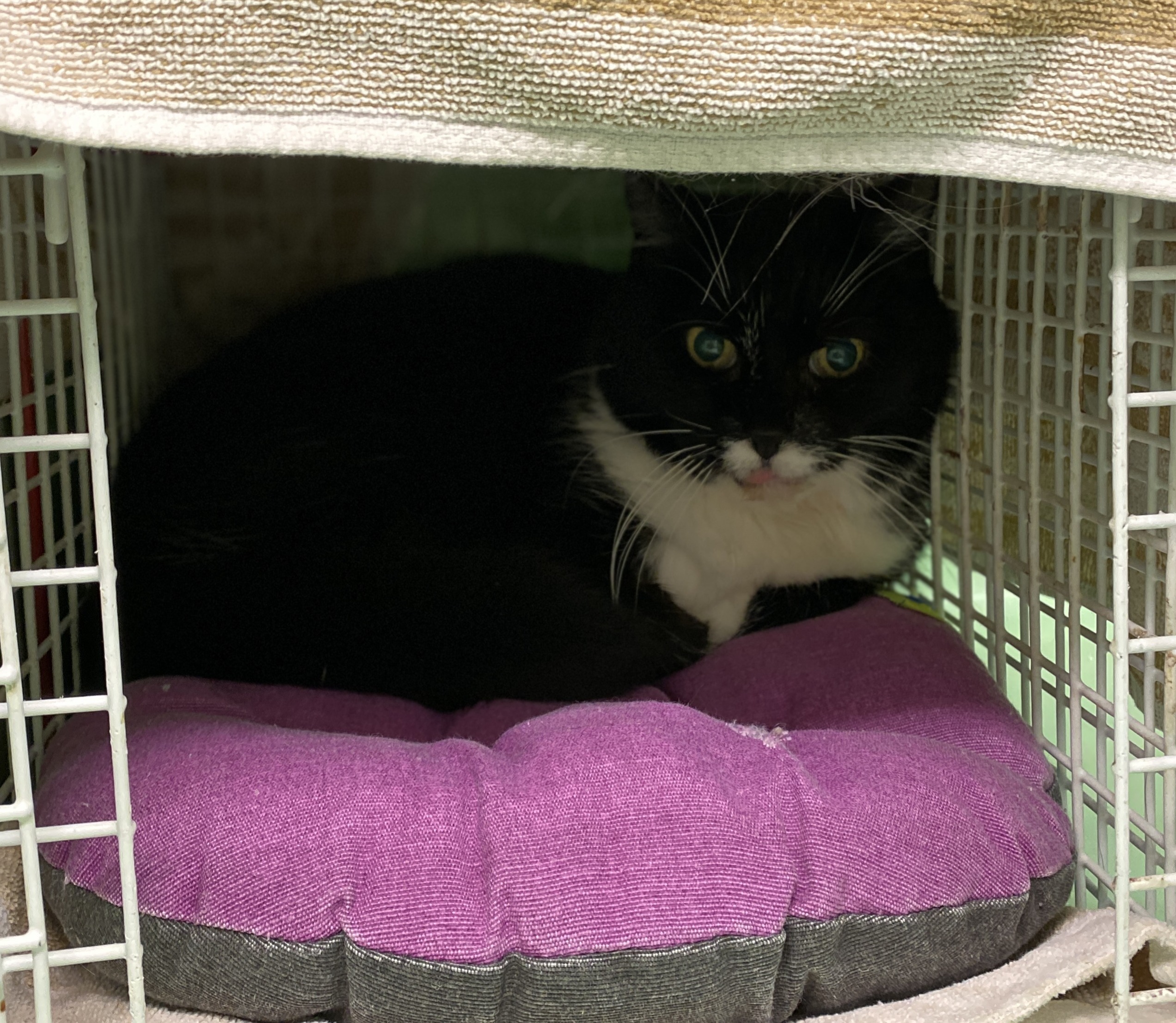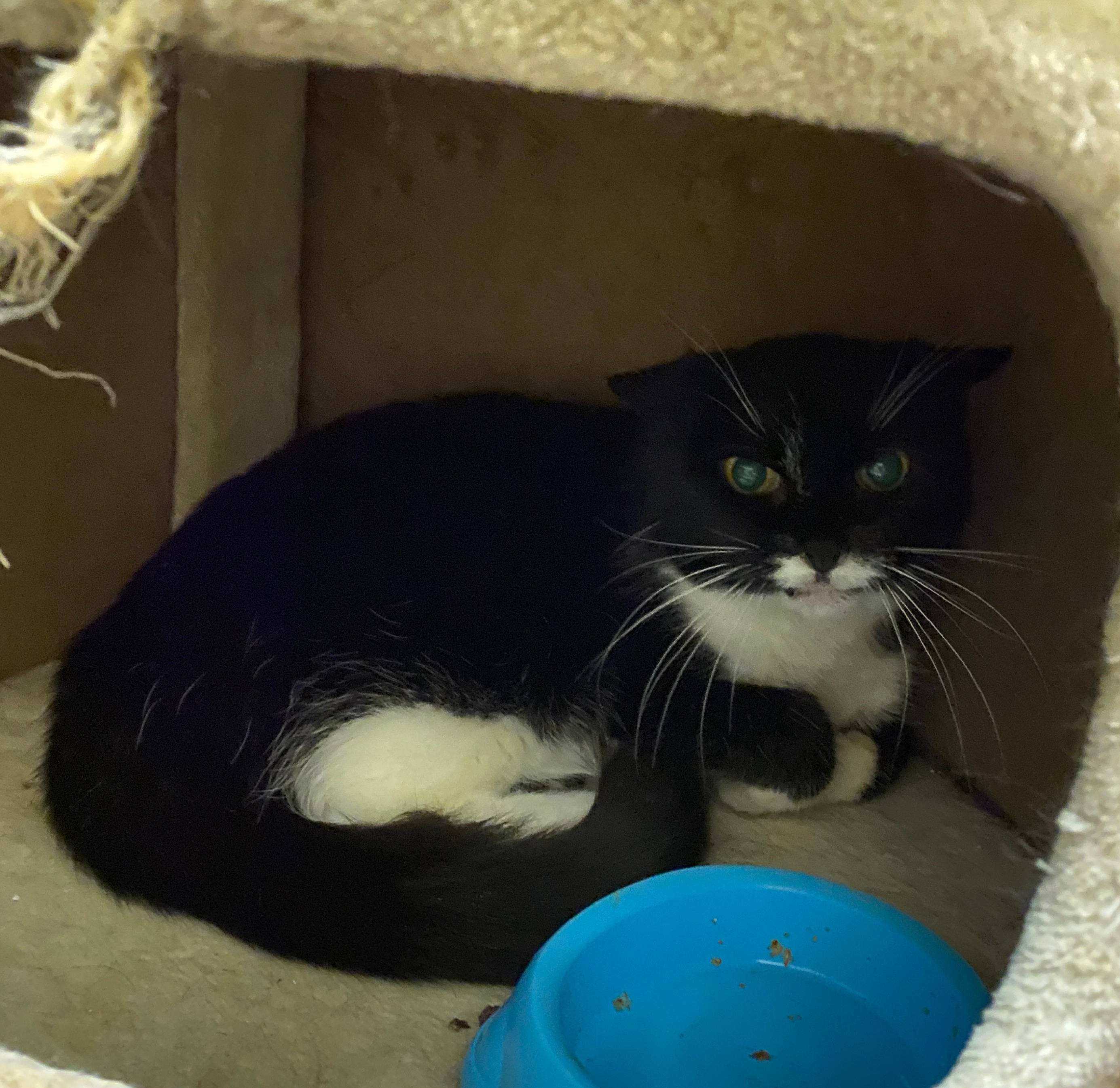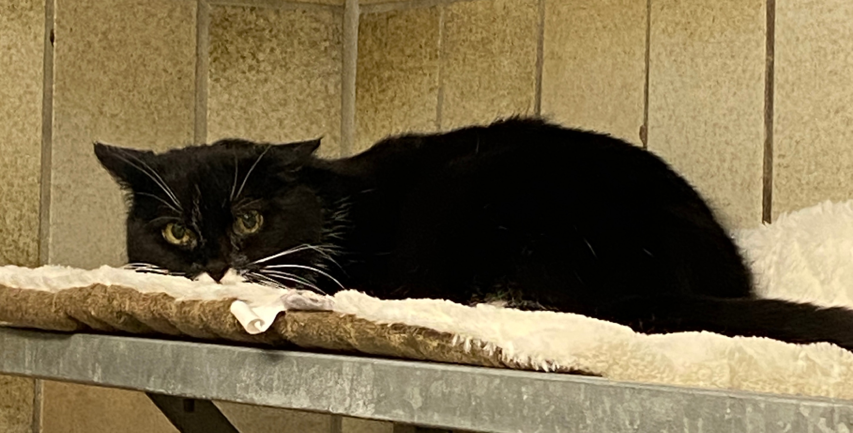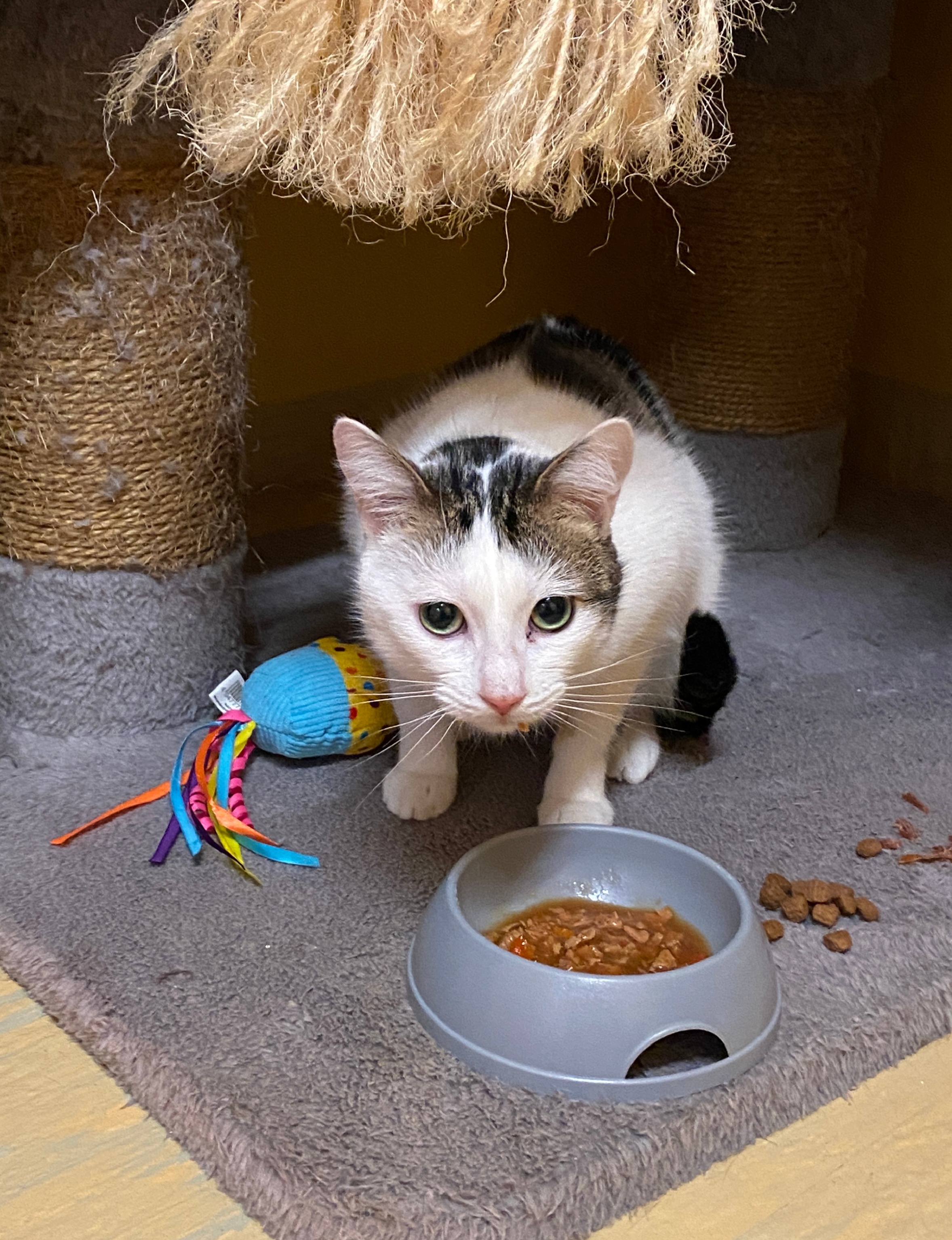 "Leider musste ich mein Zuhause verlassen. Es heißt, ich sei nie richtig stubenrein gewesen und hätte mich mit kleinen Kindern und anderen Katzen schwergetan. Dass ich nicht stubenrein bin, stimmt so nicht, ich benutze das Katzenklo zuverlässig. Was mir im Moment aber noch sehr schwerfällt, ist Vertrauen. Das Tierheim ist für mich sehr beängstigend : fremde Geräusche, fremde Gerüche und kaum Ruhe. Wenn mir jemand zu nahe kommt, fauche oder grummle ich noch. Das ist mein Weg zu zeigen, dass ich Abstand brauche und mich unsicher fühle. Anfassen mag ich derzeit nicht, und mit anderen Katzen komme ich im Moment nicht zurecht. Am liebsten würde ich in einem ruhigen Zuhause als reine Wohnungskatze leben, wo ich mich sicher fühlen kann."