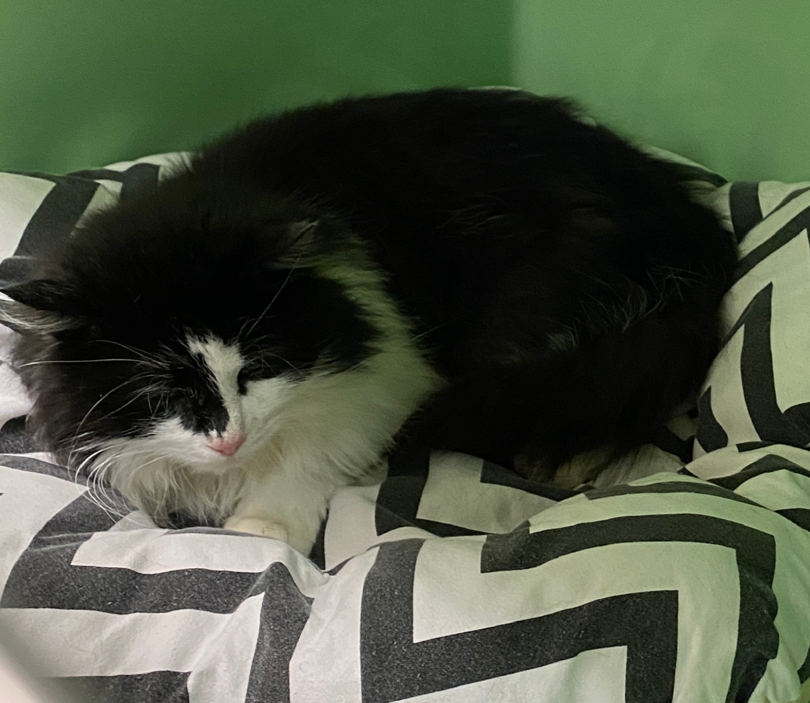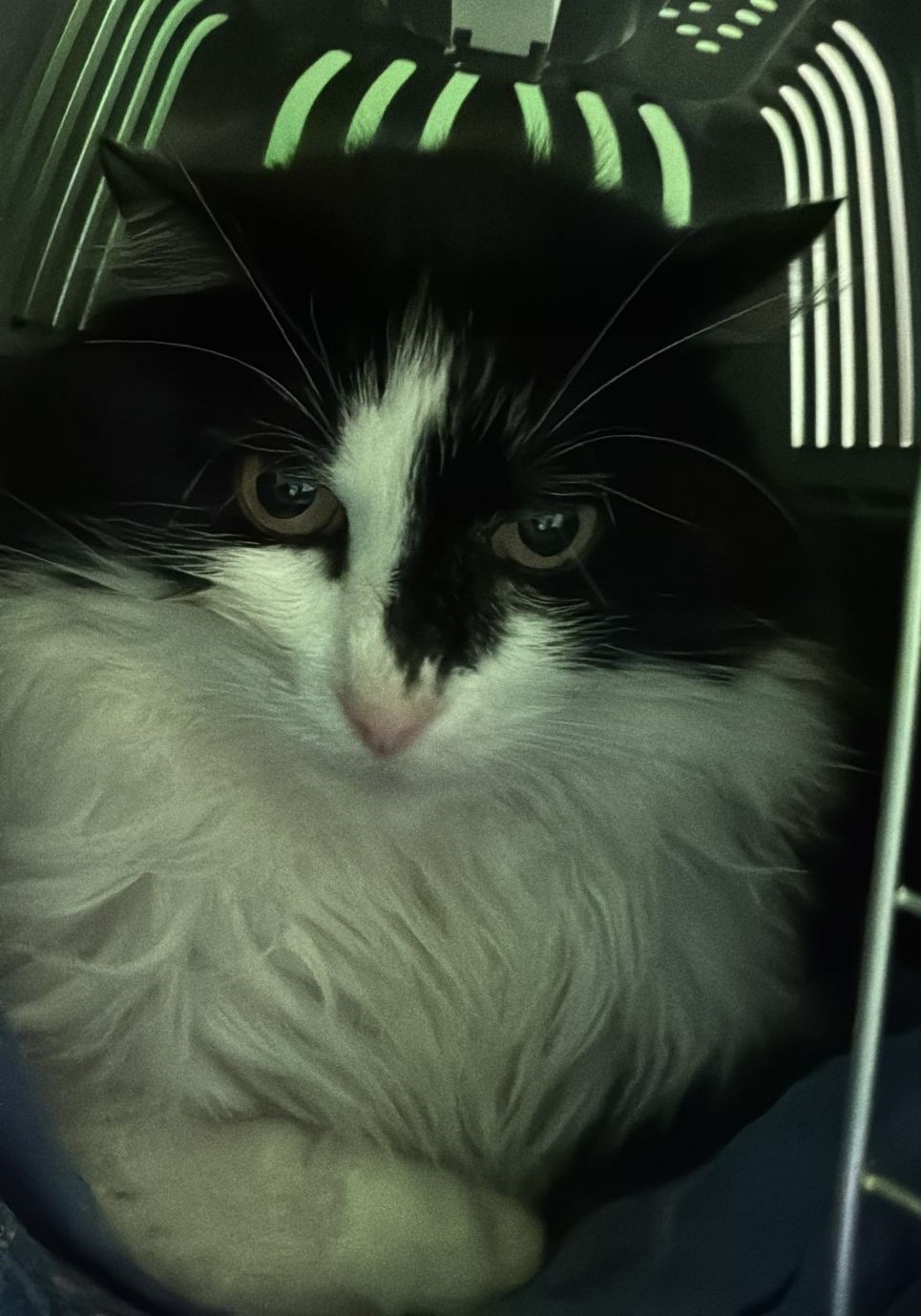 "Ich bin eine Katze mit russisch-blauem Einschlag, mit weichem grauem Fell und neugierigen grünen Augen. Drinnen fühle ich mich am wohlsten, aber sobald eine Tür offen steht, nutze ich die Gelegenheit und schaue gern kurz nach draußen. Dort halte ich mich jedoch nie lange auf – ein paar Schritte, ein wenig frische Luft, dann möchte ich wieder zurück in die Sicherheit des Hauses."