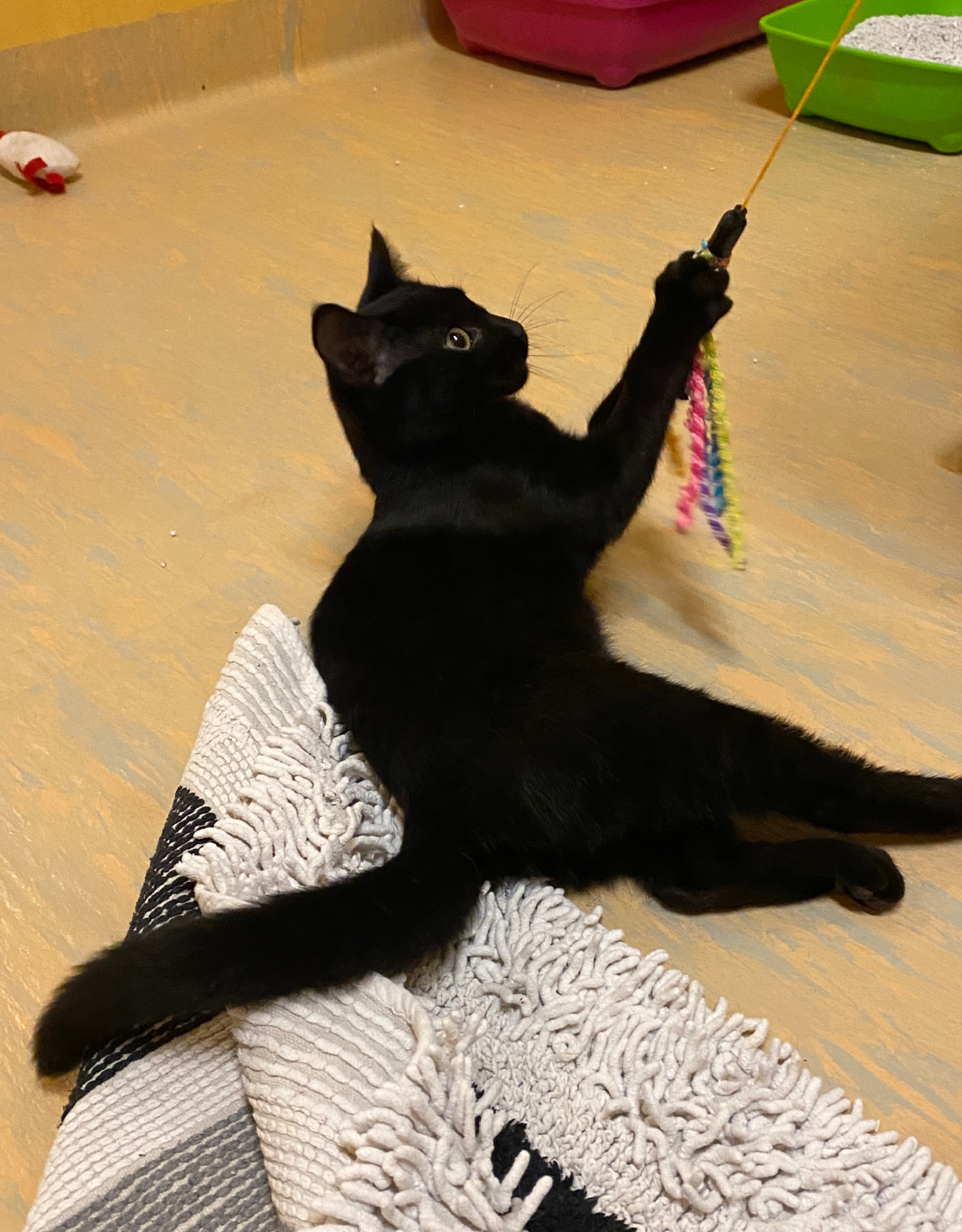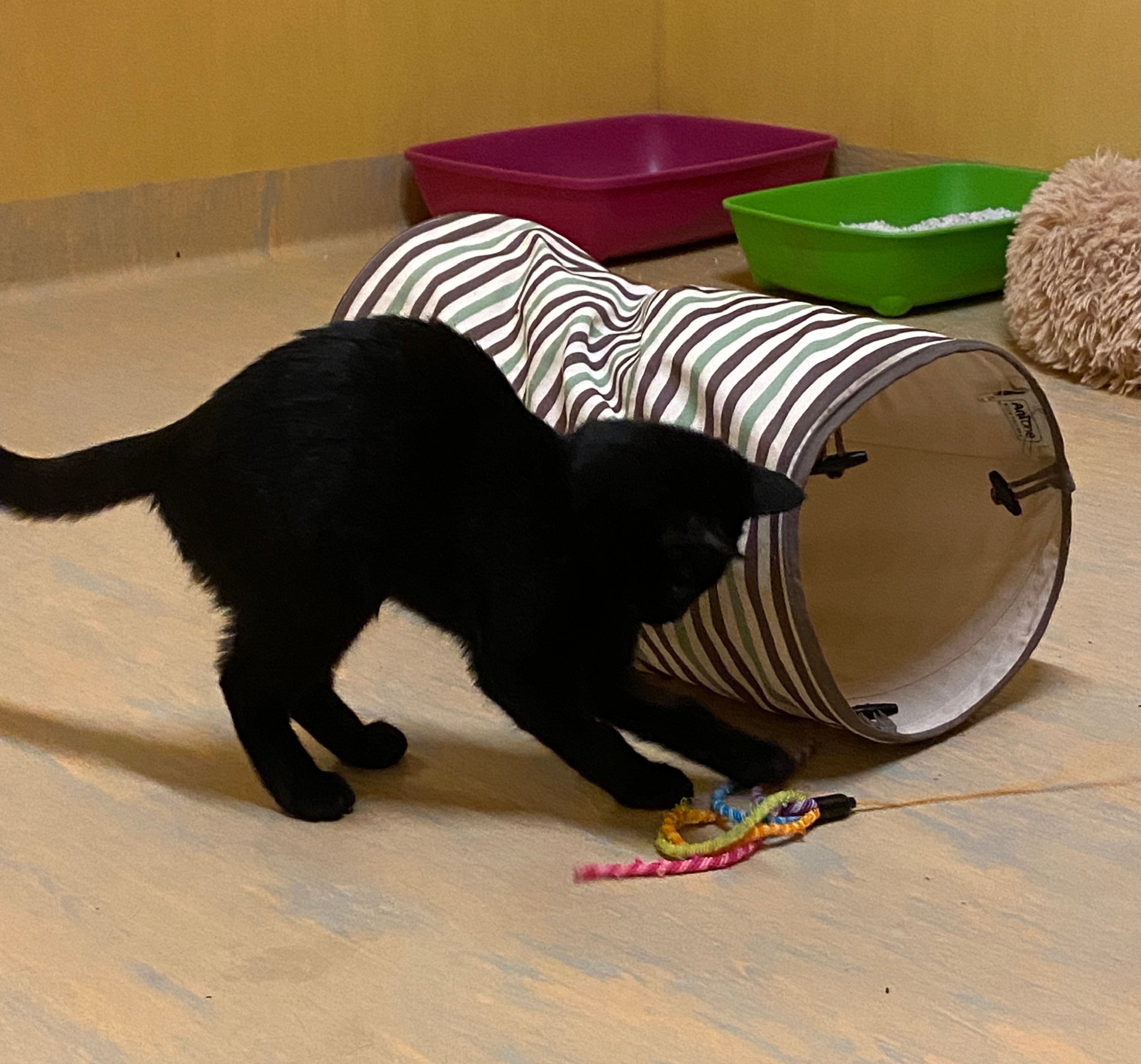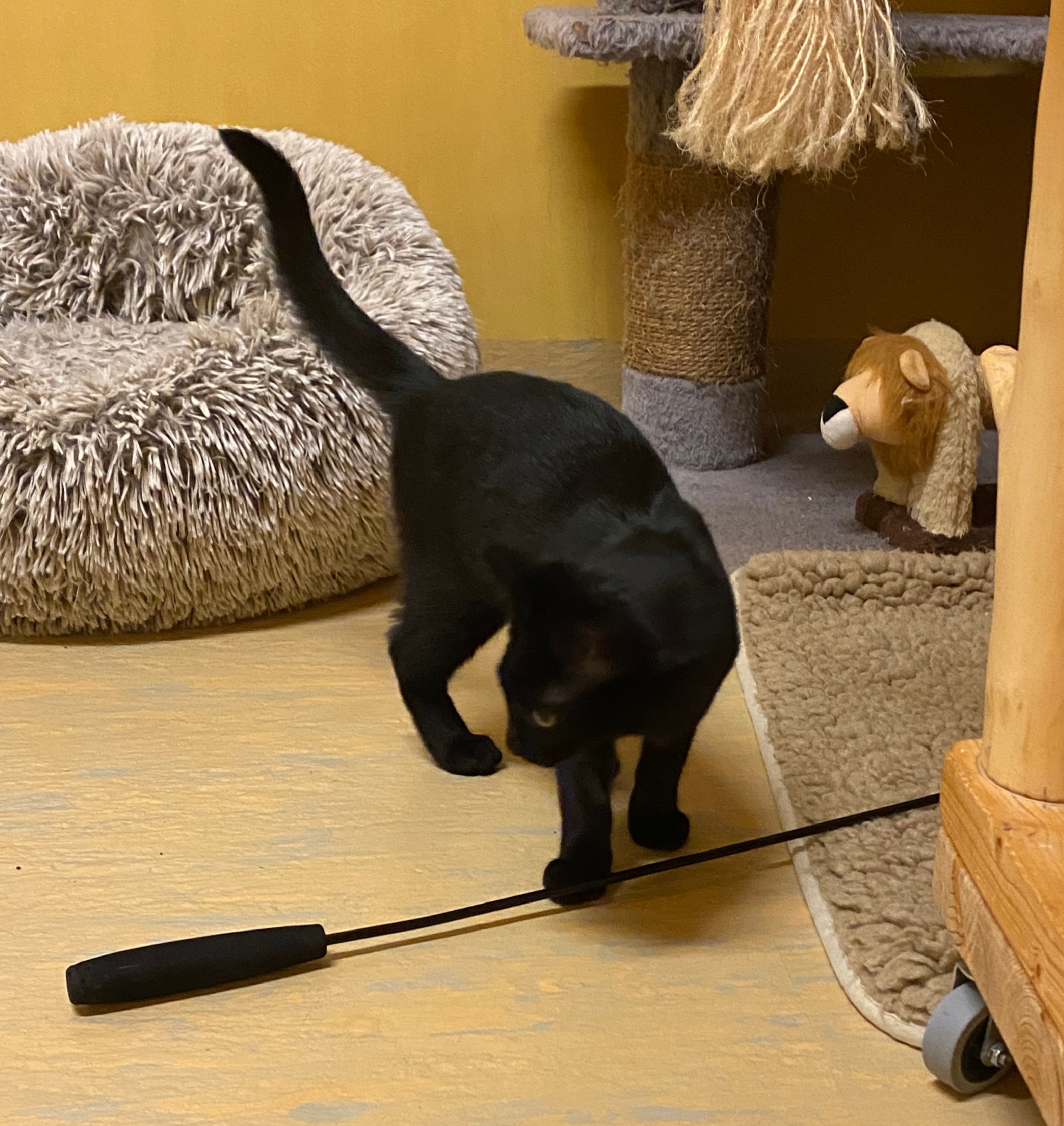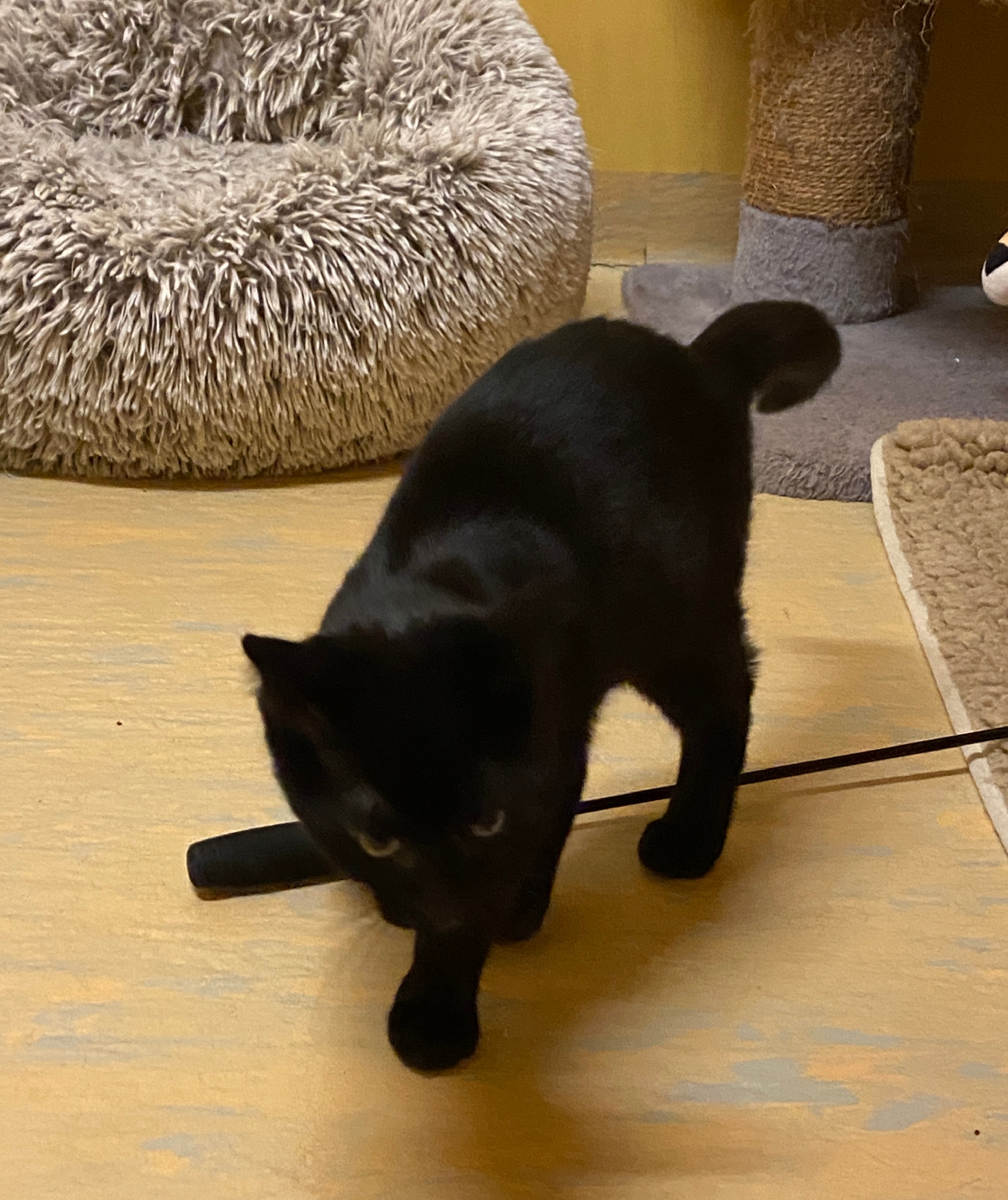 "Spielen ist mein Beruf, Quatsch machen meine Leidenschaft. Ich bin schnell, neugierig, mutig - ja sogar übermütig. Am liebsten hätte ich einen Katzenkumpel in meinem neuen Zuhause. Allein wird mir schnell langweilig, wenn niemand Zeit für mich hat, also brauche ich Menschen, die wirklich Lust haben, sich intensiv mit mir zu beschäftigen, mit mir zu spielen, mich geistig auszulasten und mir die Welt zu erklären. Weil ich noch jung bin, muss ich auch lernen, was okay ist und was nicht. Ich bin clever, aber ich teste Grenzen gern aus. Deshalb brauche ich eine Familie, die liebevoll, geduldig, aber auch konsequent ist und mir nicht alles durchgehen lässt – auch wenn ich dabei sehr unschuldig gucke. Wenn du einen aktiven, verschmusten, verspielten kleinen Panther suchst und bereit bist, Zeit, Aufmerksamkeit und ein bisschen Humor zu investieren, dann könnten wir gut zusammenpassen."