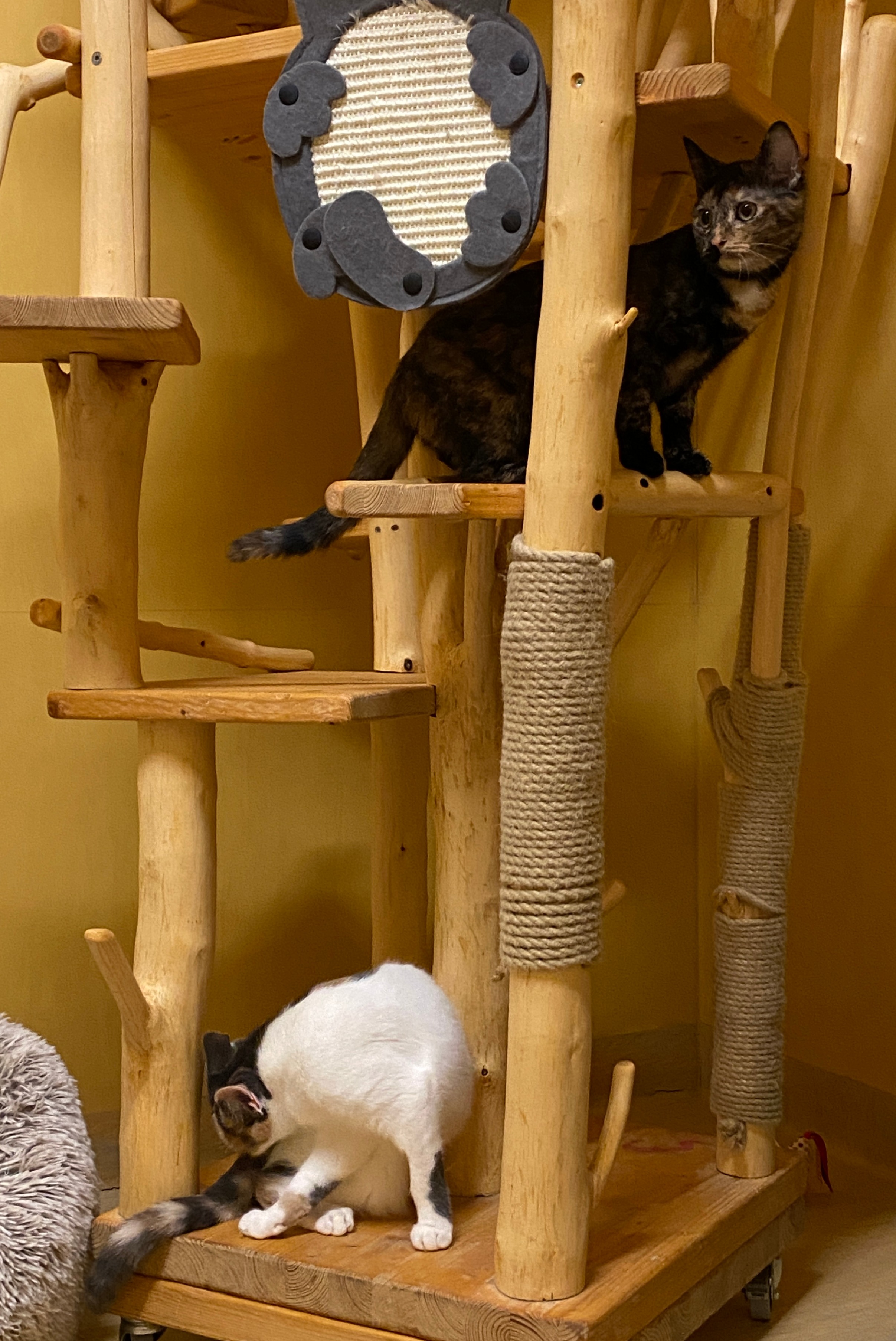 "Wir sind etwa 7 und 8 Monate alt, neugierig, energiegeladen und voller Spielfreude. Trotz unseres jungen Alters haben wir schon einiges erlebt : Bevor wir ins Tierheim kamen, haben wir mehrere Wochen draußen verbracht. Zum Glück wurden wir von einer Familie versorgt, die uns Futter gab. Leider konnten sie uns bei ihrem Umzug nicht mitnehmen, deshalb sind wir jetzt hier. Die Sicherheit des Tierheims, regelmäßiges Futter und menschliche Nähe genießen wir sehr. Wir sind verspielt und entdecken unsere Umgebung am liebsten gemeinsam. Besonders wichtig ist uns, dass wir zusammenbleiben dürfen – wir hängen sehr aneinander, geben uns gegenseitig Halt und werden deshalb nur gemeinsam vermittelt. Wir wünschen uns ein Zuhause, in dem wir weiter spielen und lernen können, bei Menschen, die Freude an zwei jungen Katzen haben und uns mit Geduld und Zuwendung begleiten."