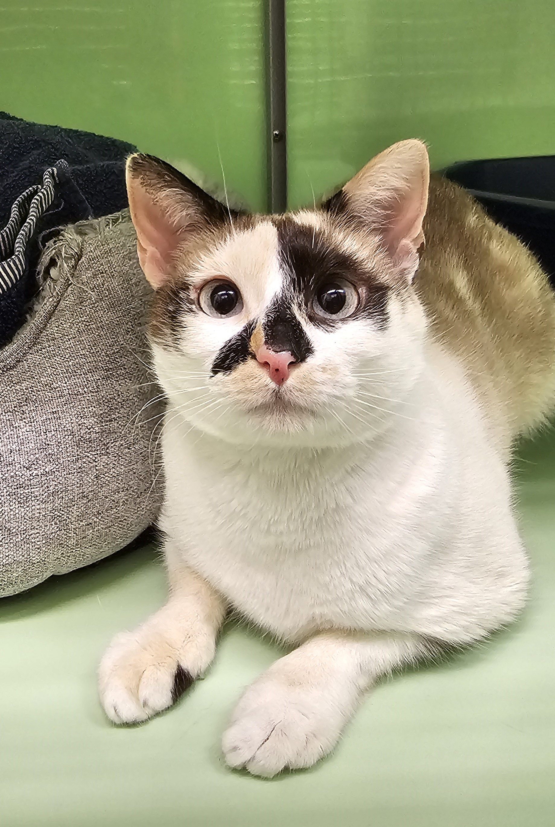 "Hallo, ich bin eure zukünftige Kuschelkatze ! Ich bin noch ganz jung, super süß und liebe es, mich an Menschen zu schmiegen. Spielen ist noch nicht so mein Ding – ich genieße lieber entspannte Schmusezeiten auf dem Sofa oder auf dem Schoß. Ich durfte schon ein paar nette Menschen kennenlernen, und nach meiner Wartezeit im Asyl darf ich nun endlich in mein eigenes Zuhause ziehen. Ein kleiner Hinweis : Ich bin beim Futter sehr wählerisch. Wer mir das richtige Leckerchen bietet, hat mein Herz im Nu erobert."