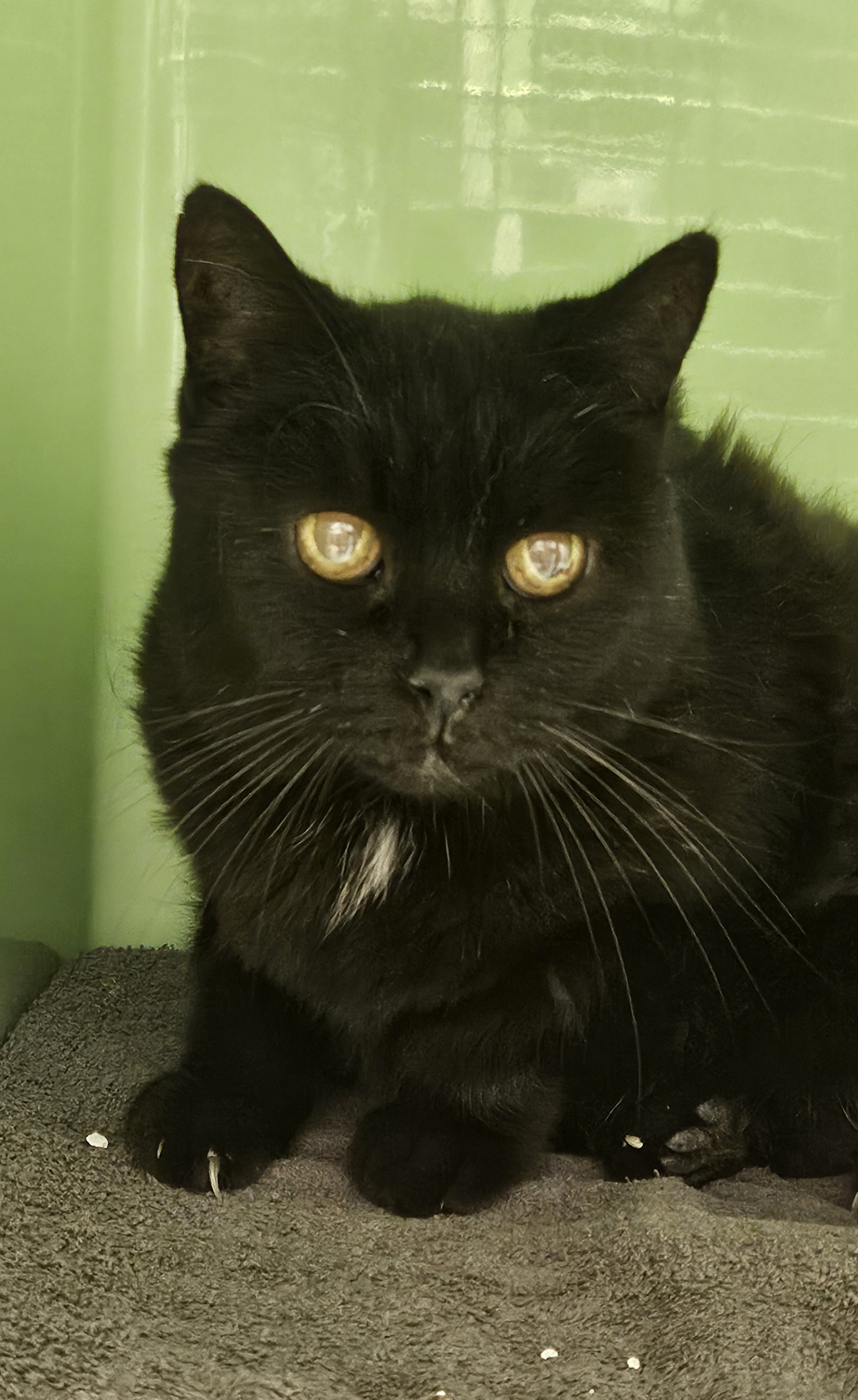 "Leider musste ich mein Zuhause verlassen. Es heißt, ich sei nie richtig stubenrein gewesen und hätte mich mit kleinen Kindern und anderen Katzen schwergetan. Jetzt bin ich seit etwa zwei Wochen im Tierheim – alles ist fremd, laut und riecht anders. Das macht mir große Angst, und deshalb fauche ich im Moment jeden an, der mir zu nahe kommt. Eigentlich will ich gar nicht böse sein – ich verstehe nur nicht, was passiert ist, und brauche einfach Ruhe, Geduld und jemanden, der mir zeigt, dass ich wieder vertrauen darf."