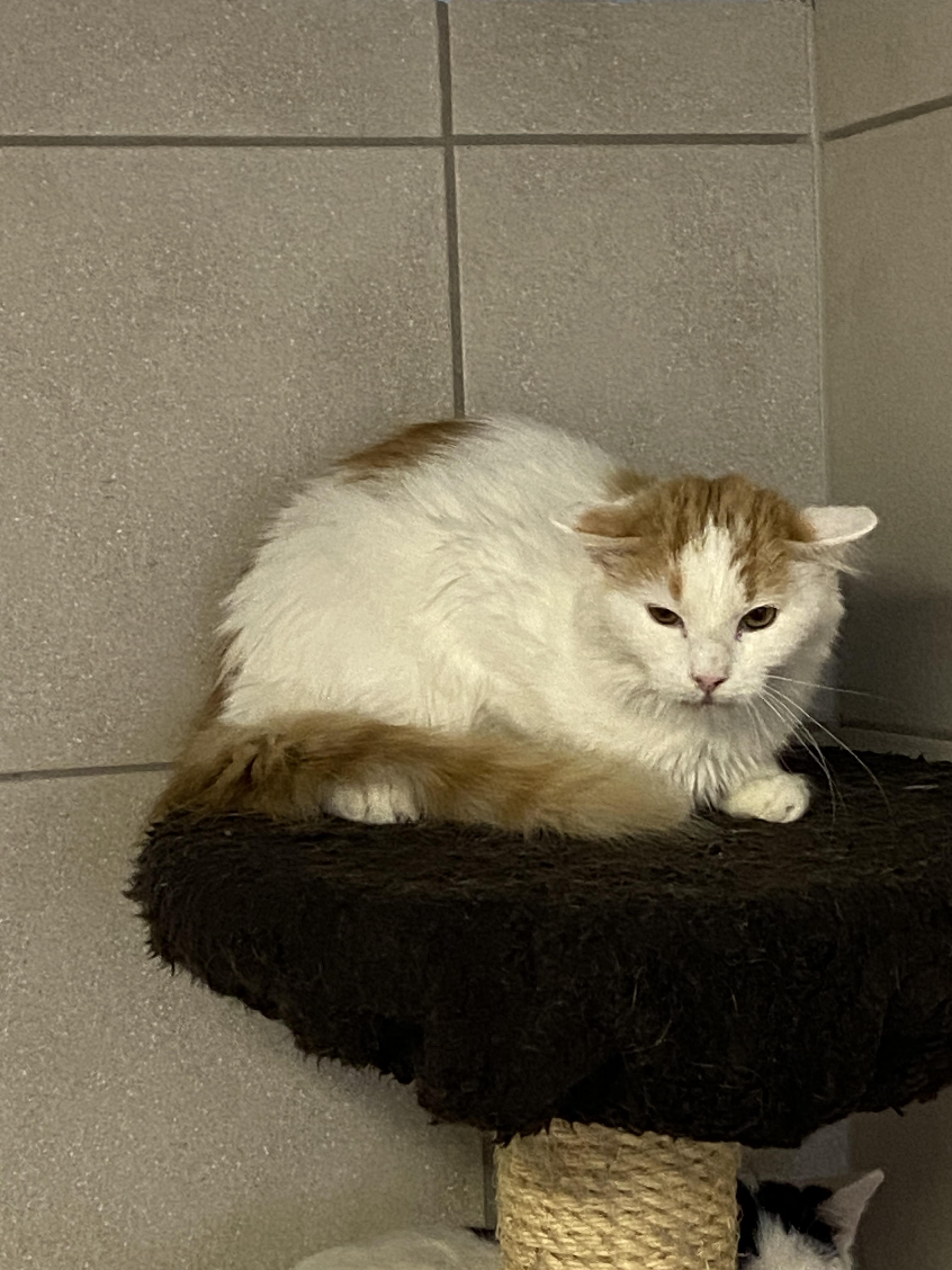 "Wir waren mehrere, die sich zum täglichen Mittagessen - ohne Verpflichtungen - bei einer älteren Dame einfanden. Allerlei Leckeres wurde dort aufgetischt, daher standen wir immer pünktlich auf der Matte. Zu unserem grössten Bedauern zog die nette Lady ins Altersheim, sodass unsere Futterquelle von jetzt auf gleich versiegt war. Deswegen war es nicht schwer, uns alle einzusammeln und ins Asile zu bringen. Mittlerweile lebe ich schon einige Monate hier im Tierheim. Noch immer bin ich sehr vorsichtig und habe bisher leider nicht gelernt, Menschen ganz zu vertrauen. Anfassen lasse ich mich daher noch nicht – dafür brauche ich einfach mehr Zeit. Es gibt aber auch gute Nachrichten : Für leckere Snacks bin ich immer zu haben, und dabei traue ich mich sogar schon ein kleines Stück näher heran. Jetzt, wo es draußen kälter wird, suche ich außerdem häufiger den warmen Innenbereich des Tierheims auf – ein kleines Zeichen dafür, dass ich mich langsam etwas wohler fühle."