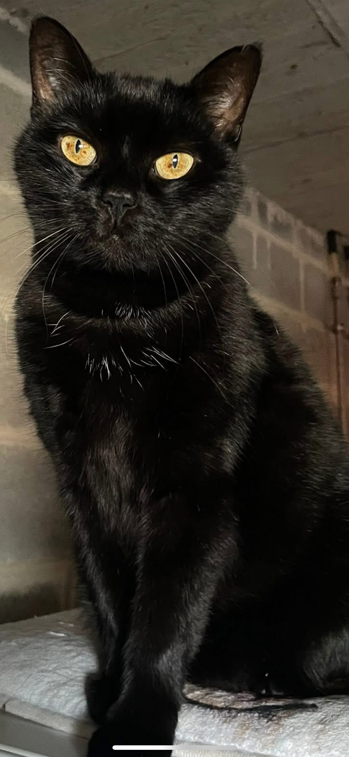 Femelle de 12 ans, toute noire avec une petite coupure à l'oreille, micropuce.