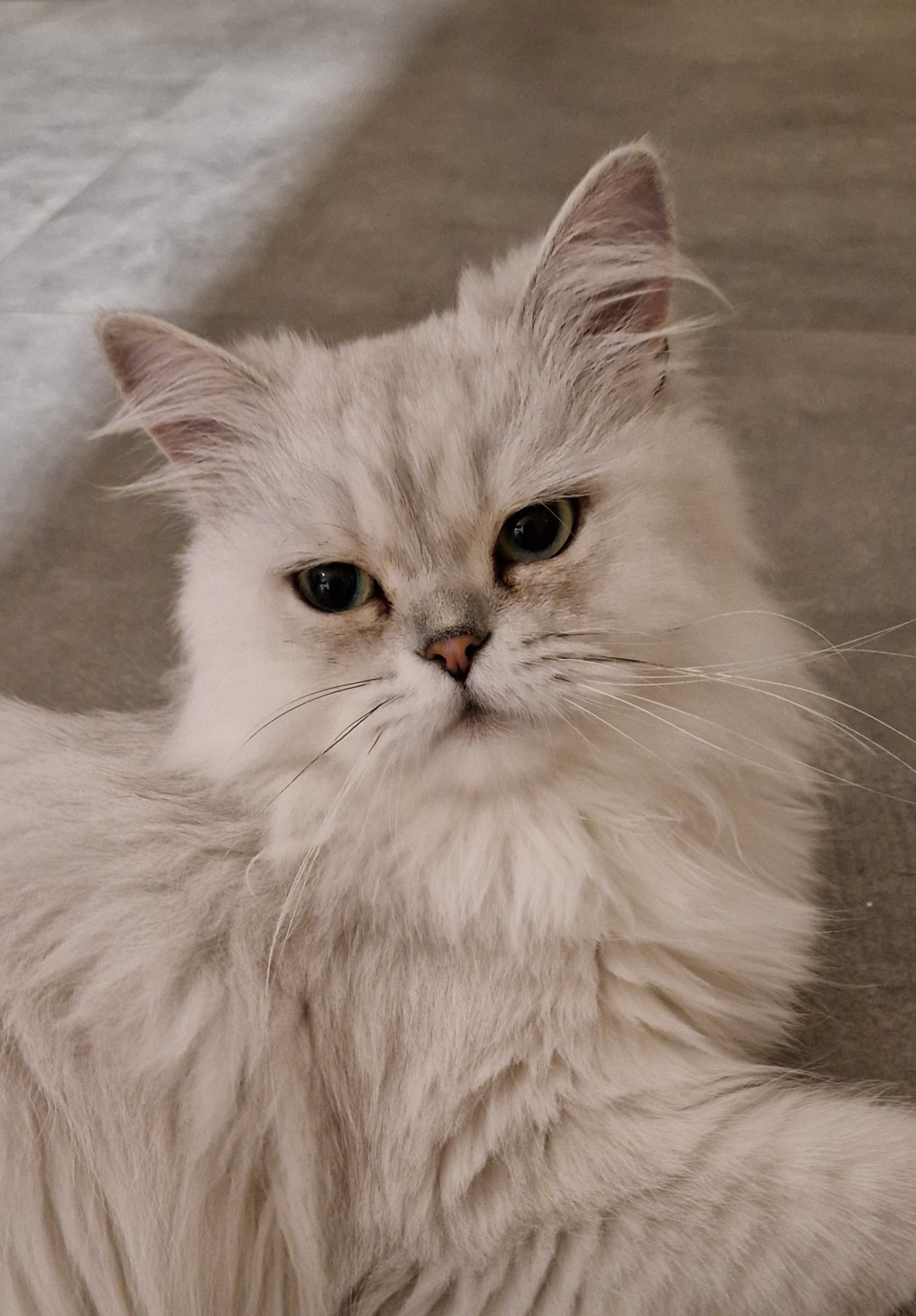Chat mäle, persan blanc, poils long